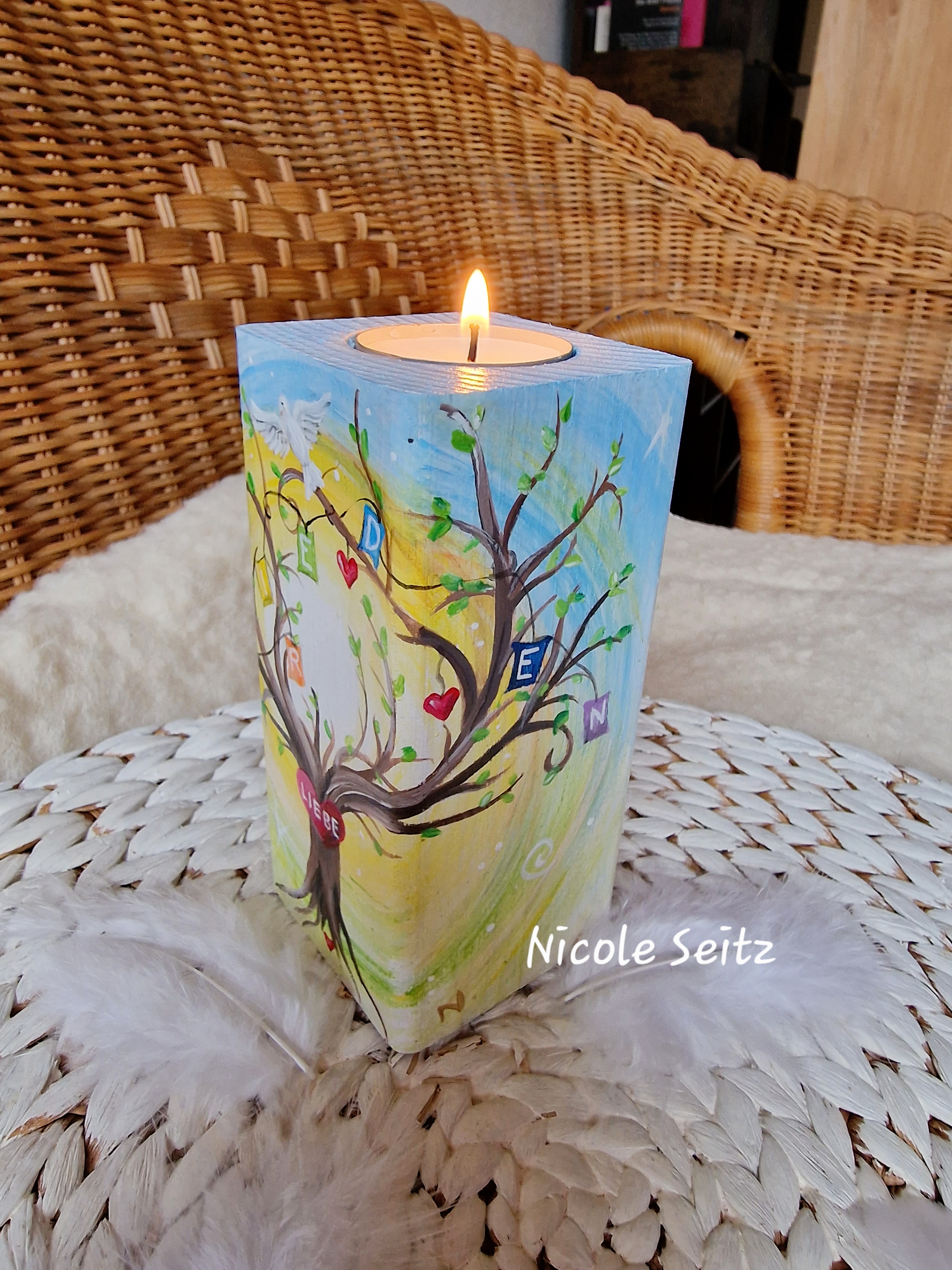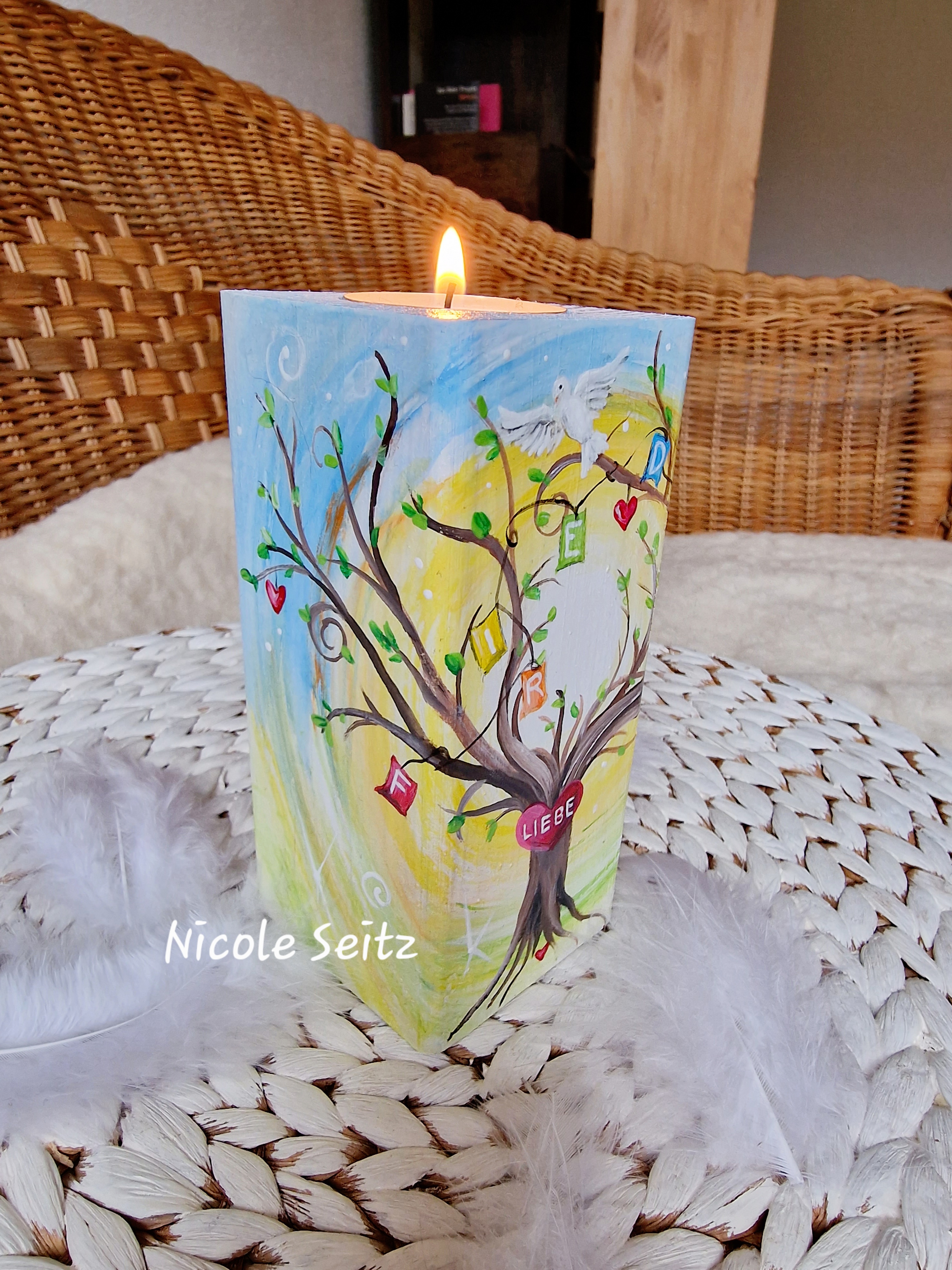 Mit einem glänzenden Acryllack zum Schutz überzogen.