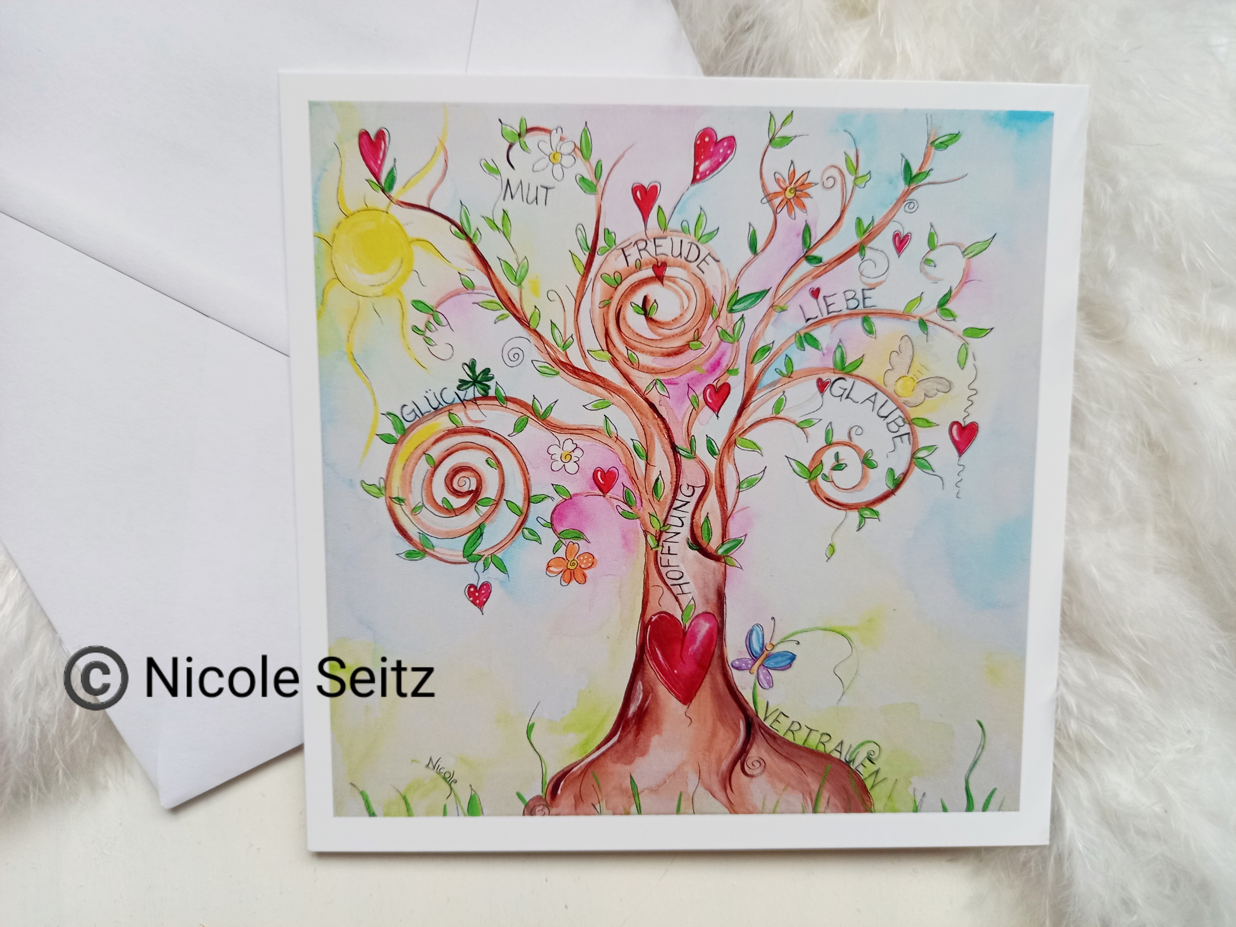 Postkarte quadratisch * Lebensbaum * 14 x 14 cm * mit Kuvert