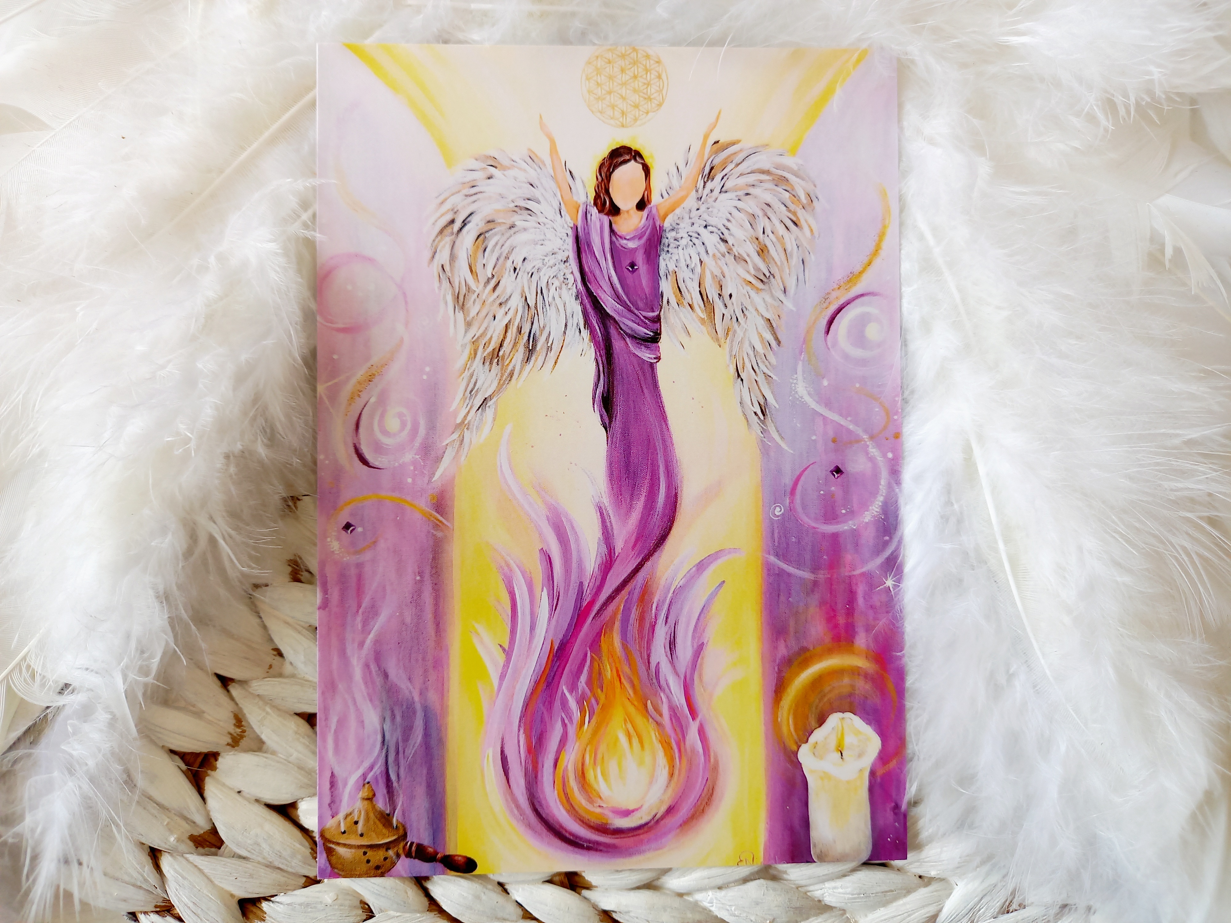 Violette Flamme in Zusammenarbeit mit Saint Germain und Erzengel Zadkiel, Räuchern, eine Kerze, die Lichtsäule, Blume des Lebens als Energiesymbol