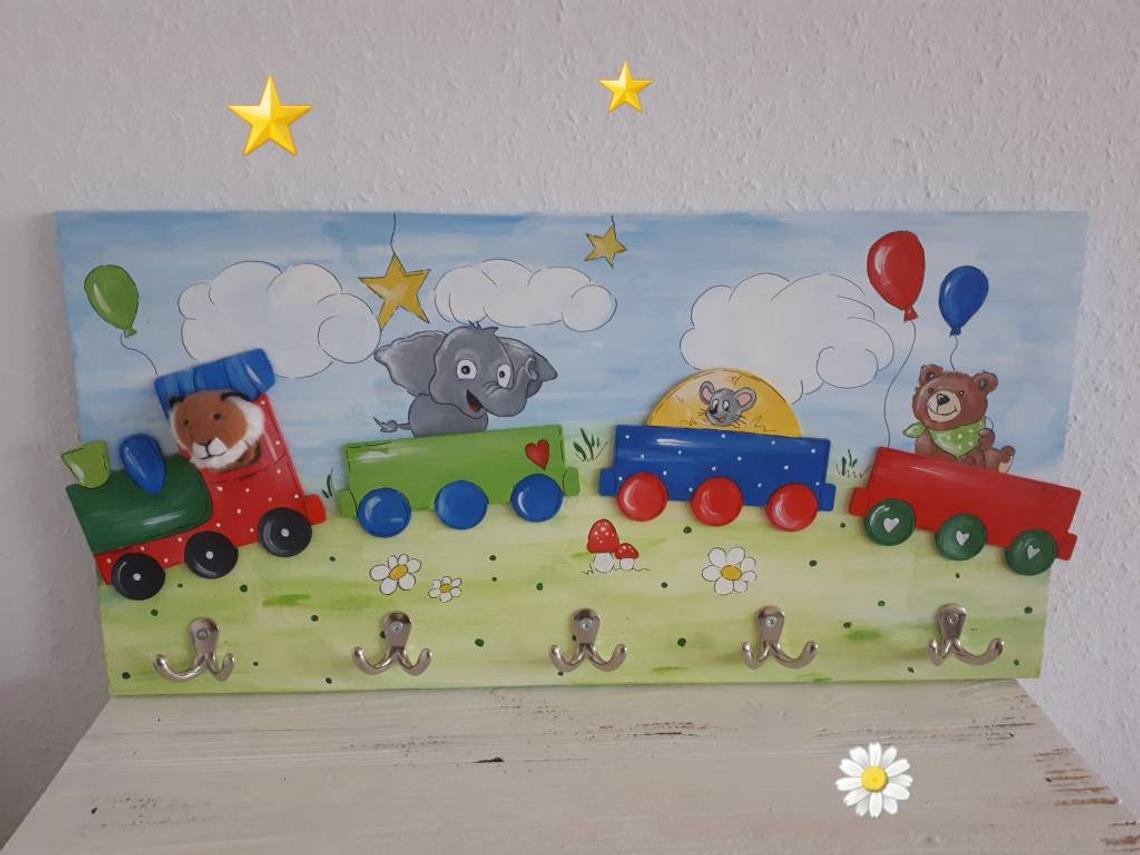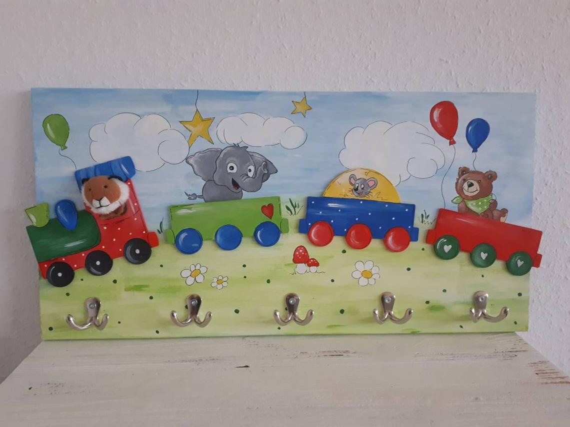 Große Kindergarderobe mit Zug und Tieren * 62 x 30 cm * Namensbeschriftung möglich