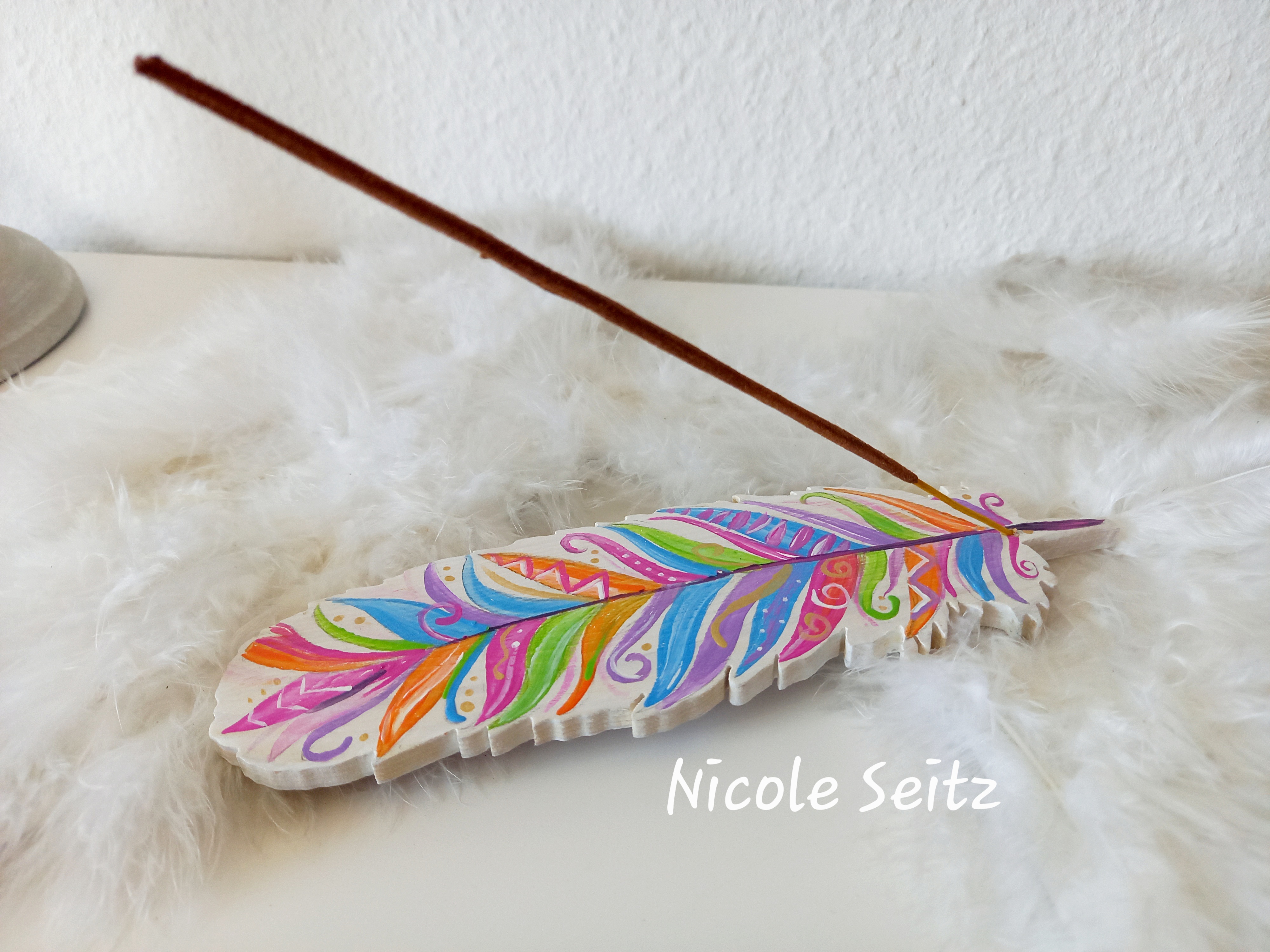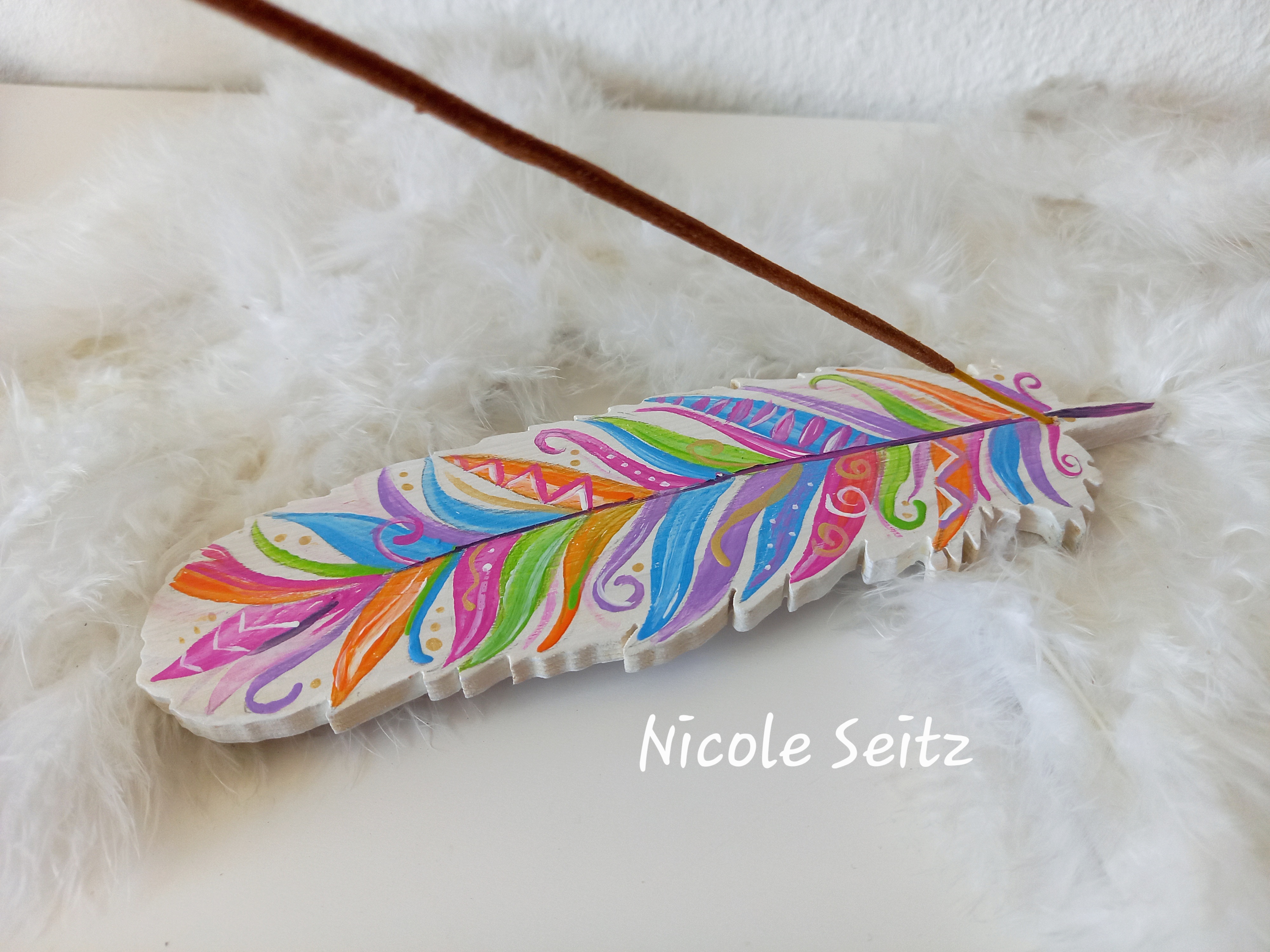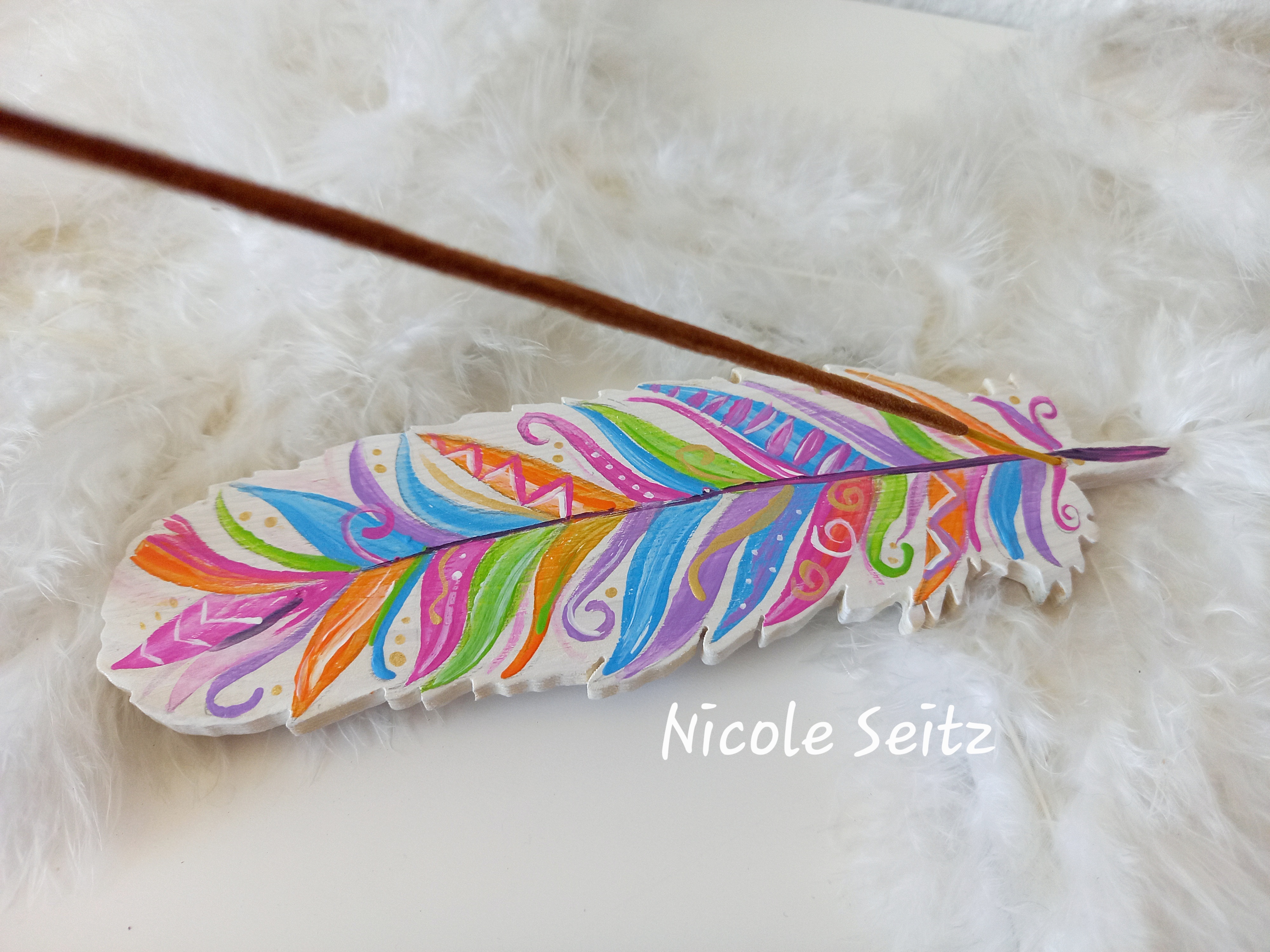Räucherstäbchenhalter * Feder * Handarbeit, handbemalt * Bunt