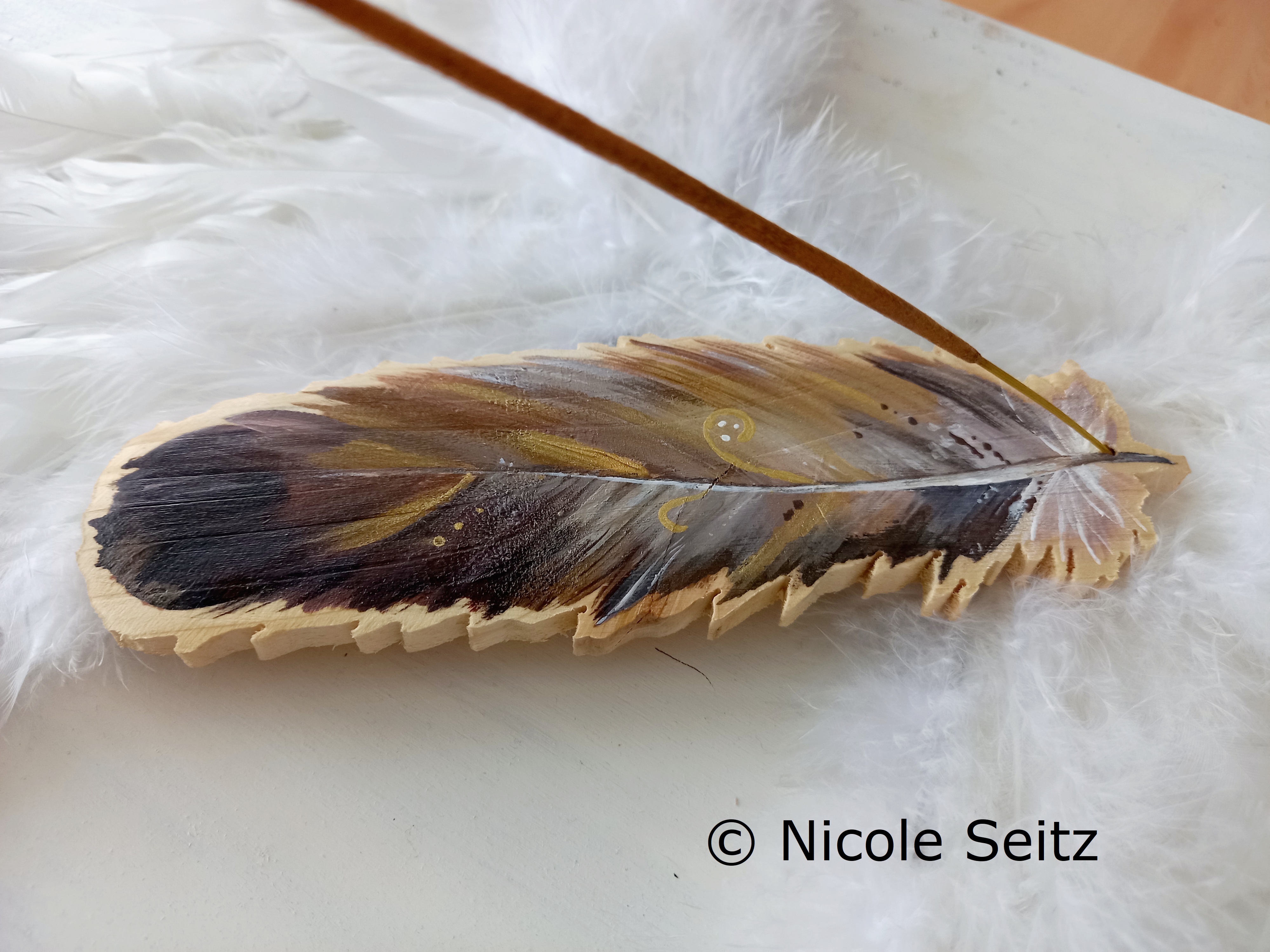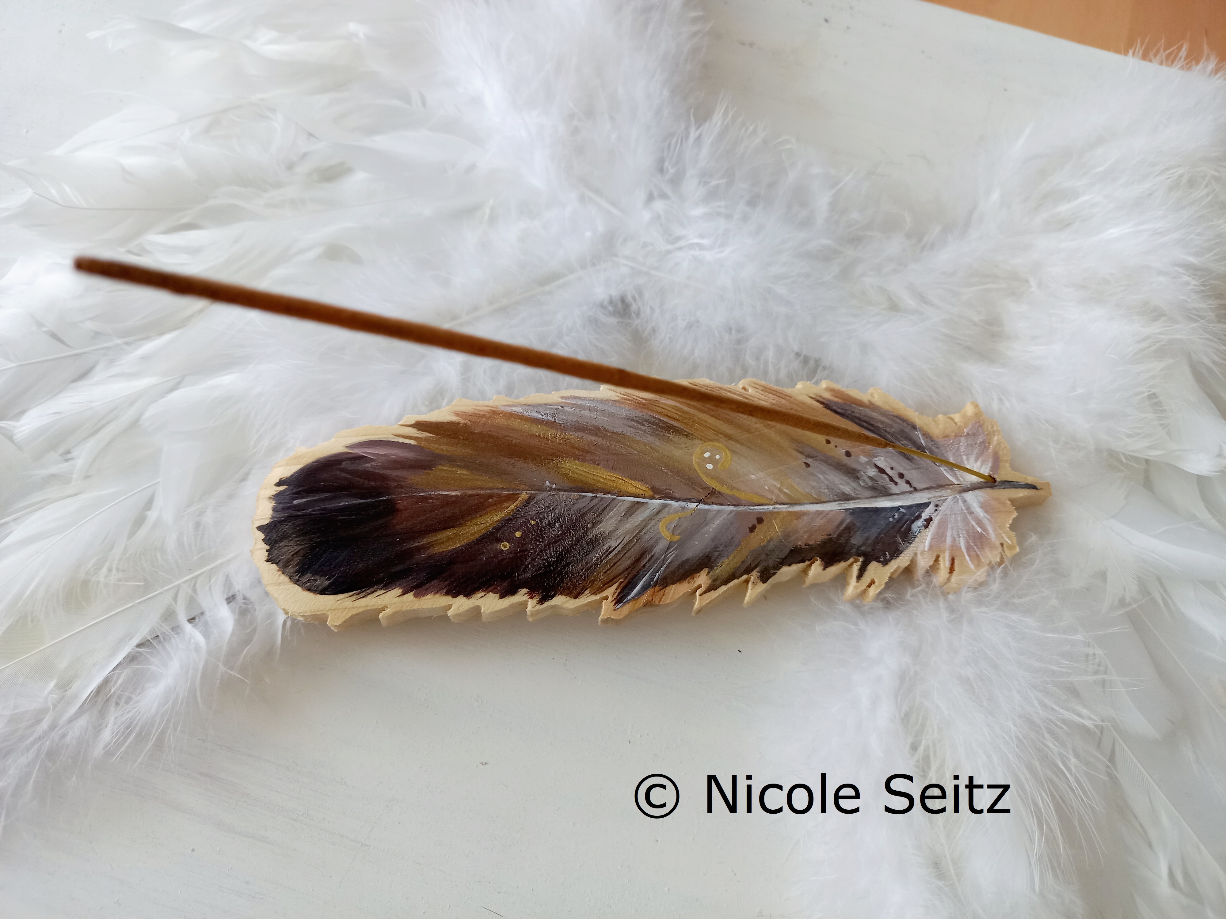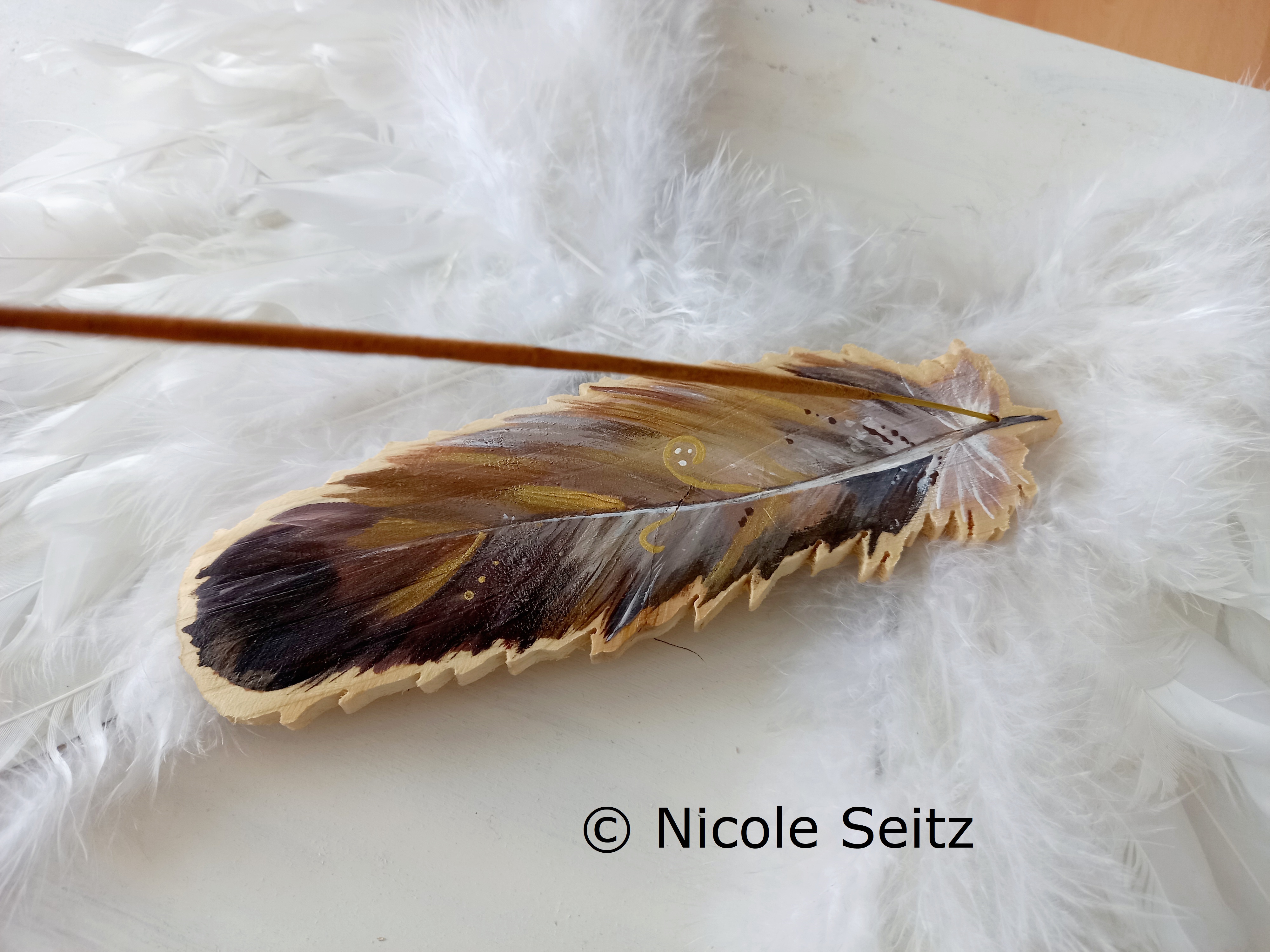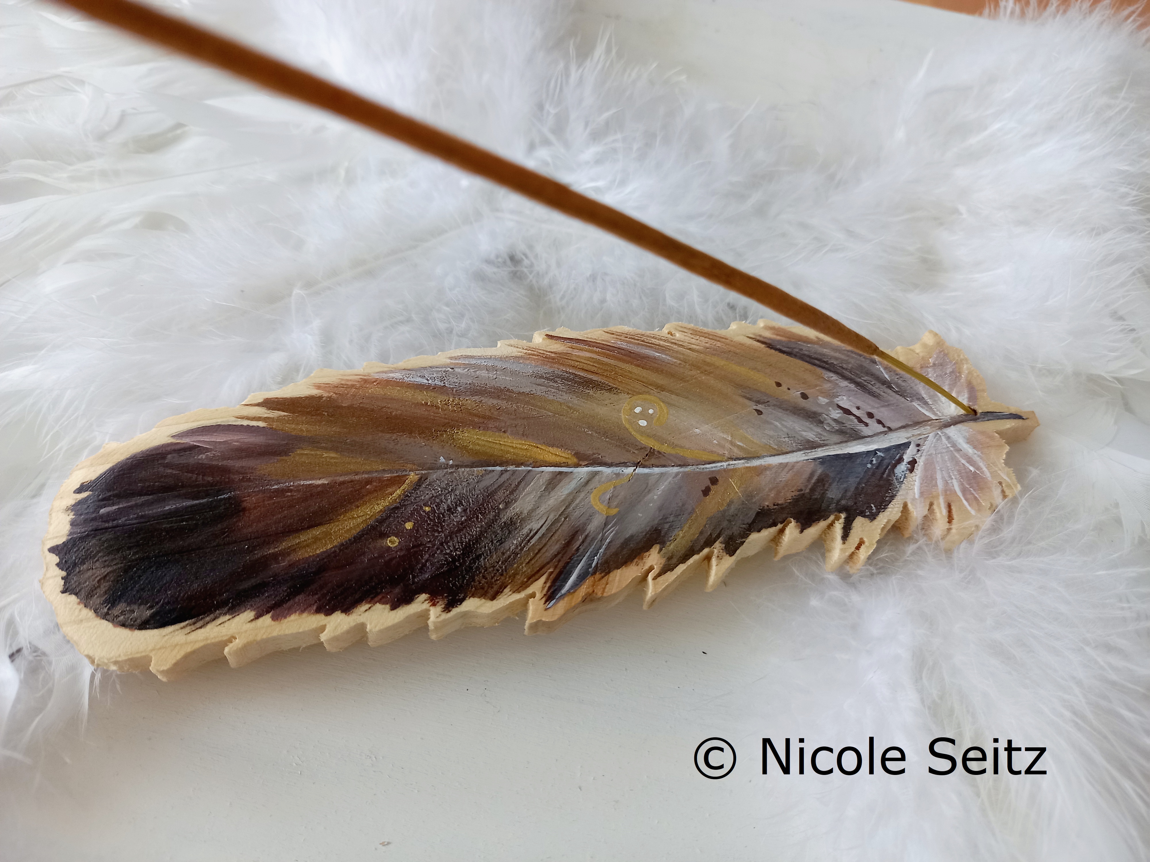 Räucherstäbchenhalter * Feder * Handarbeit, handbemalt * Braun
