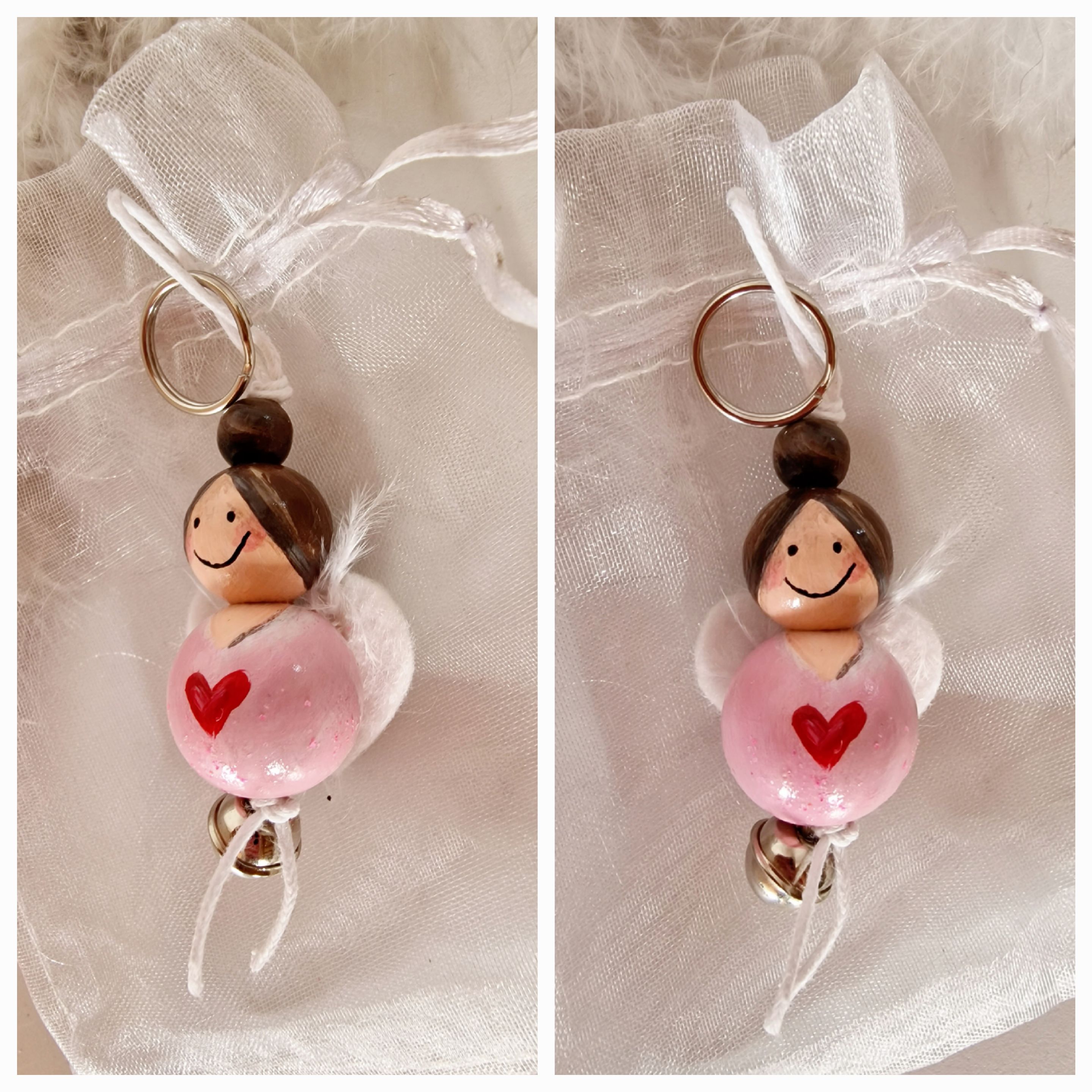 Schlüssel-/Taschenanhänger * Engel * aus handbemalten Holzperlen