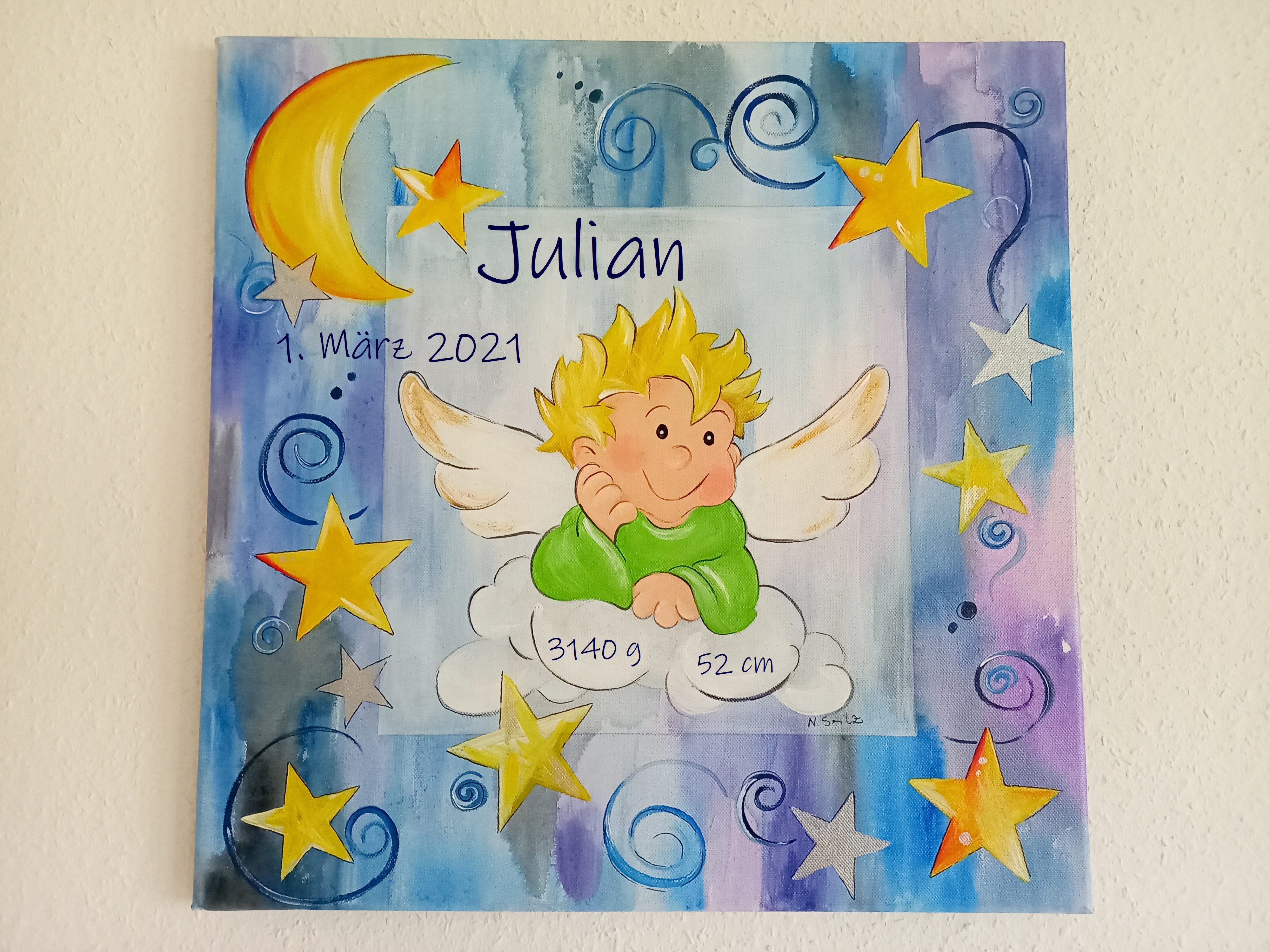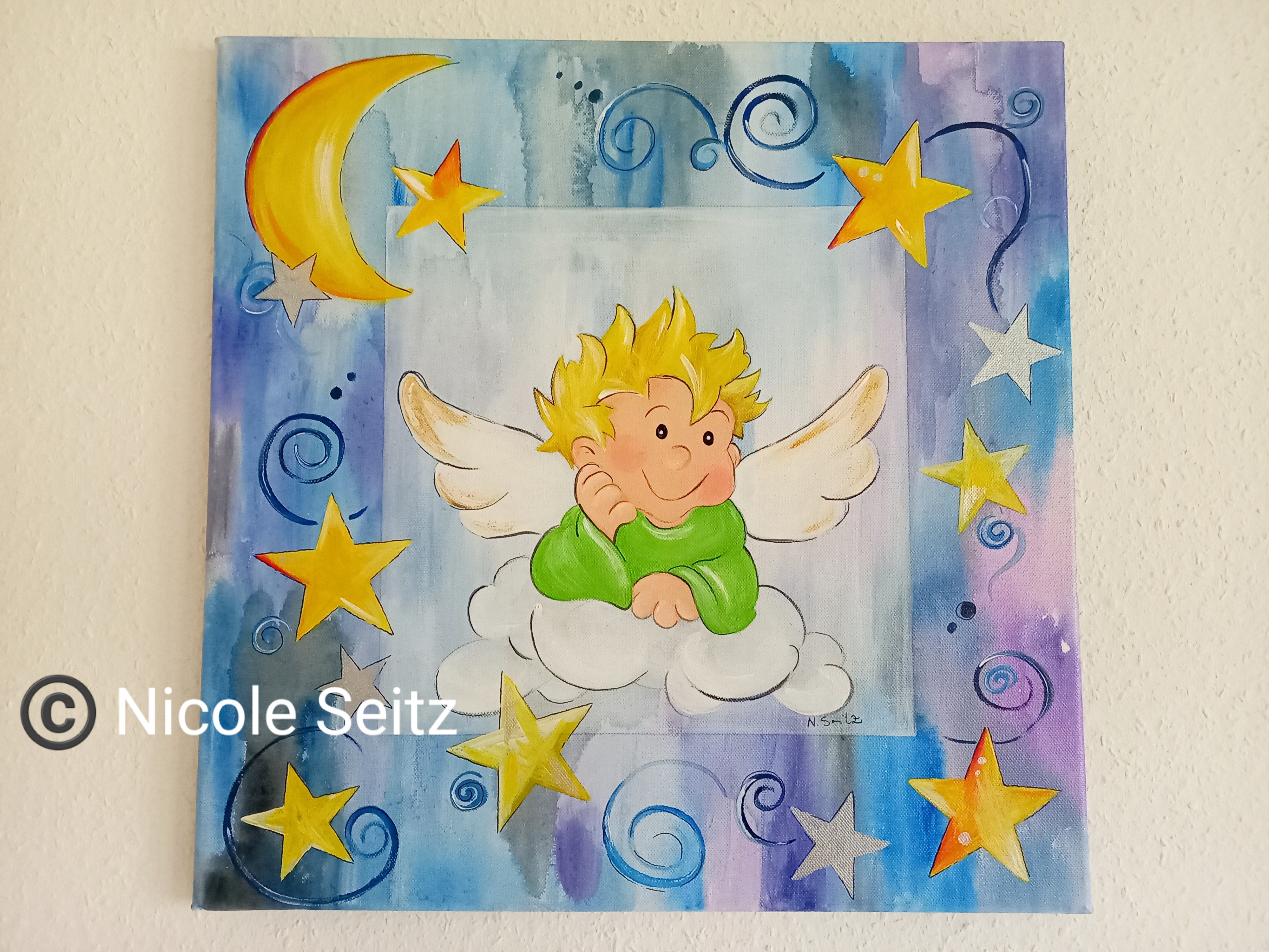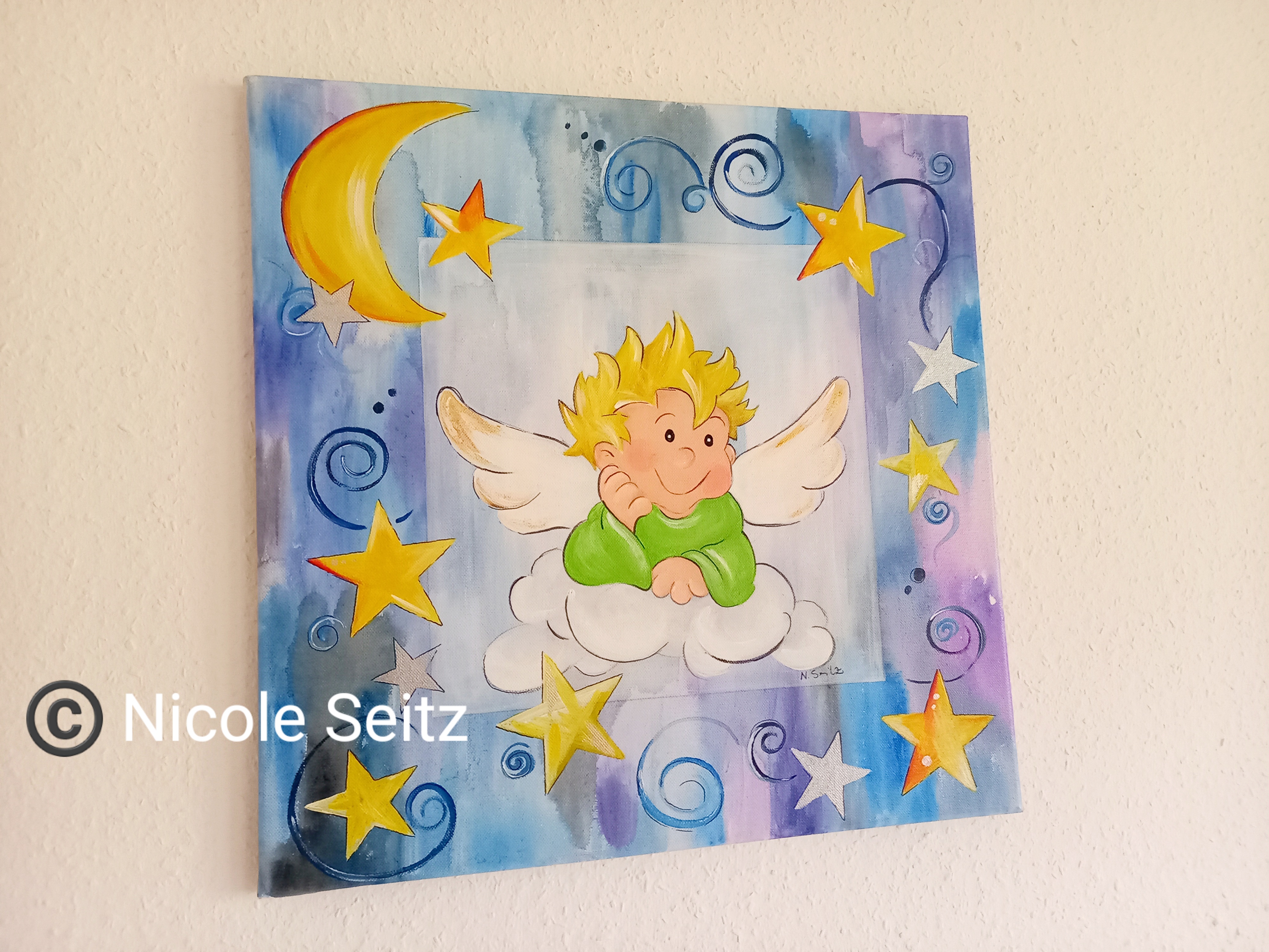 Schutzengel-Bild * Geburt * Taufe * mit Daten * 50 x 50 cm