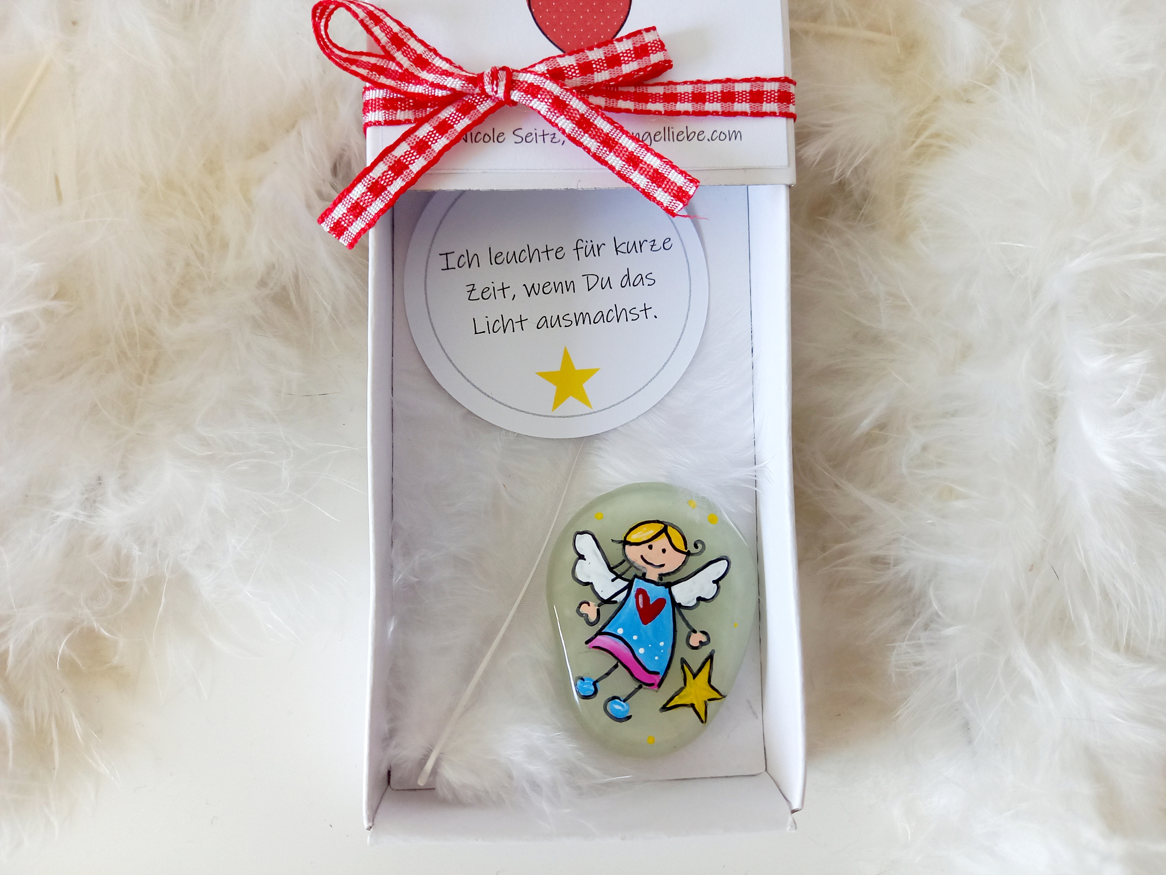 der auf einem nachtglimmenden Kunststoff-Stein gemalt ist.
