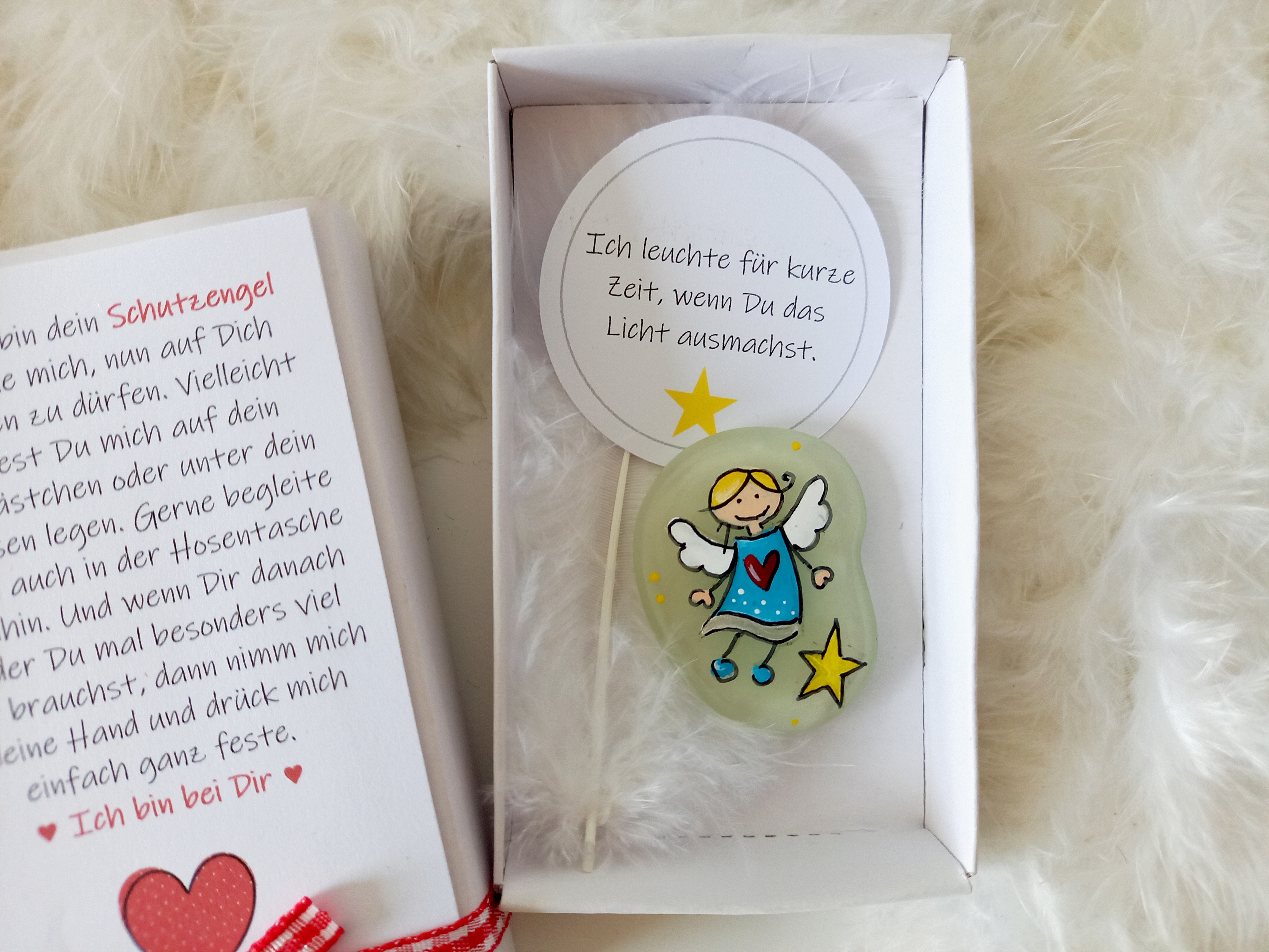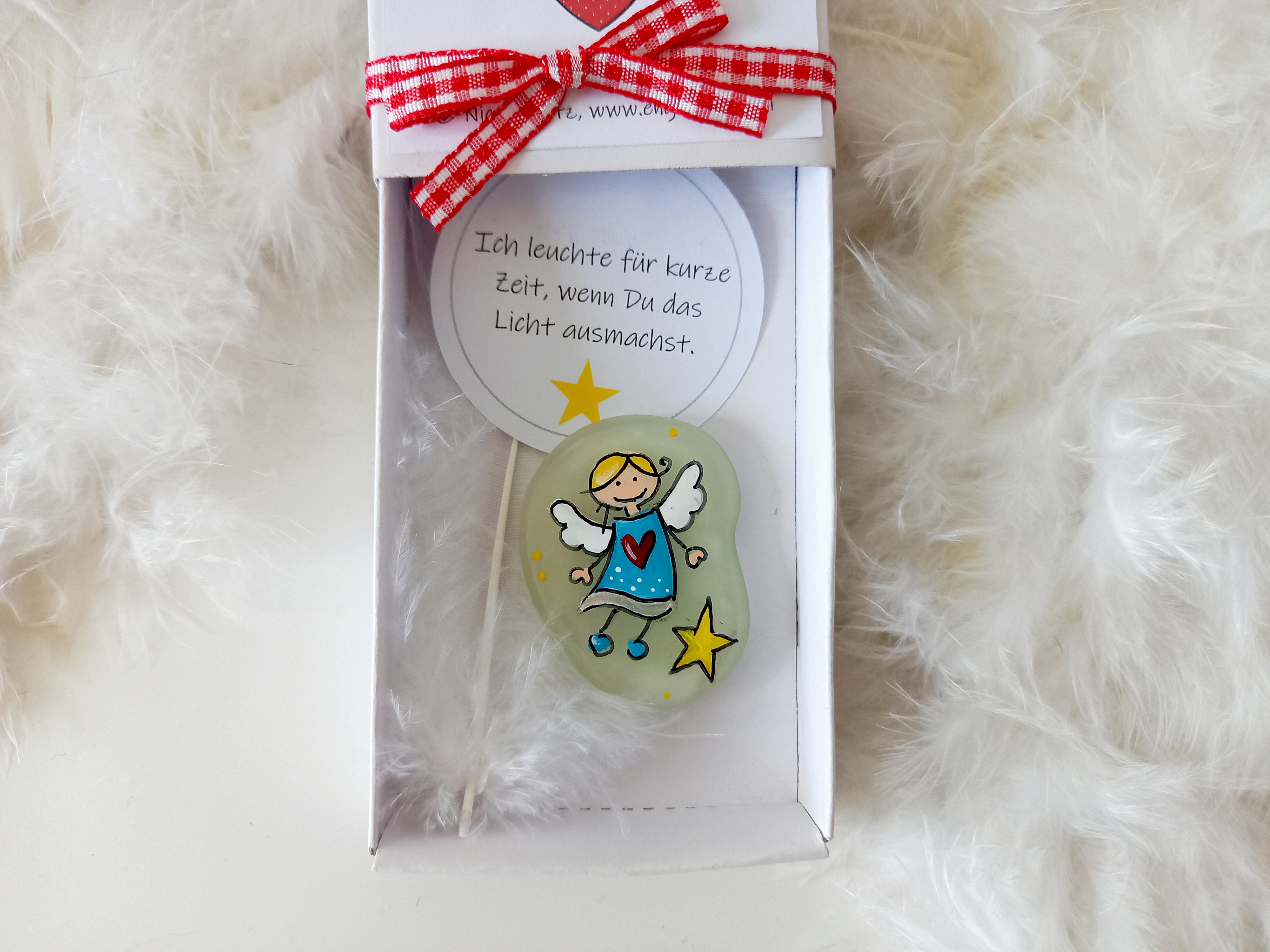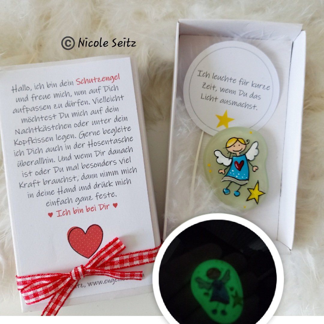 der auf einem nachtglimmenden Kunststoff-Stein gemalt ist.