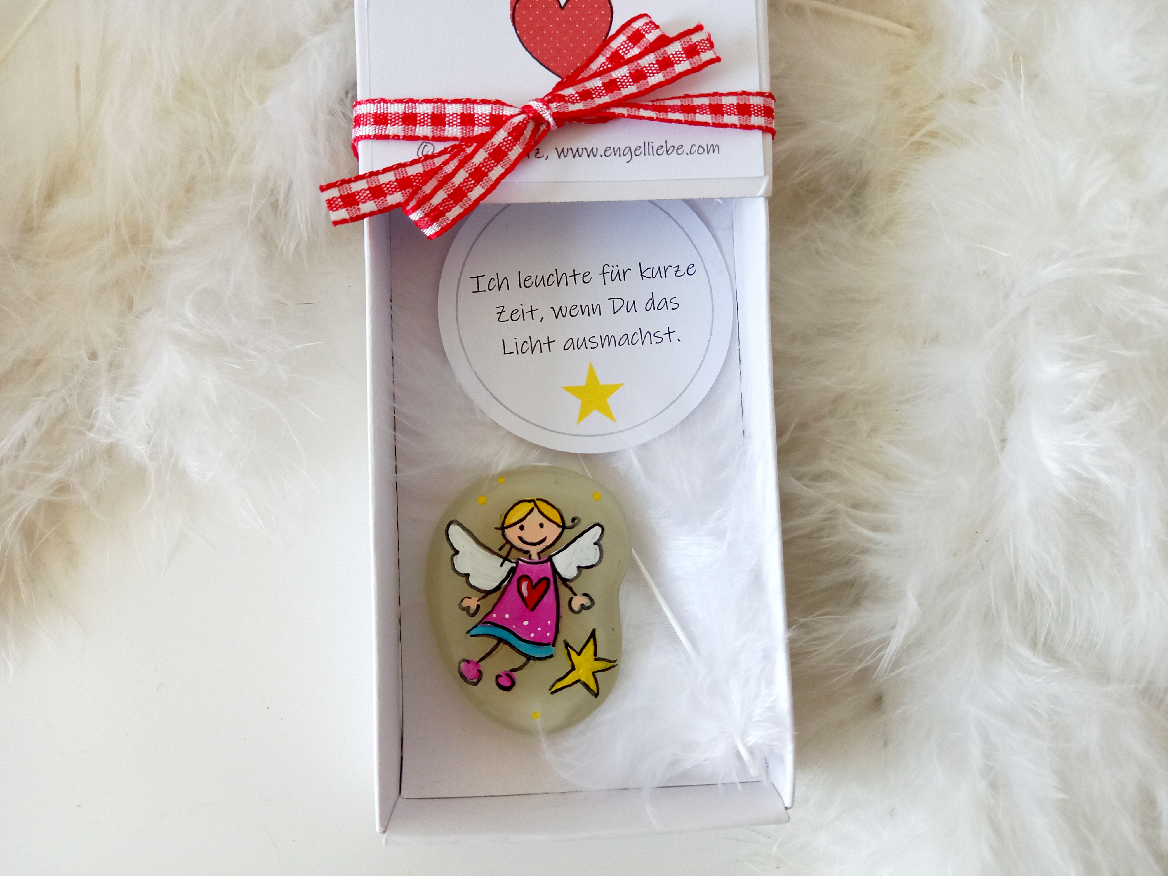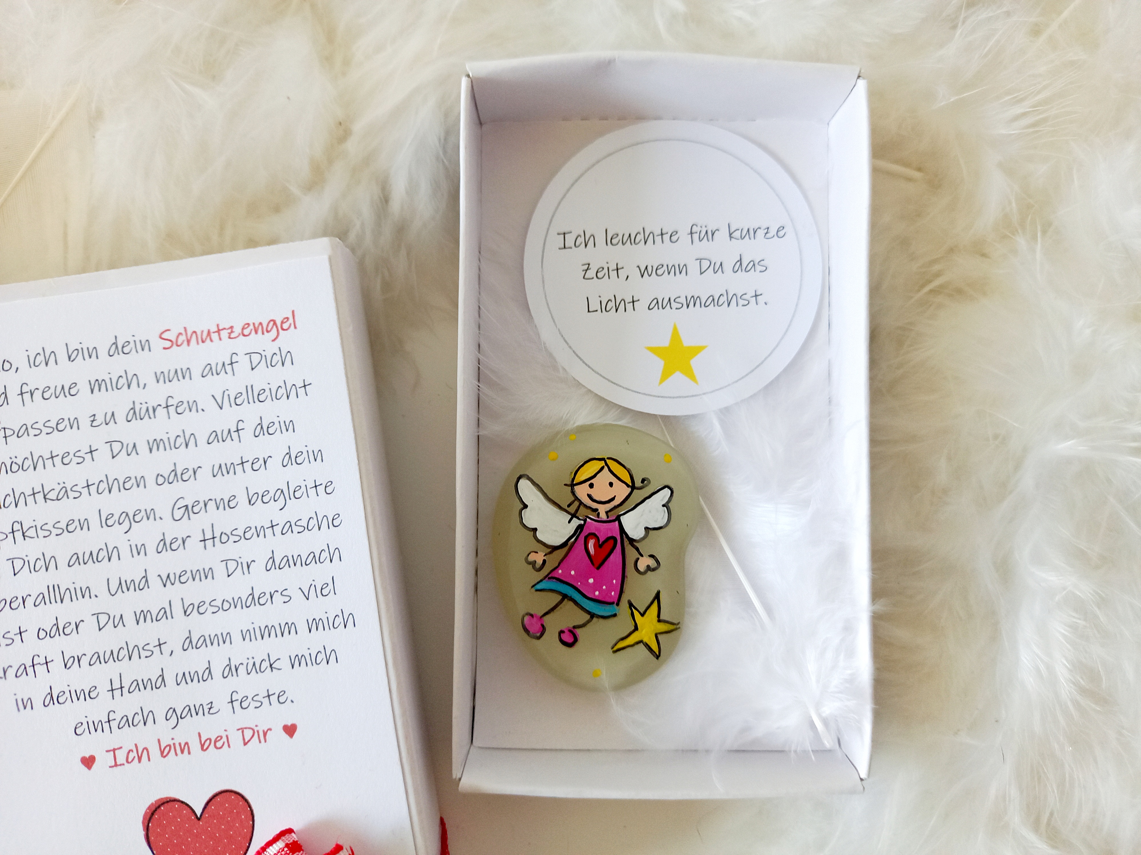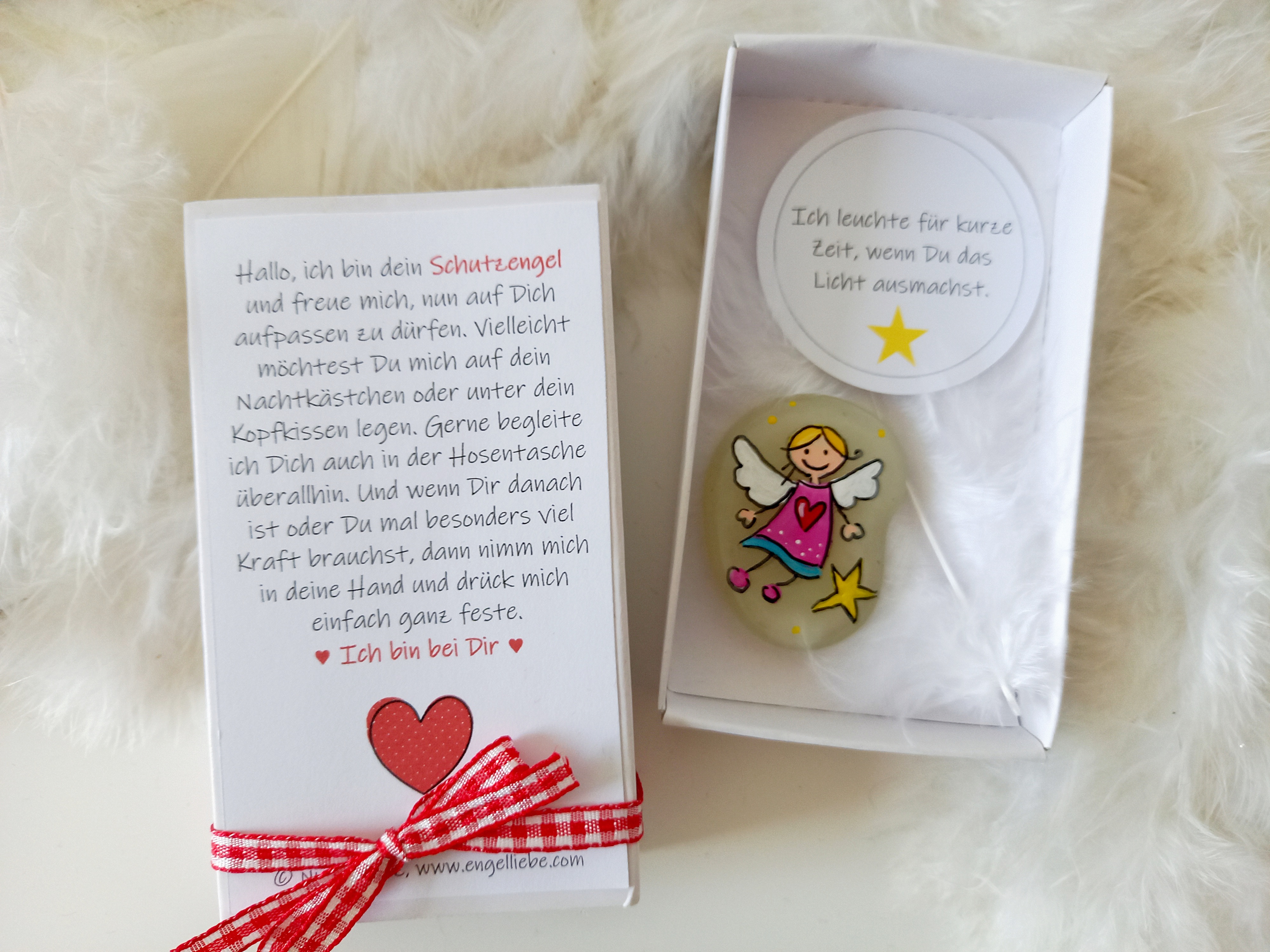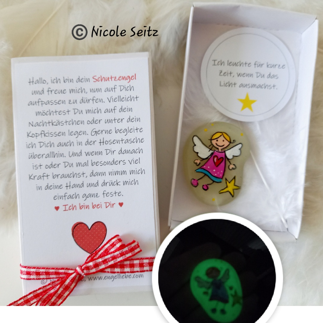 der auf einem nachtglimmenden Kunststoff-Stein gemalt ist.