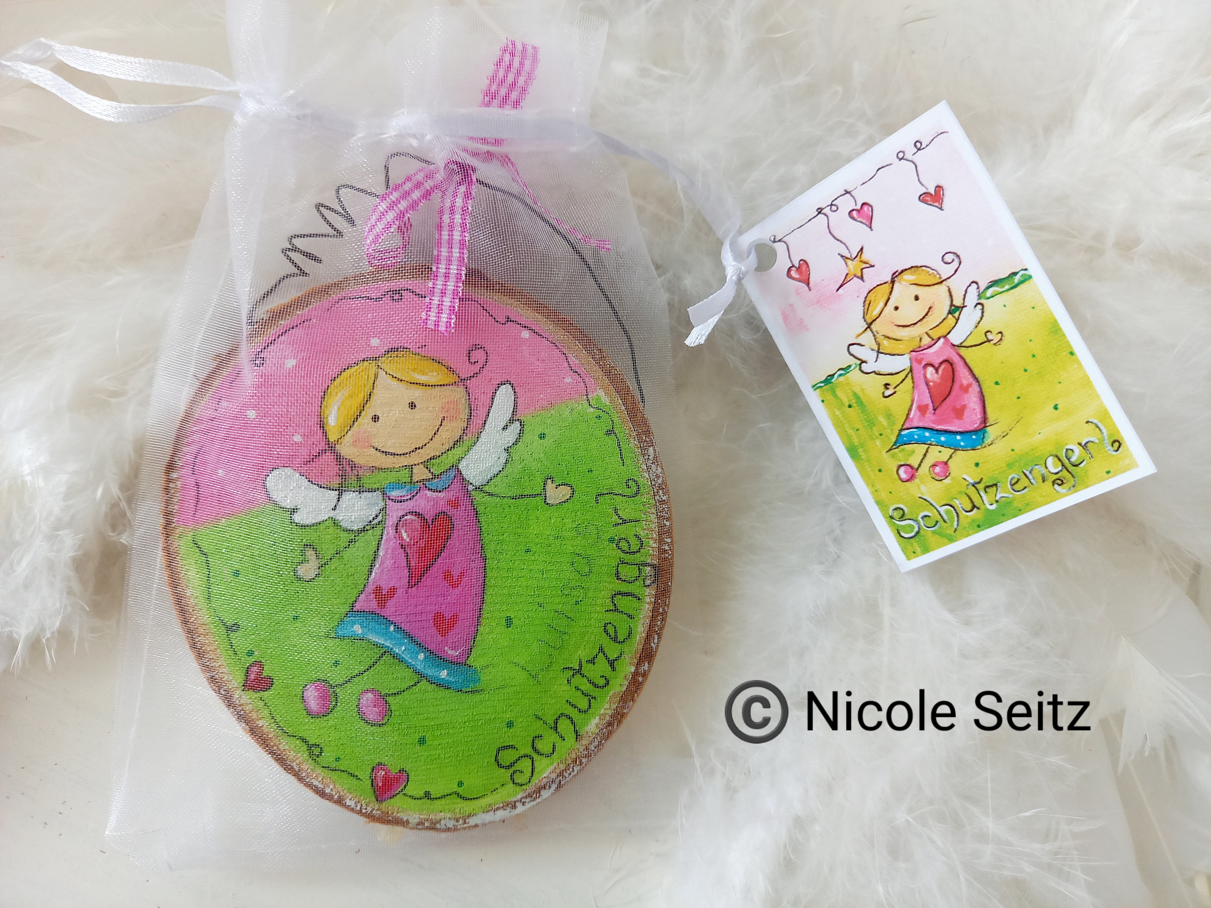 Schutzengerl * auf einer Holzscheibe * 8 x 10 cm * Namensbeschriftung möglich
