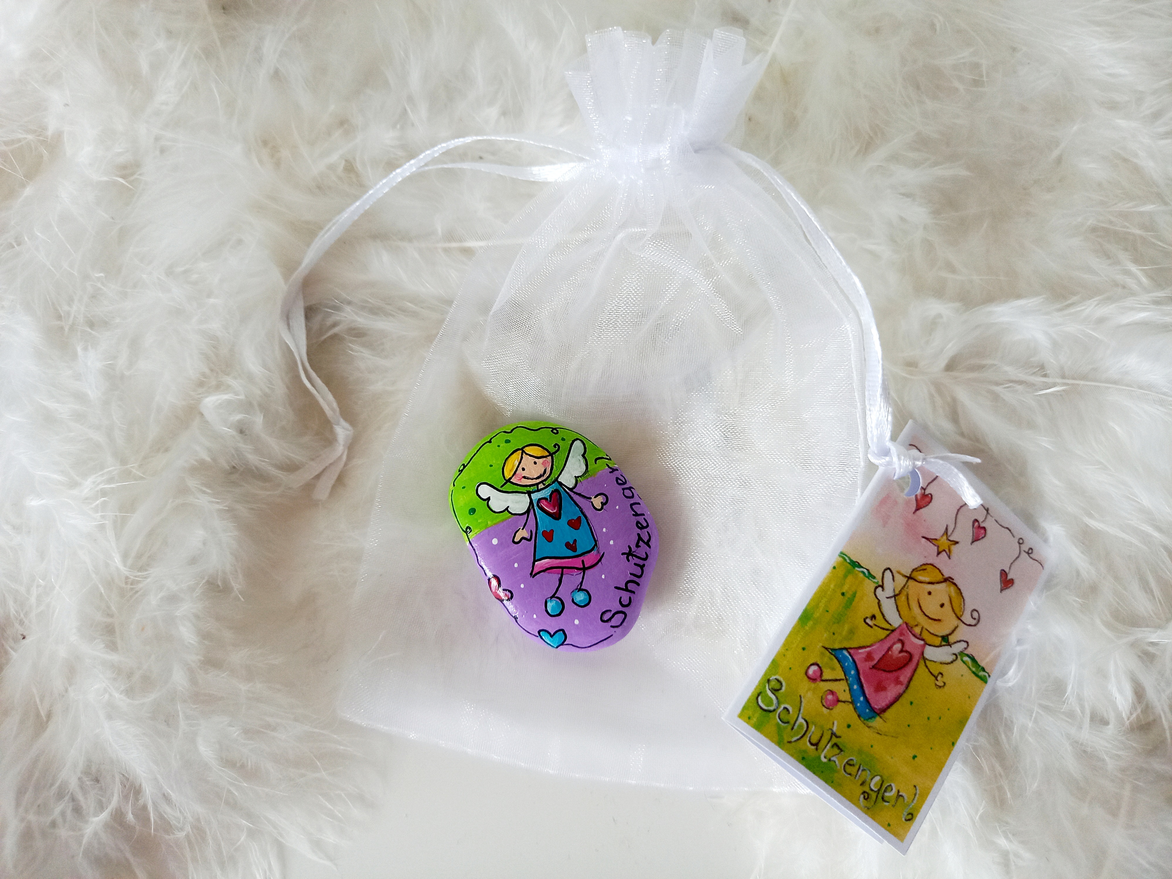 Mobile Preview: Schutzengerl * Stein * mit Kärtchen * Grün-Lila-Türkis * 4,7 x 3,3 cm