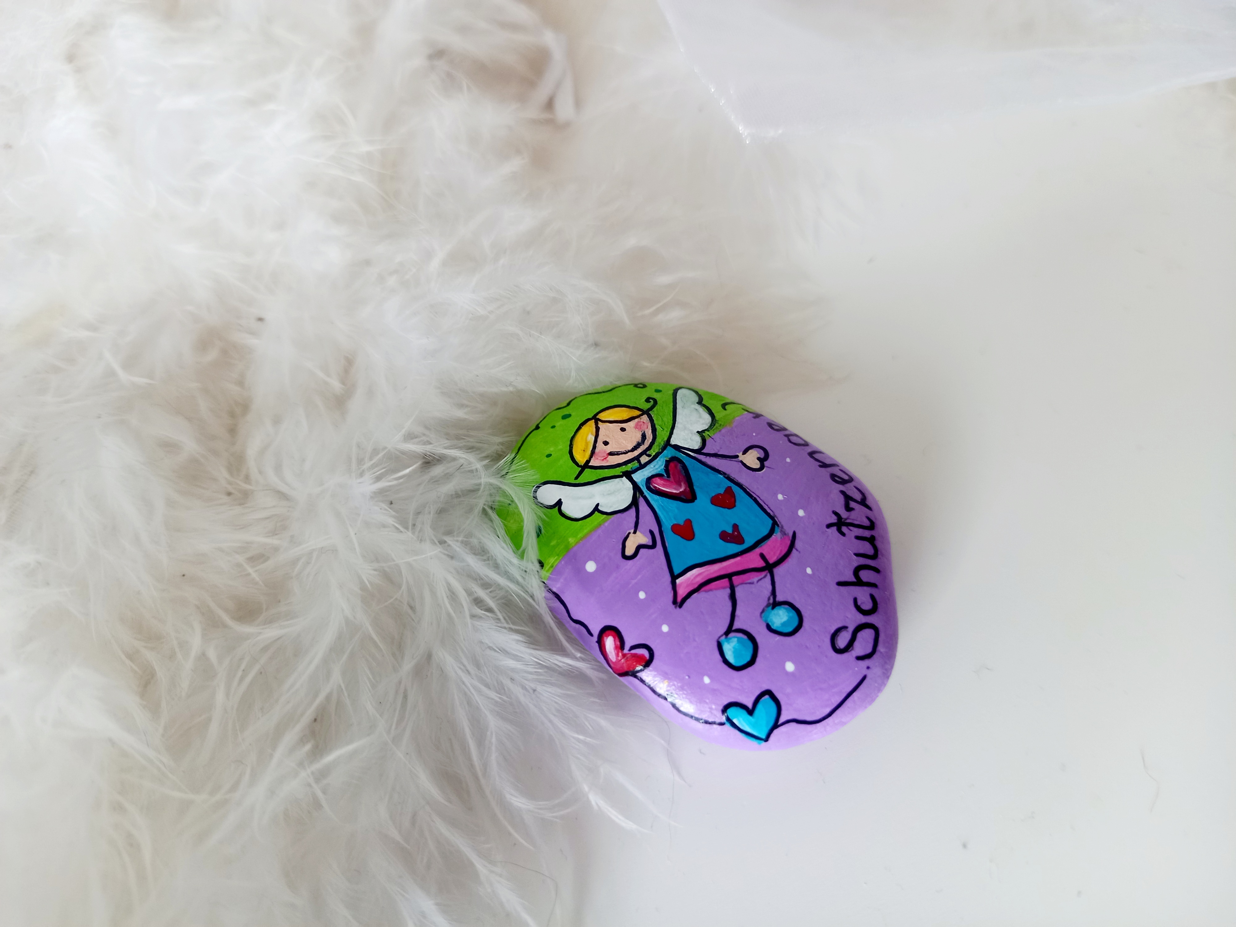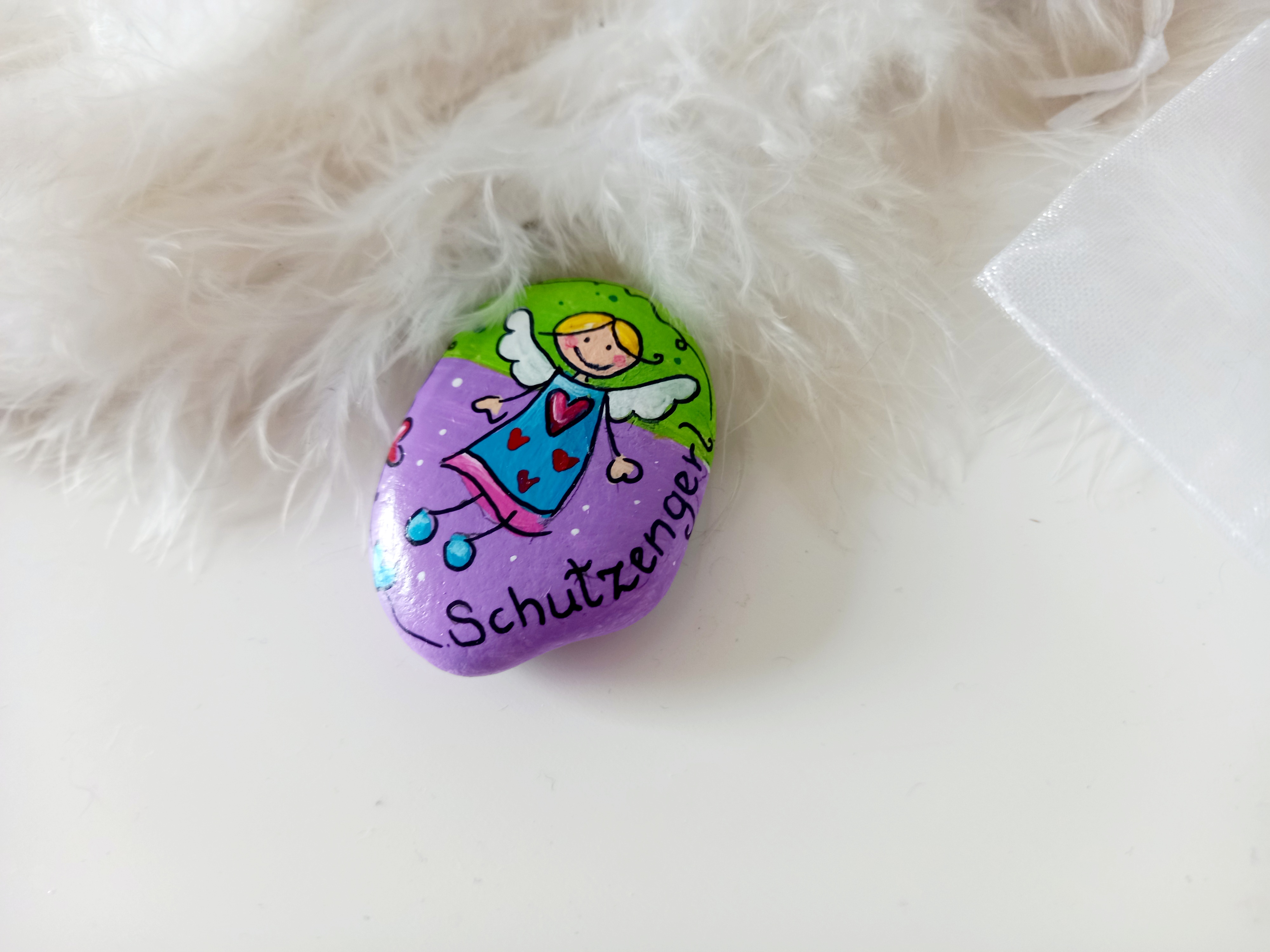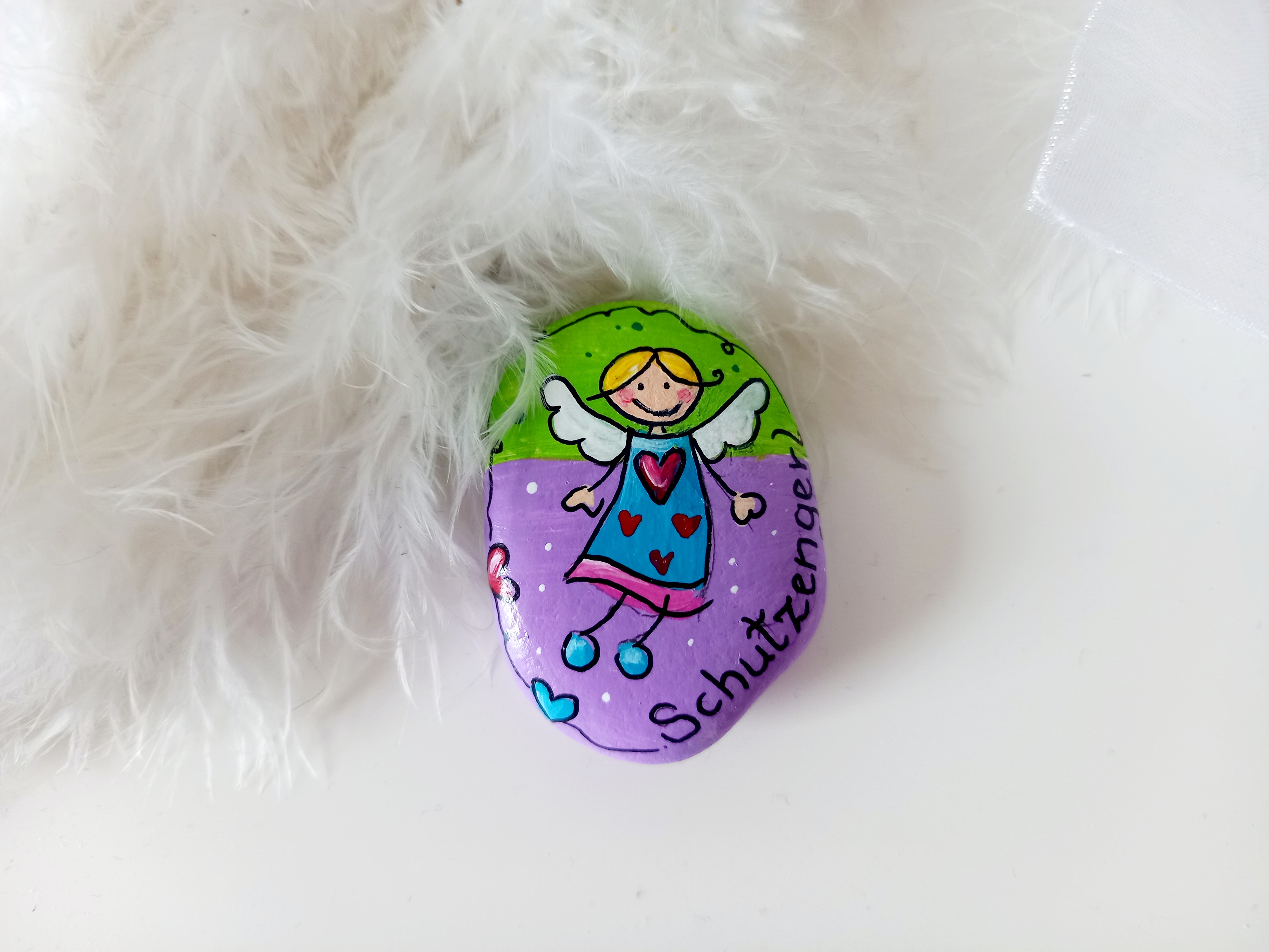 Schutzengerl * Stein * mit Kärtchen * Grün-Lila-Türkis * 4,7 x 3,3 cm