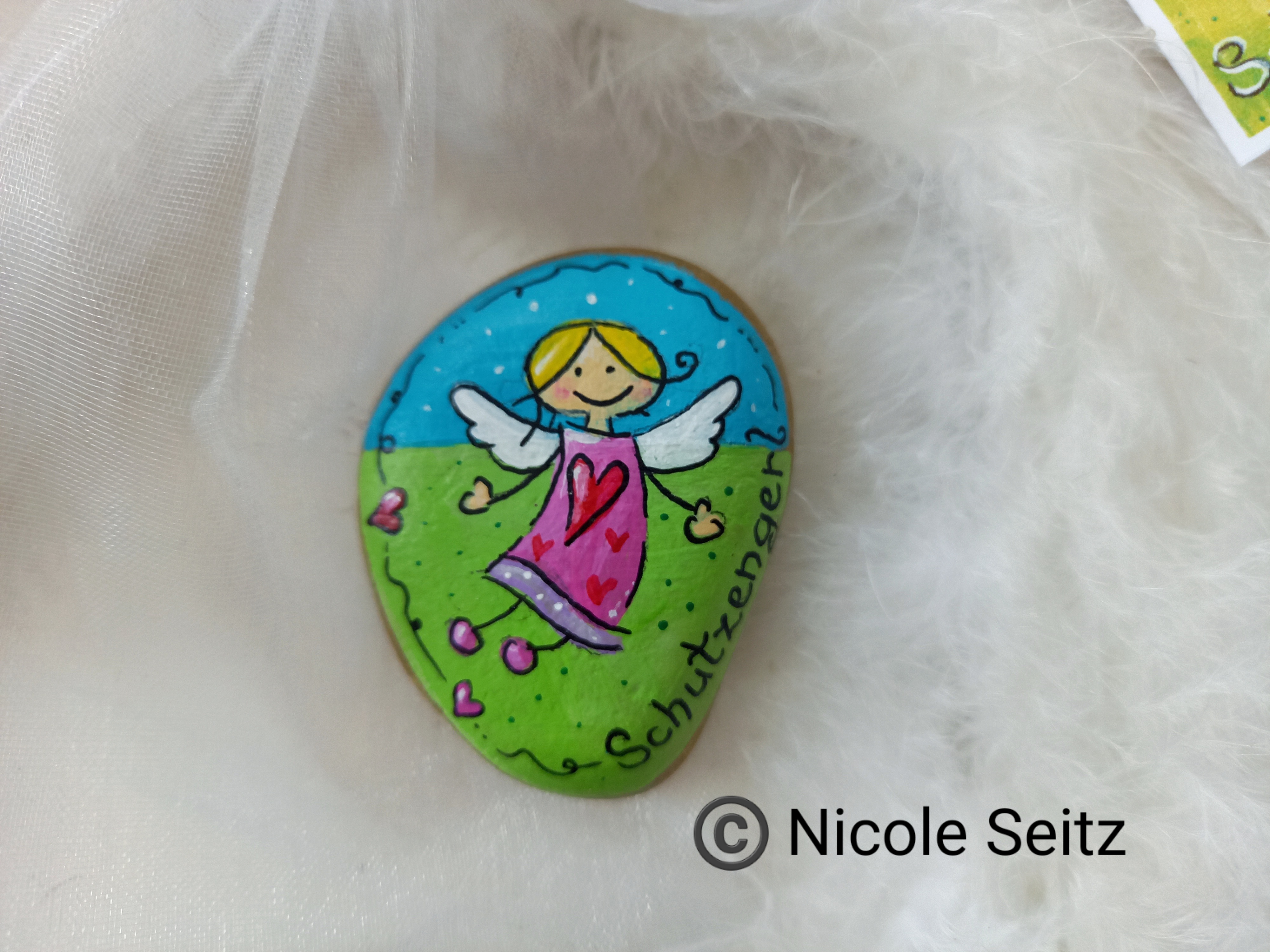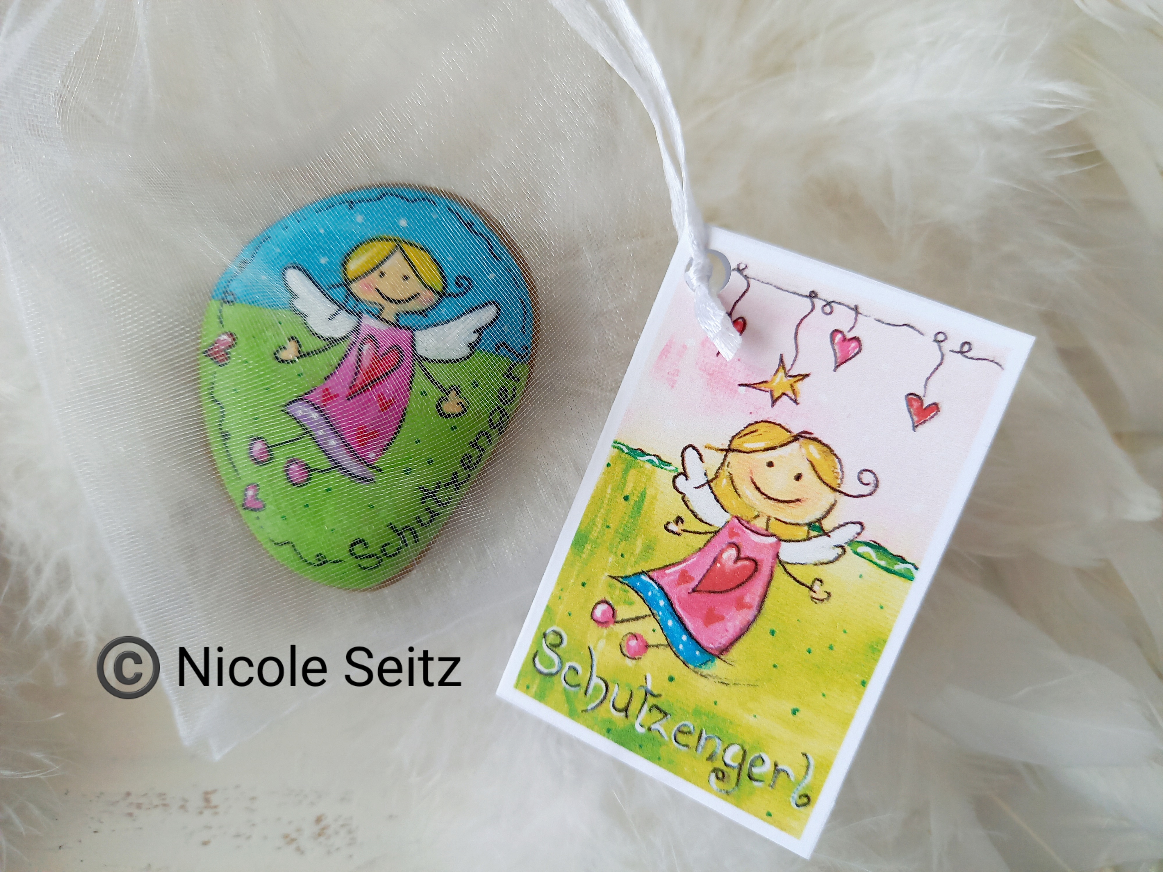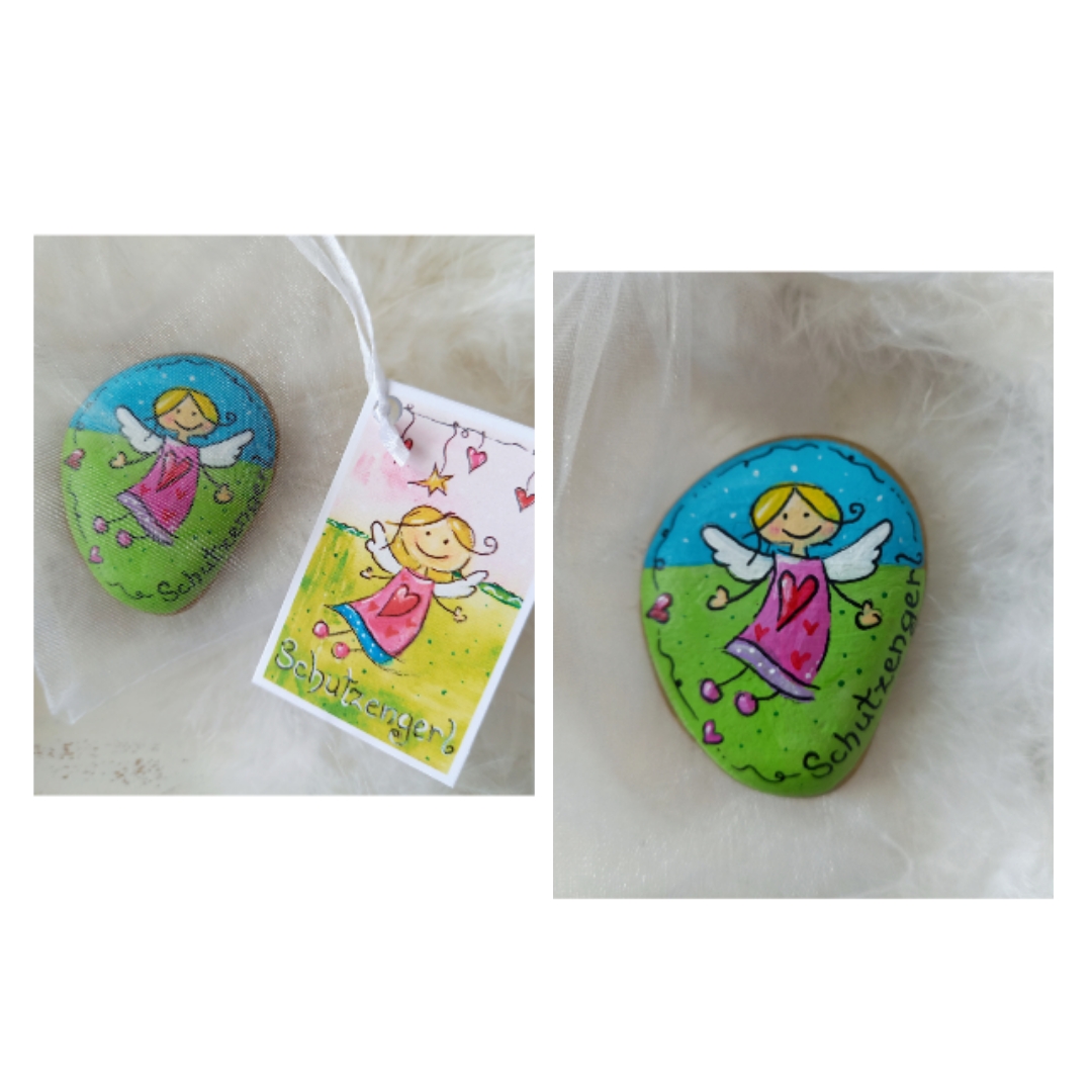 Schutzengerl * Stein * mit Kärtchen * Türkis-Grün-Pink * 5,5 x 4,3 cm