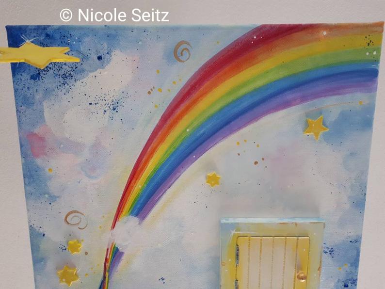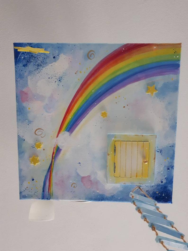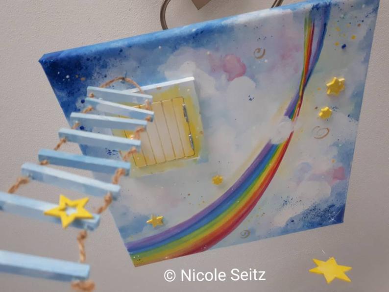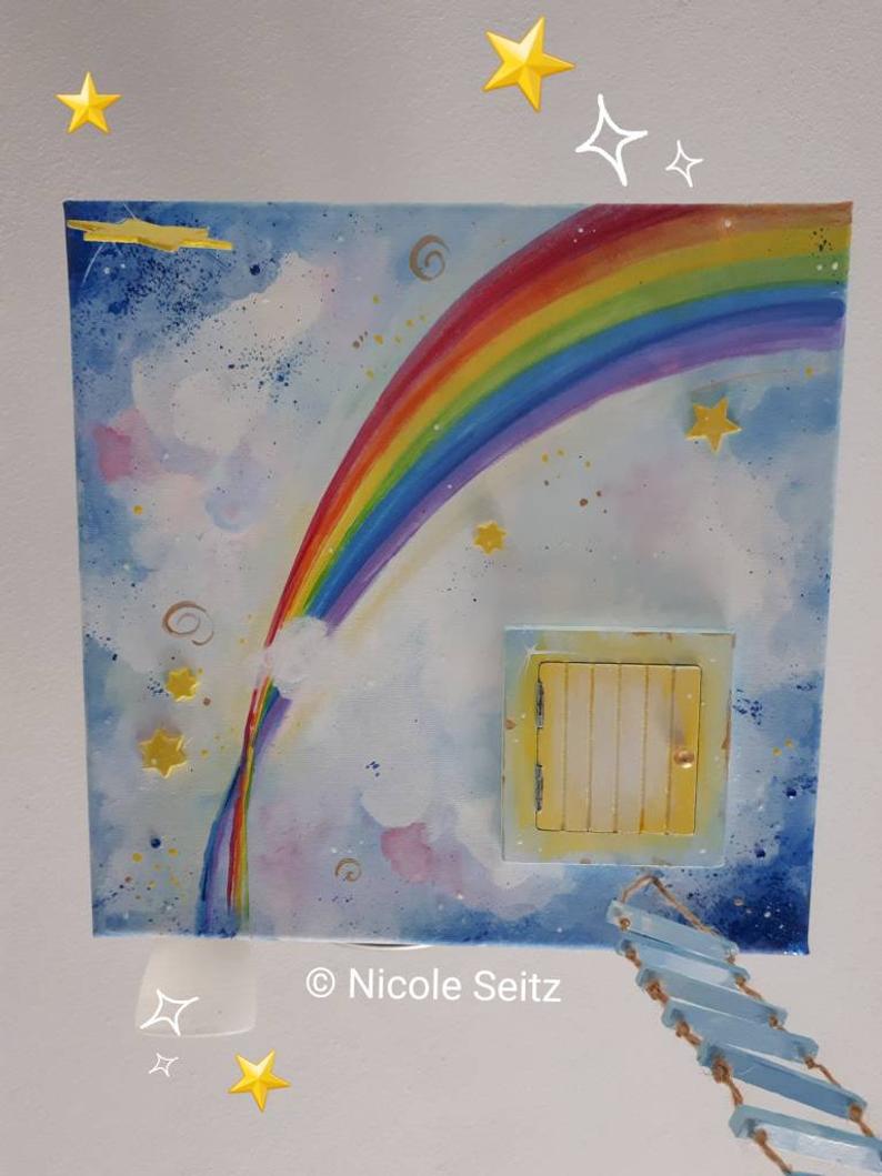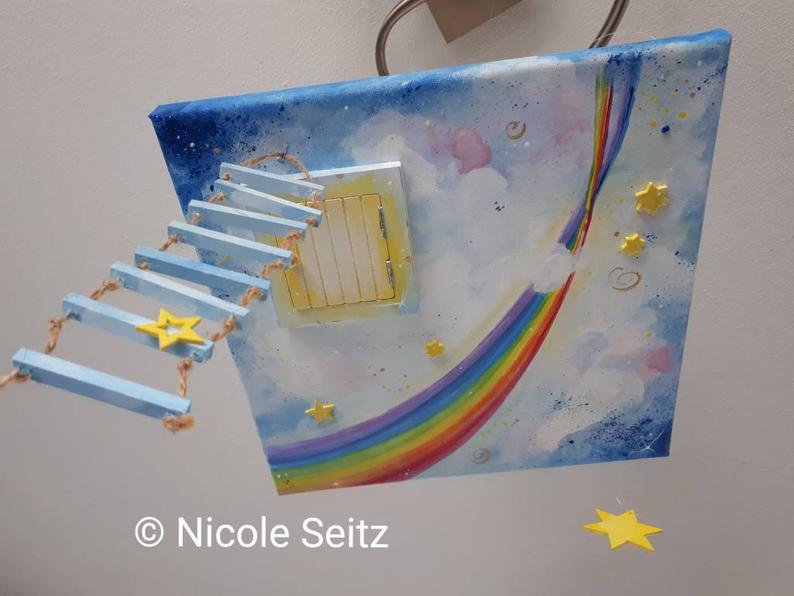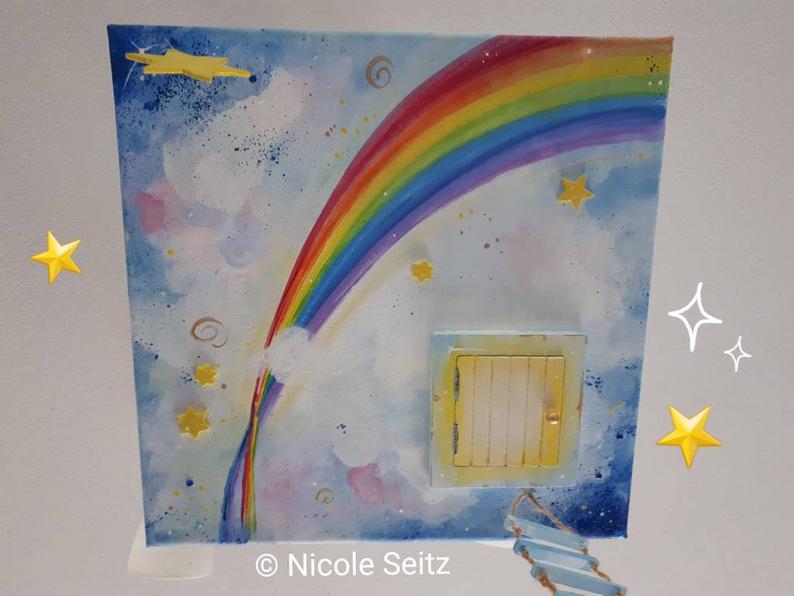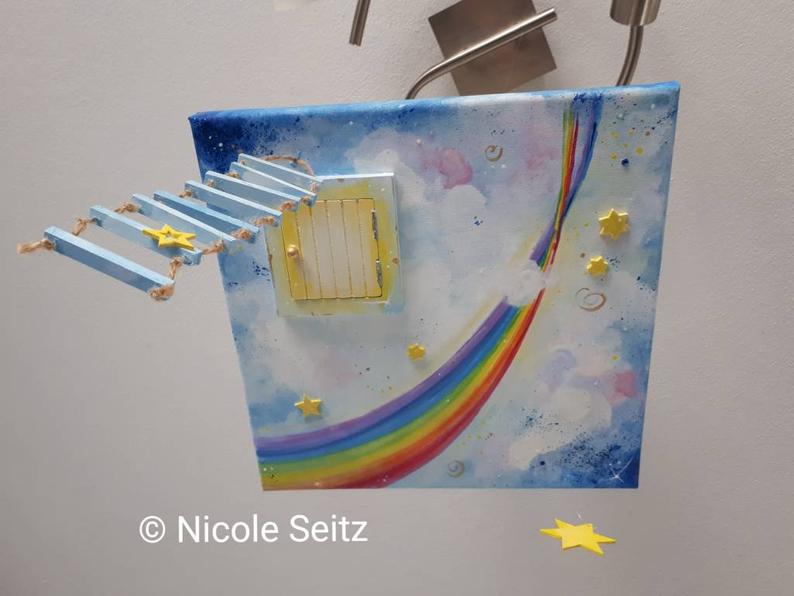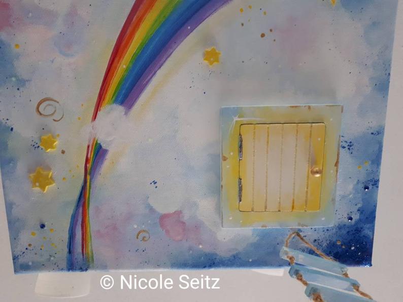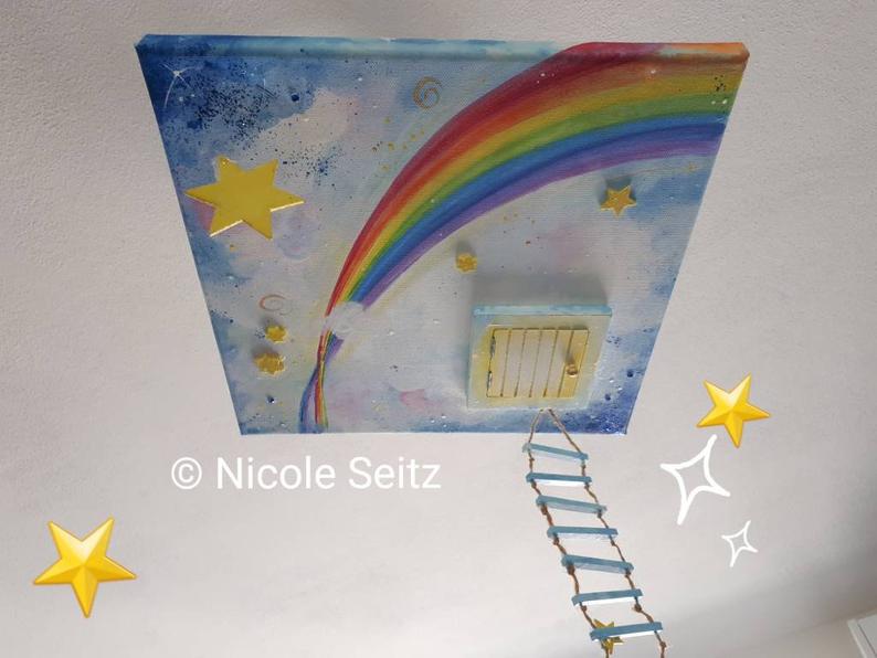 Leinwandbild für die Zimmerdecke mit Feen-/Elfentür (Dachluke) und Strickleiter
