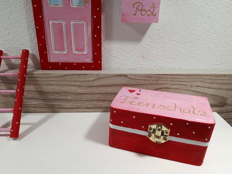 1 kleine Truhe "...´s Feenschatz" (Wunschbeschriftung mit Namen), 9,8 x 5,7 x 5 cm