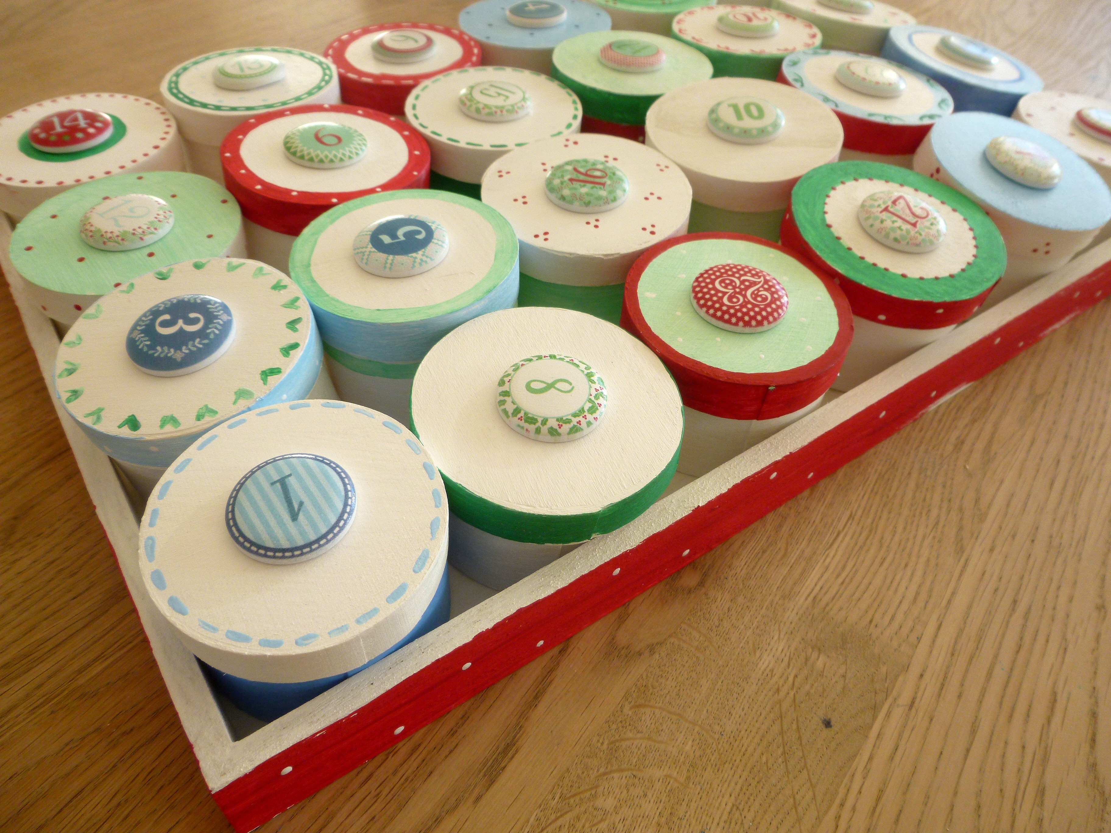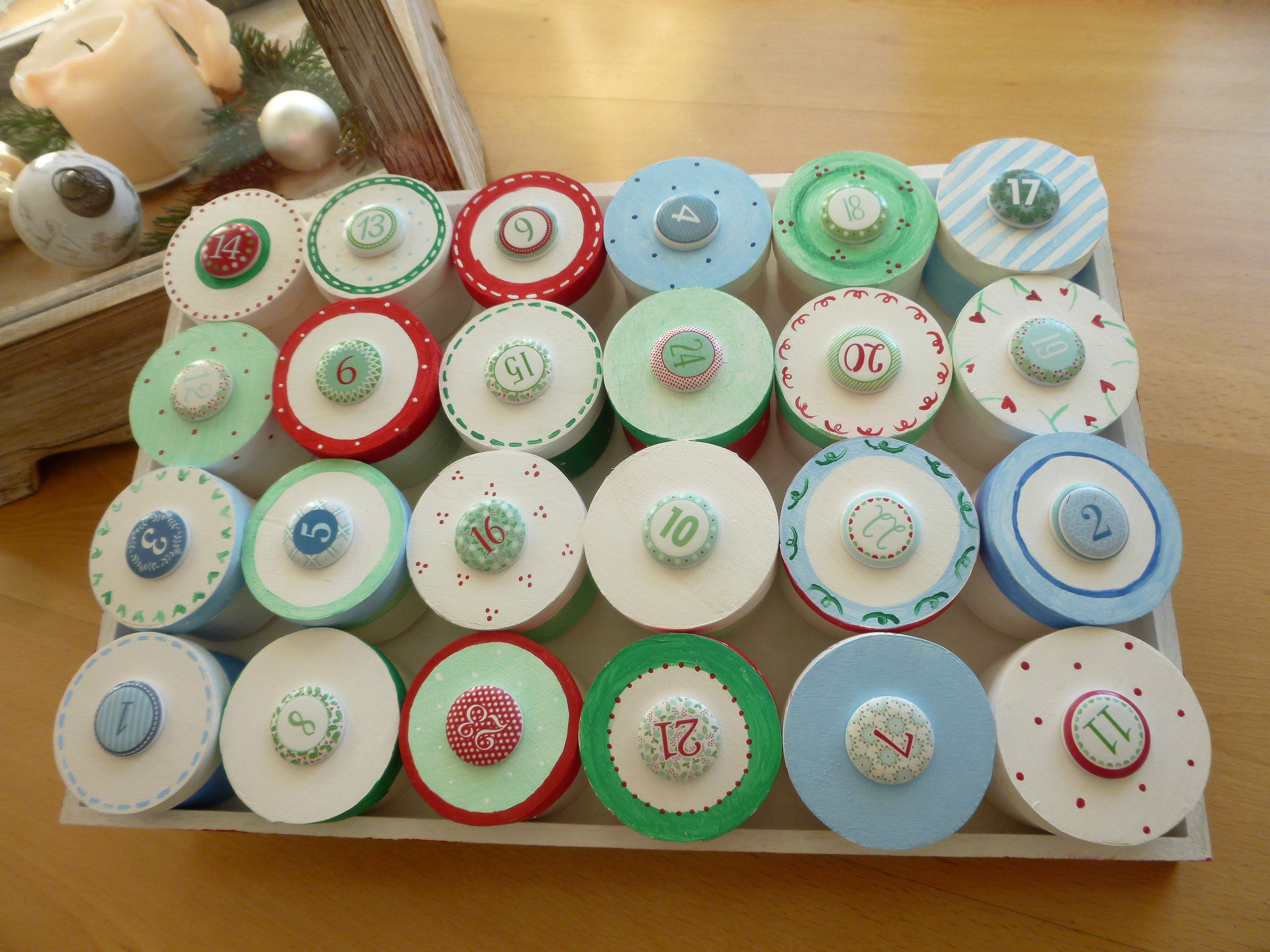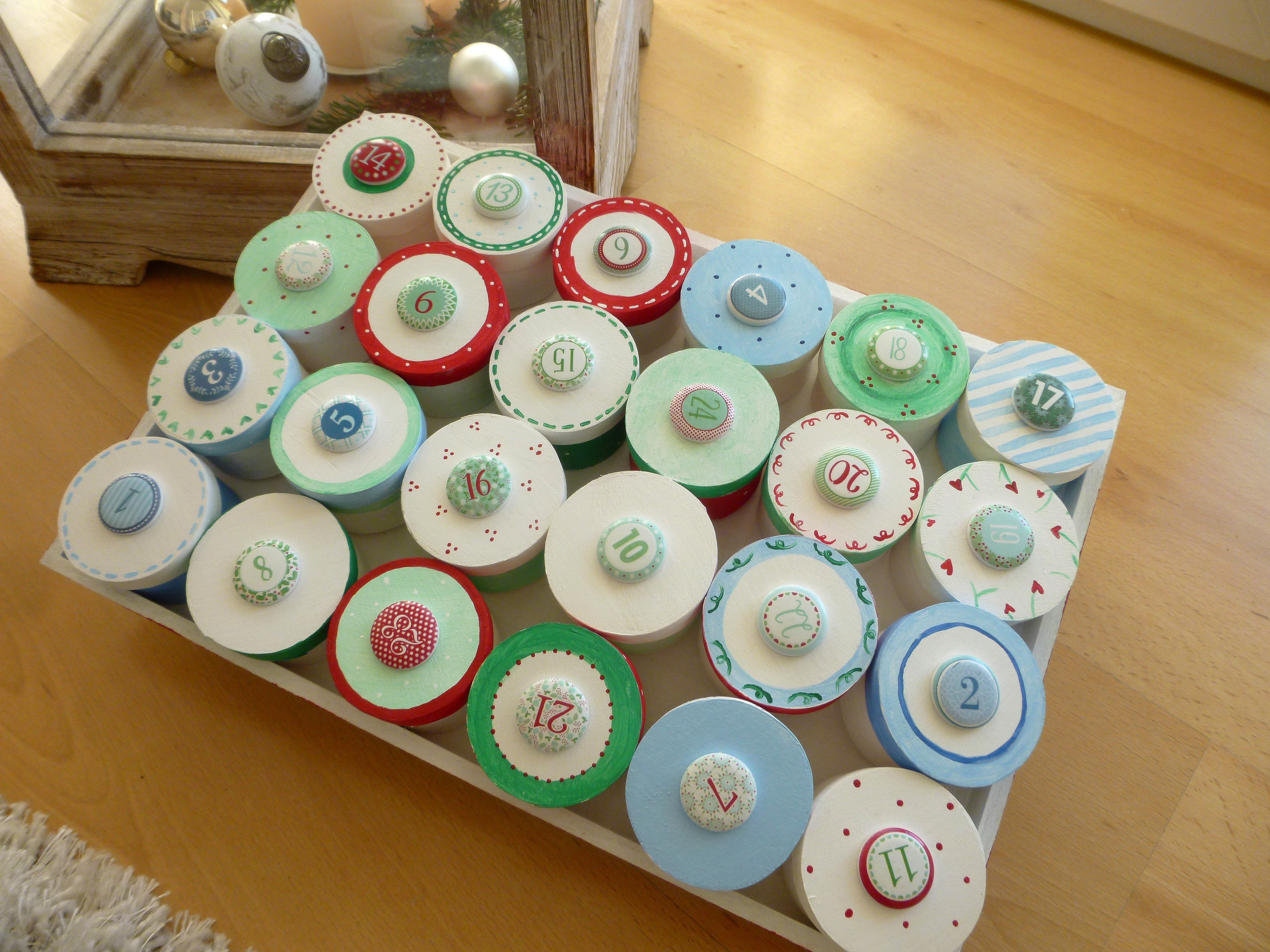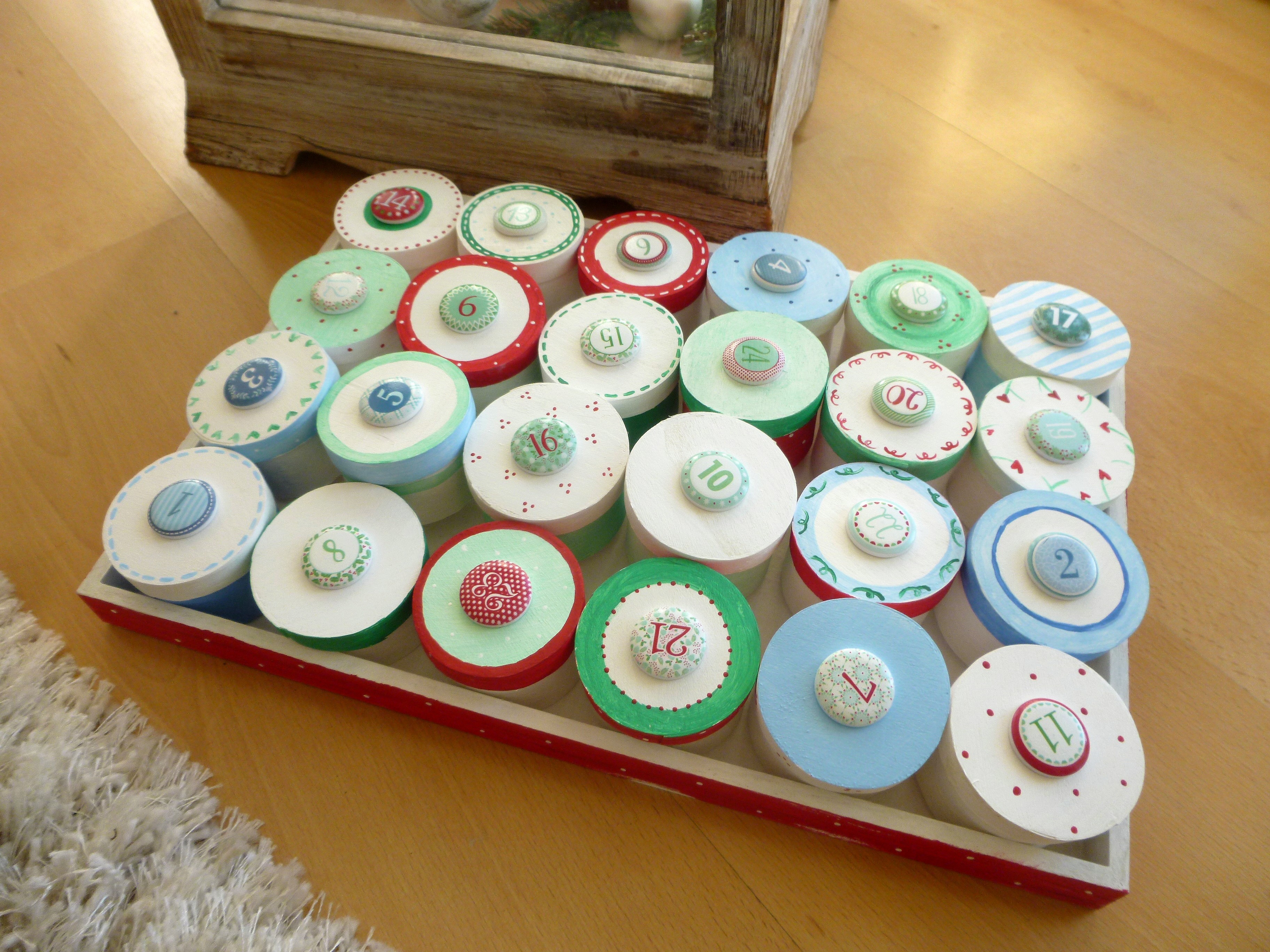 Das Holztablett ist mit dabei. Jedoch ist es nicht so einfach, alle Dosen drauf zu bringen, da es sehr eng ist. Deshalb mein Tipp: Mit Weihnachtskugeln und Lichterkette auf einer Kommode anrichten. Sieht schön und dekorativ aus.