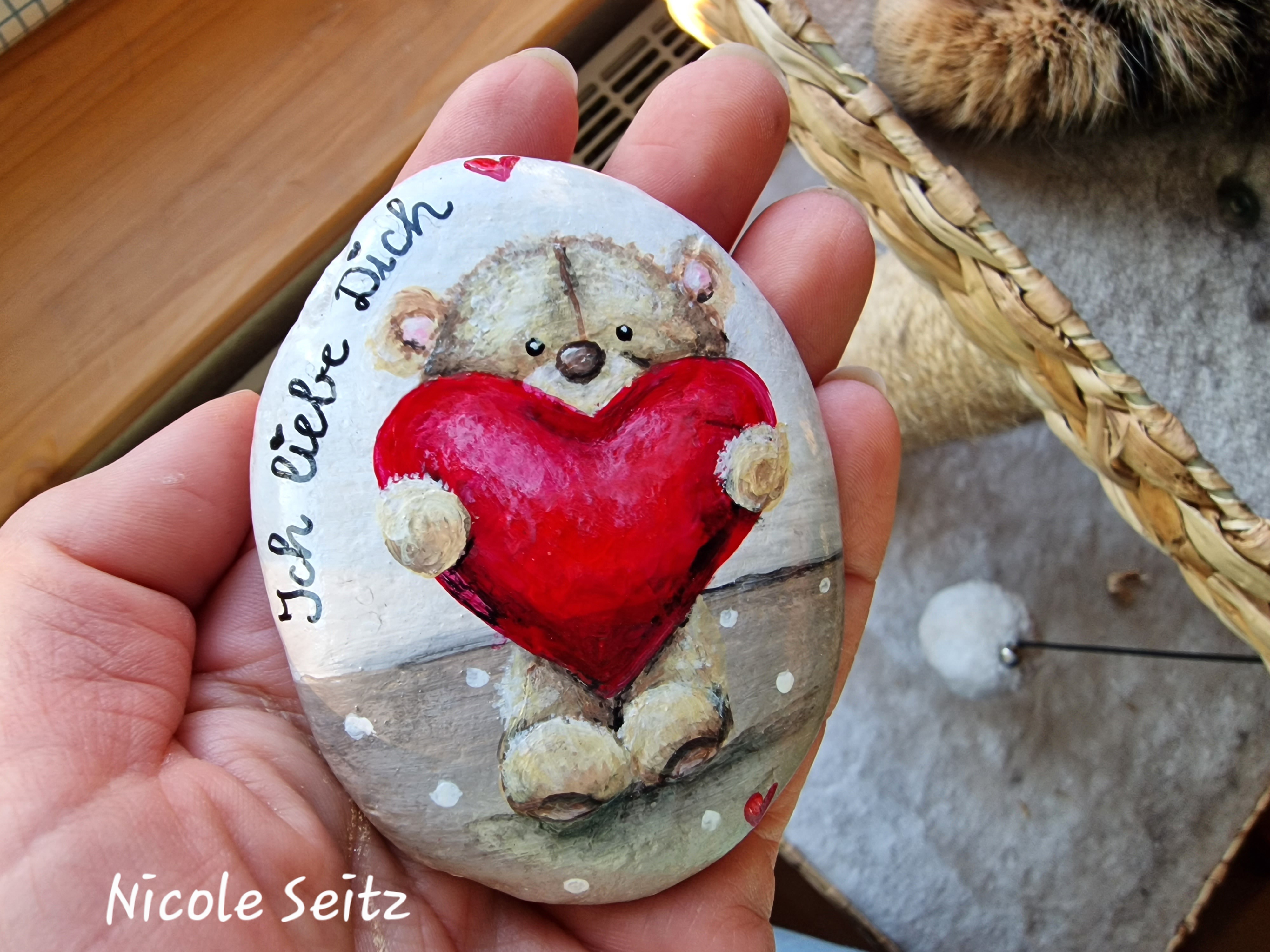 Stein * Bär mit Herz * Ich liebe Dich * 8 x 6,3 x 2 cm