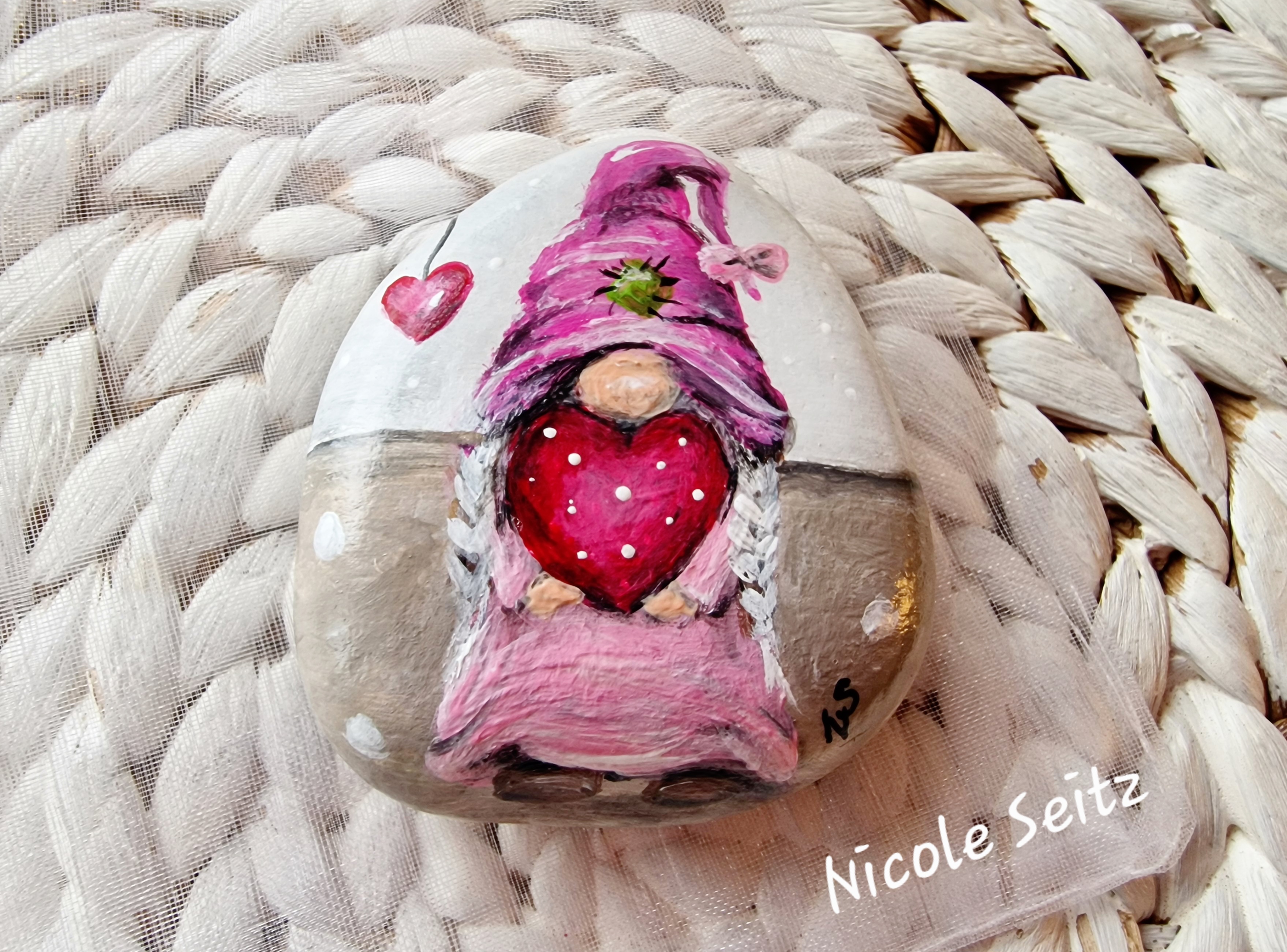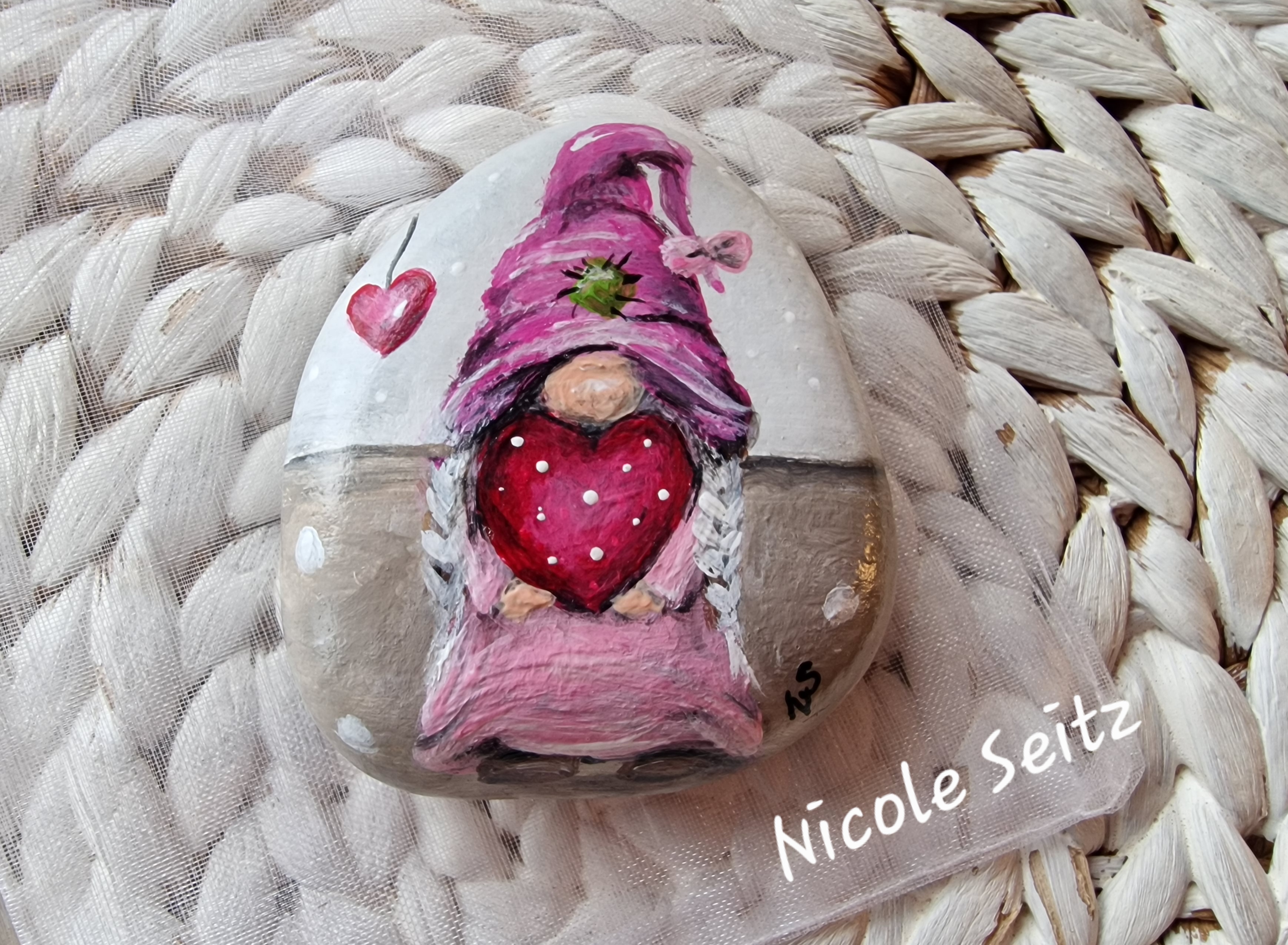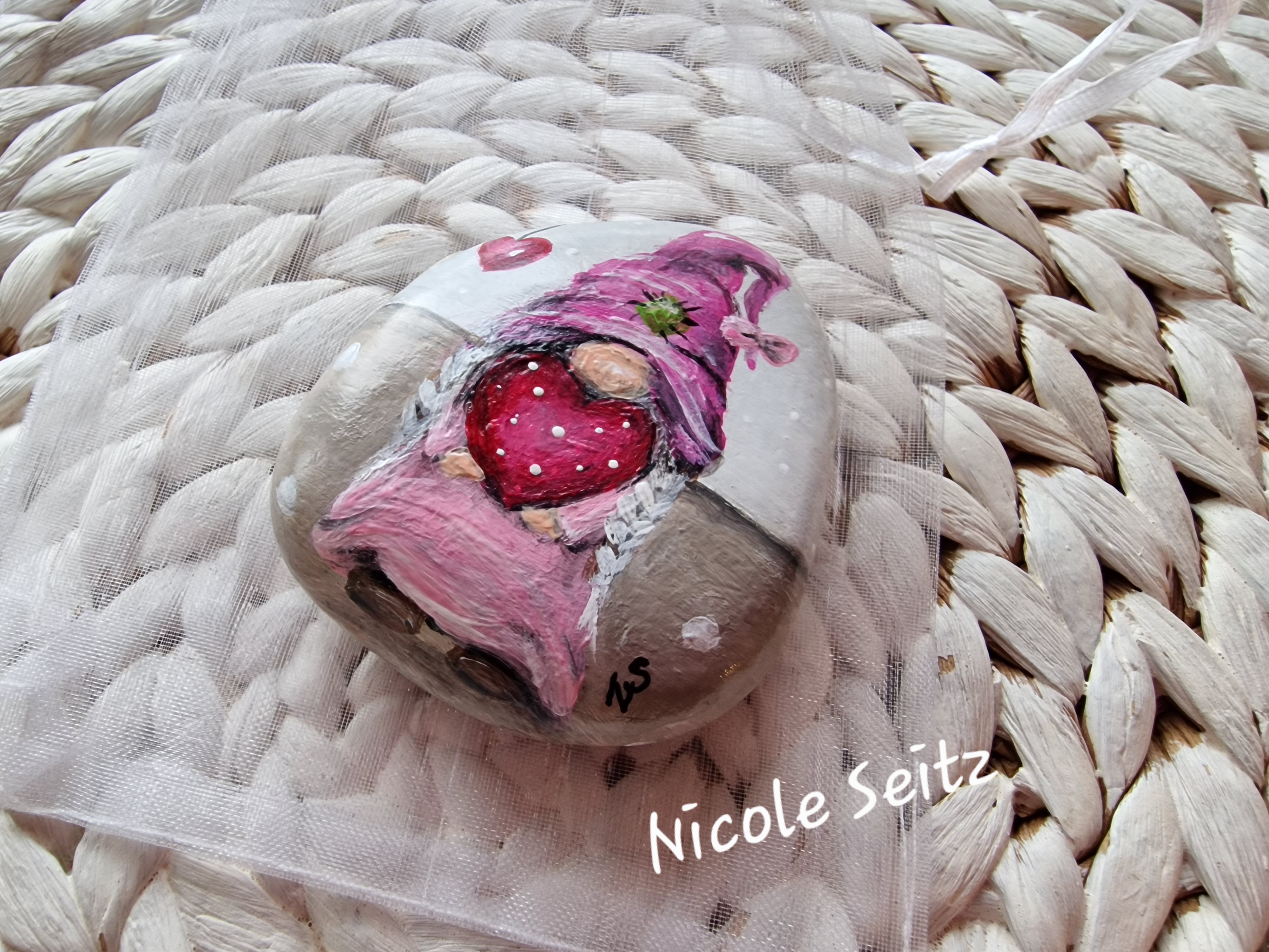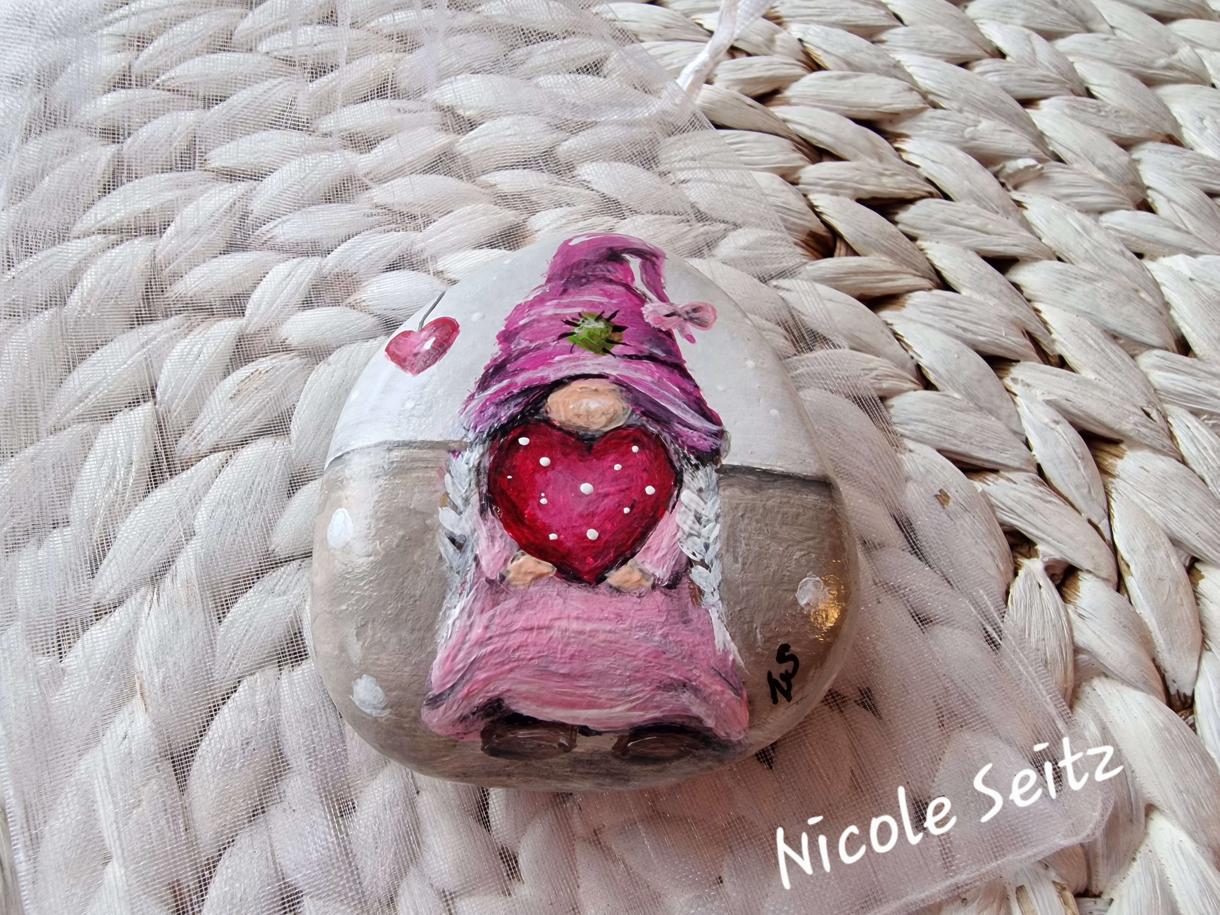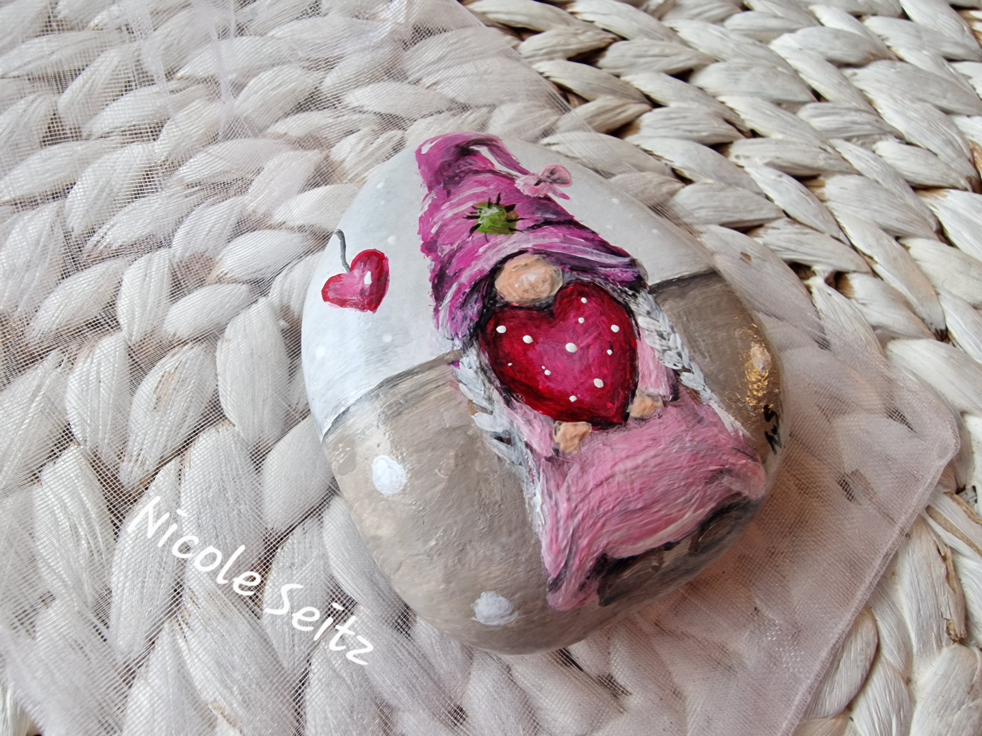 Stein * Glückswichtel * 6 x 5 x 1,5 cm * handbemalt * Rosa * Herz Mädchen