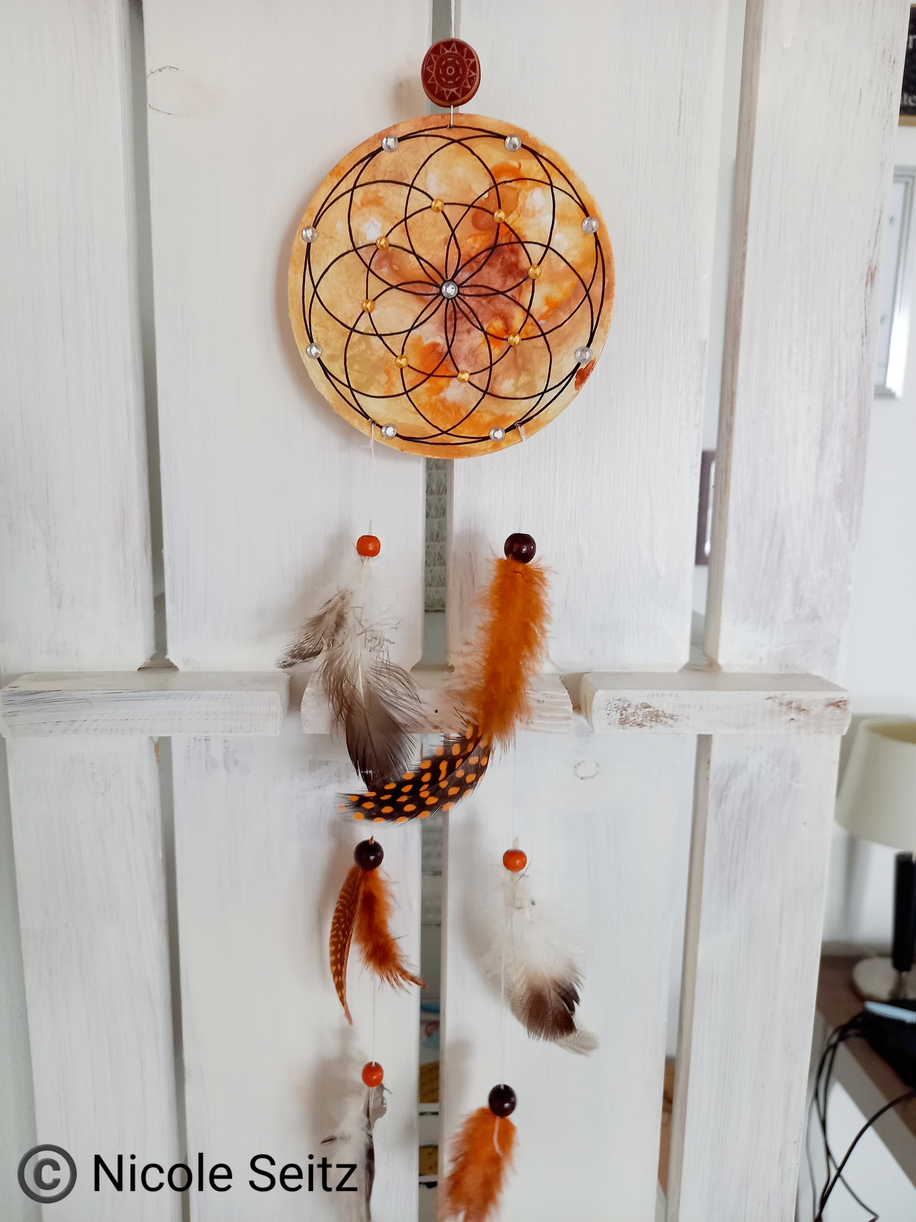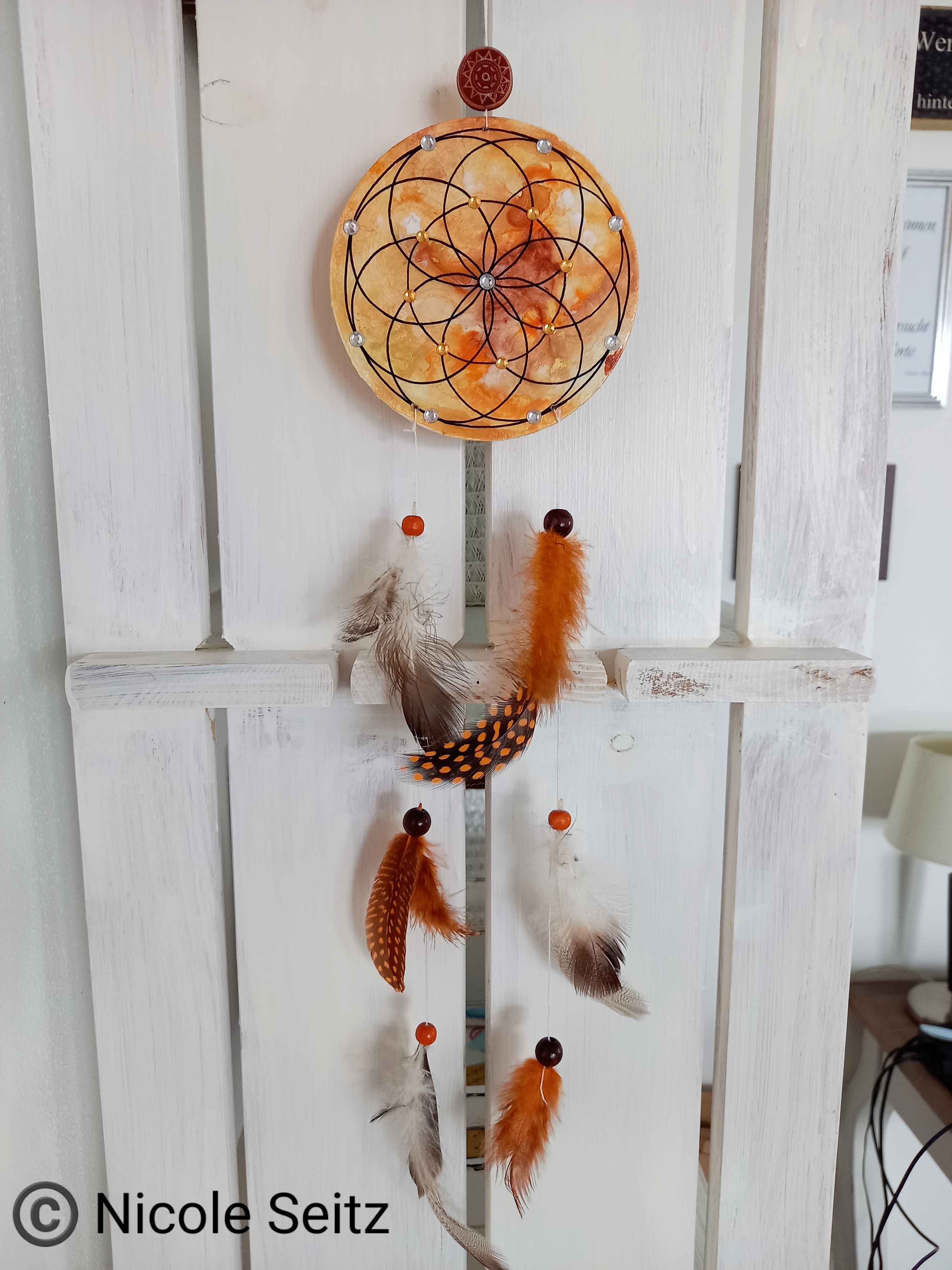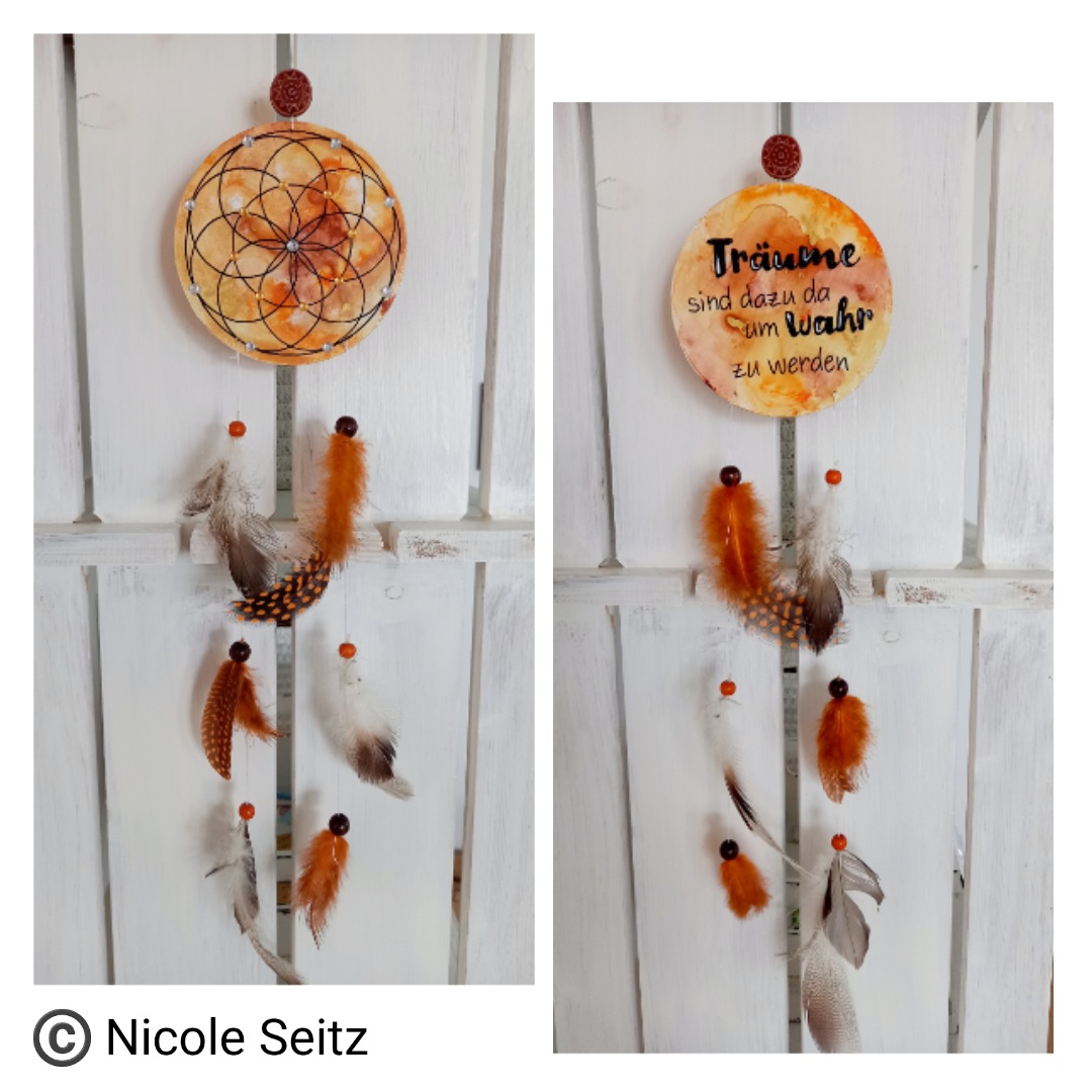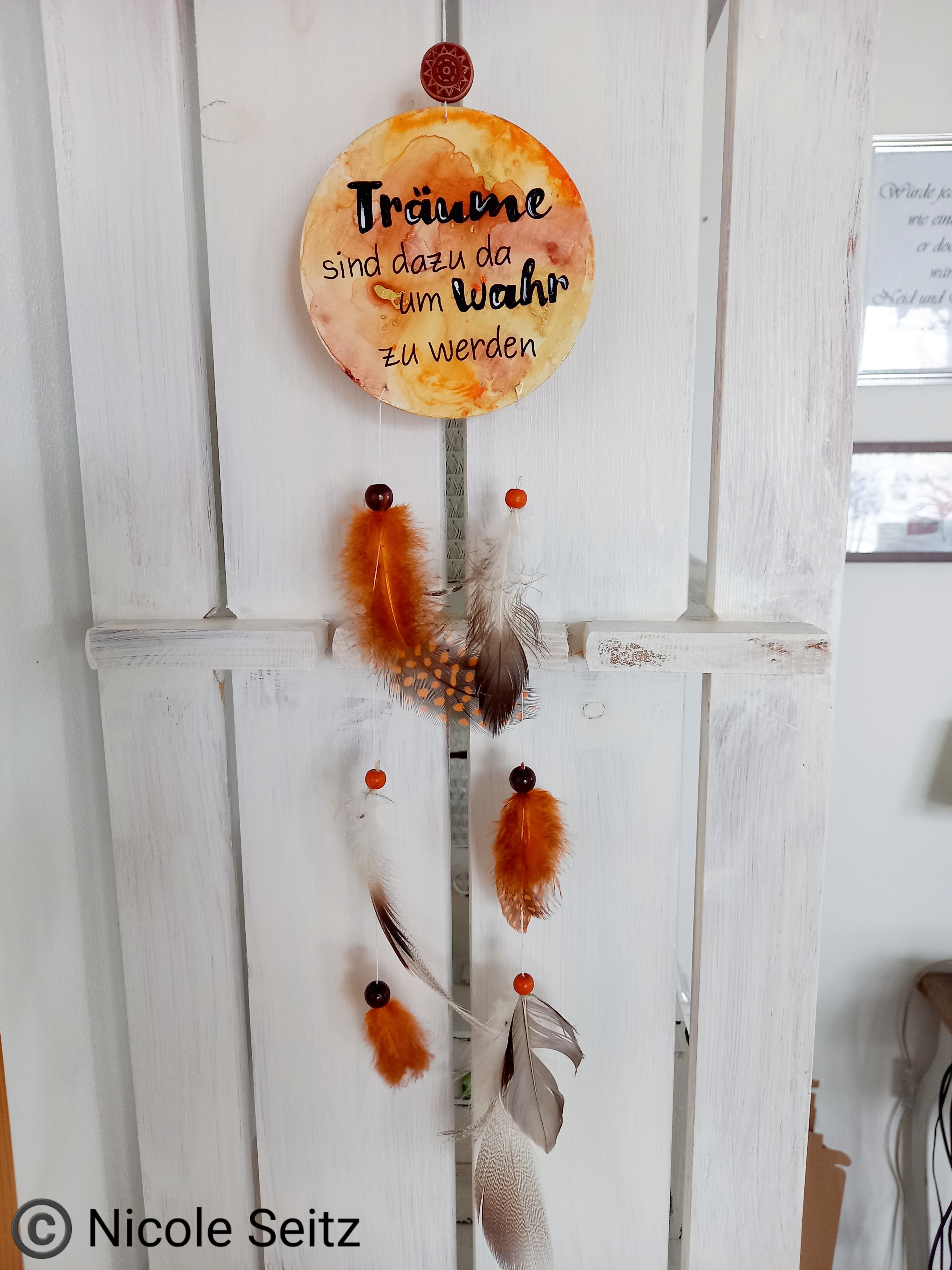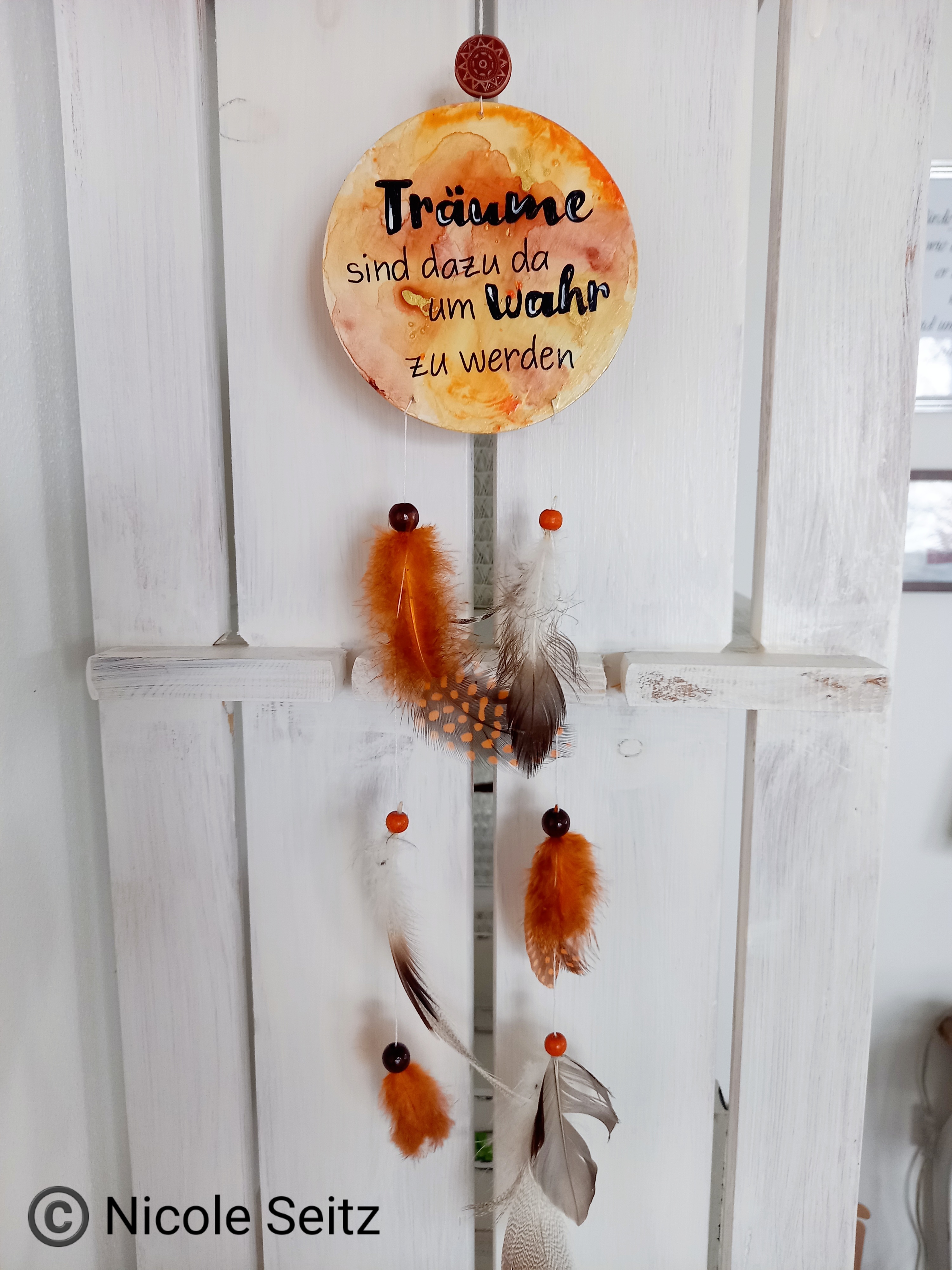 Traumfänger * handbemalt * Träume sind dazu da um wahr zu werden * Orange, Braun