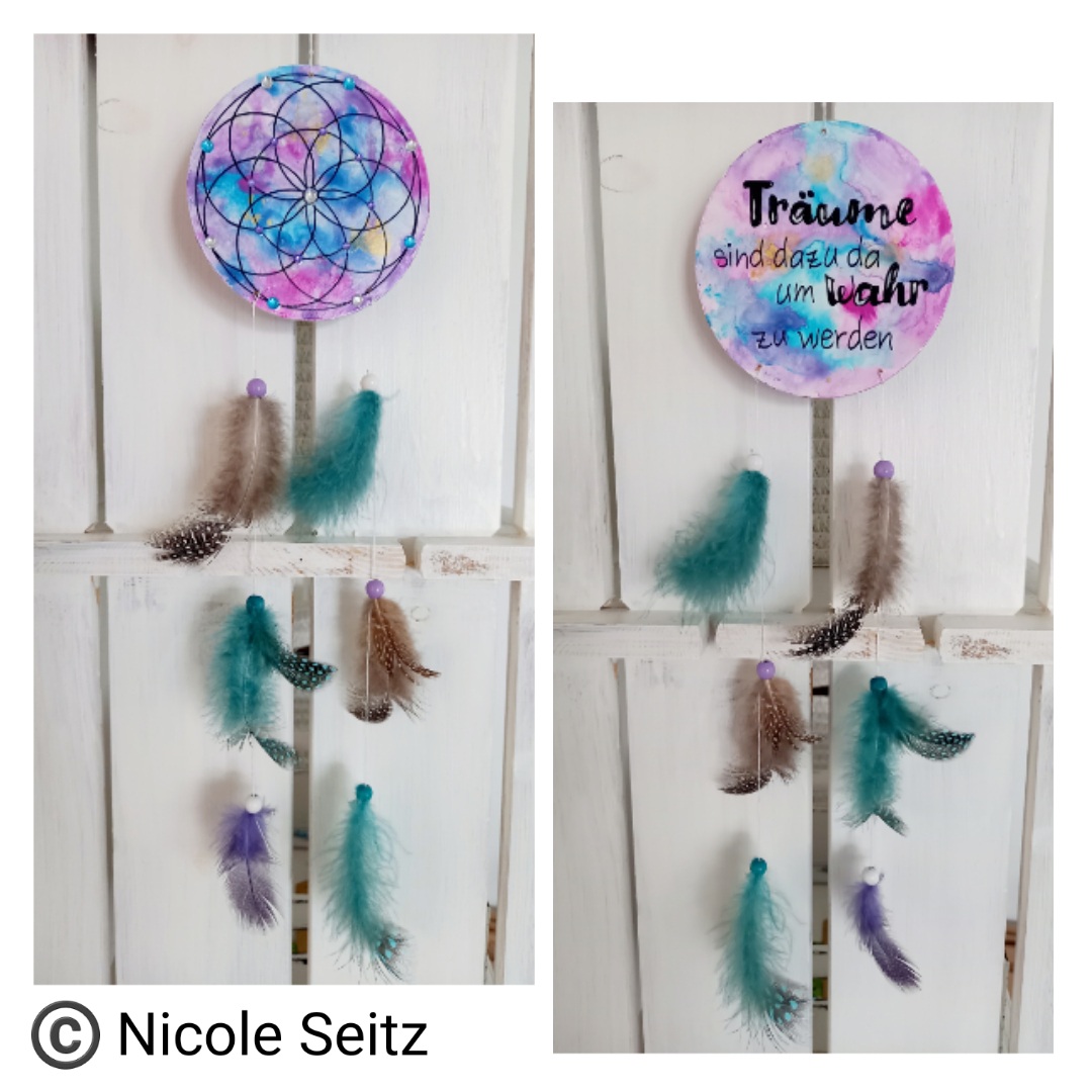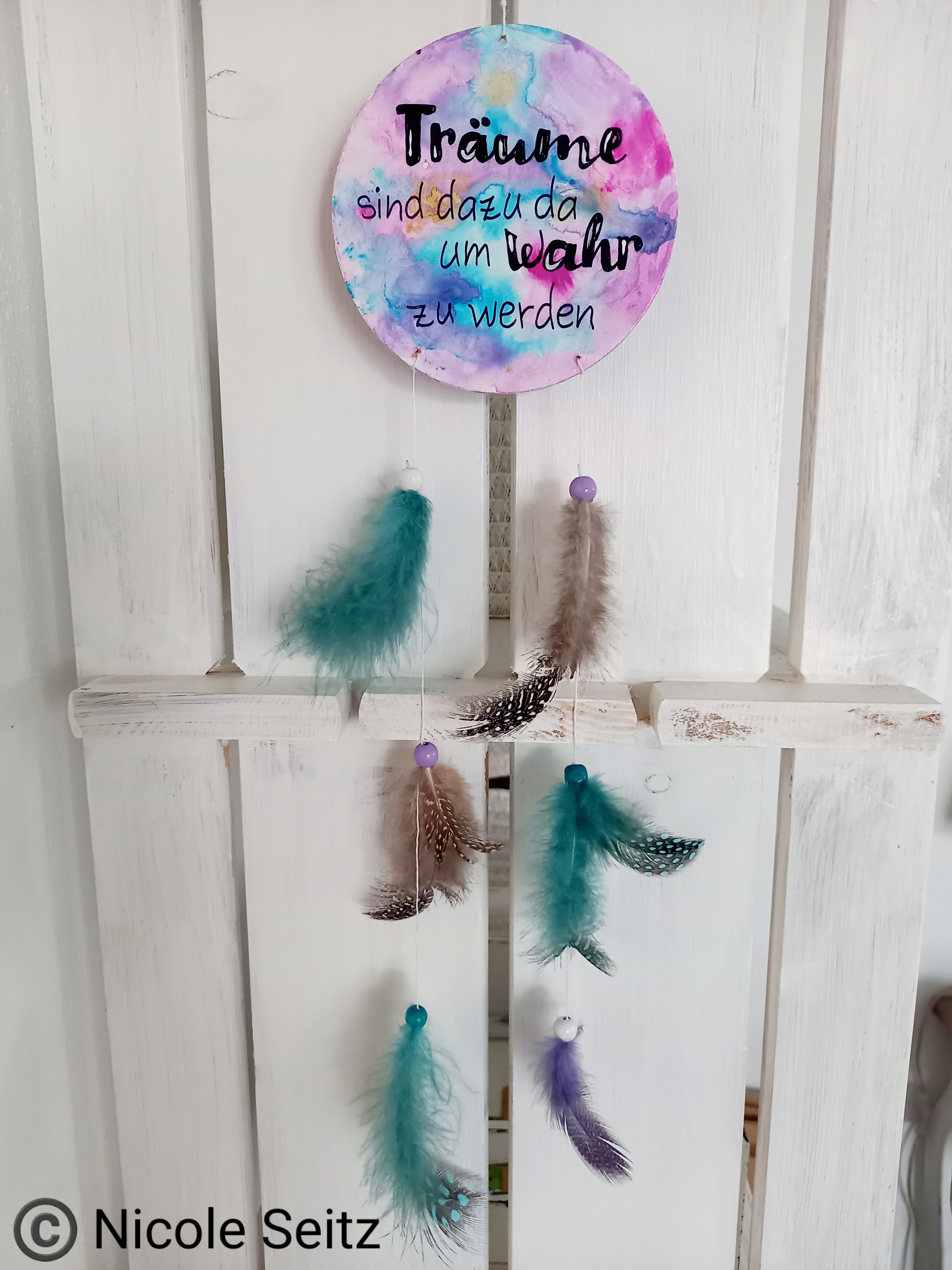 Traumfänger * handbemalt * Träume sind dazu da um wahr zu werden * Türkis, Pink, Lila