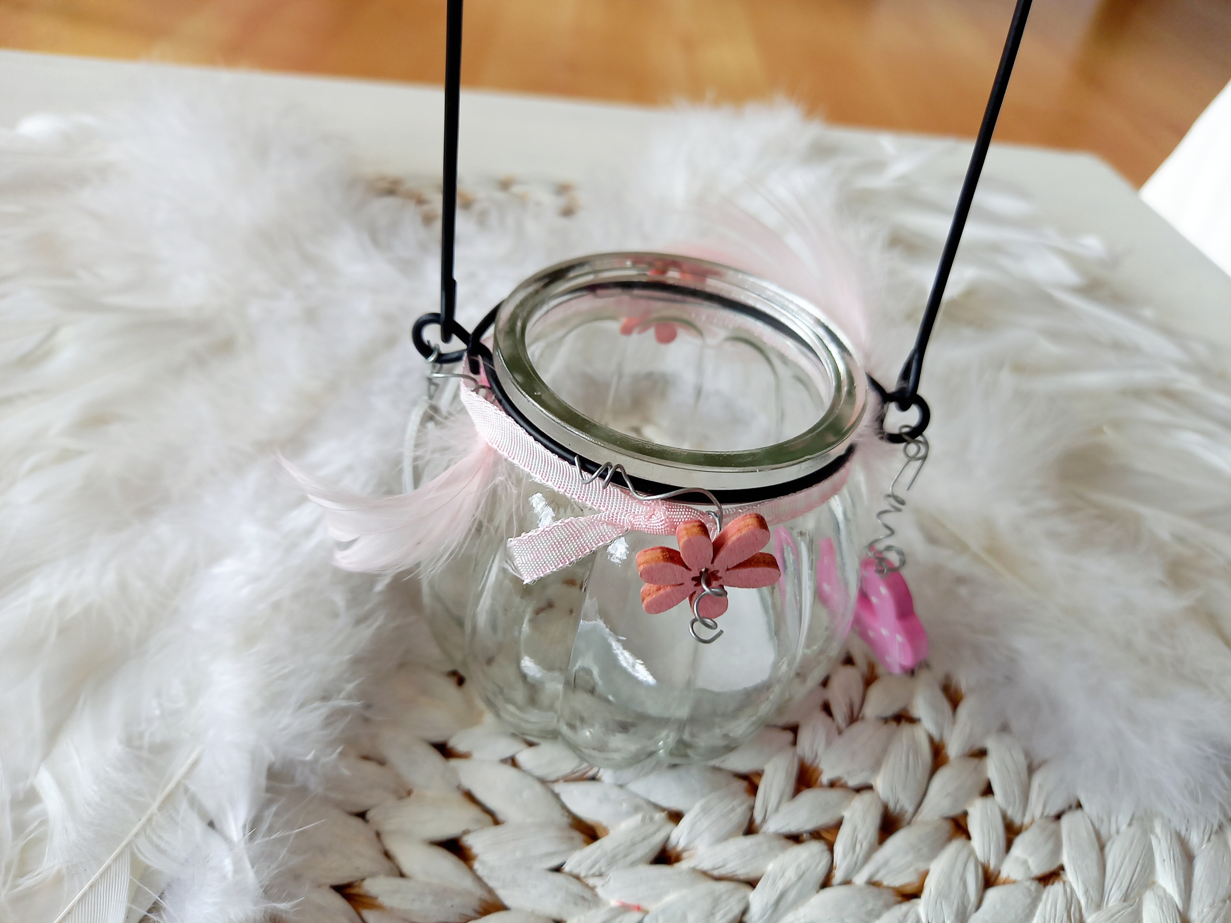 Mobile Preview: Teelichtglas mit Aufhängebügel * Rosa