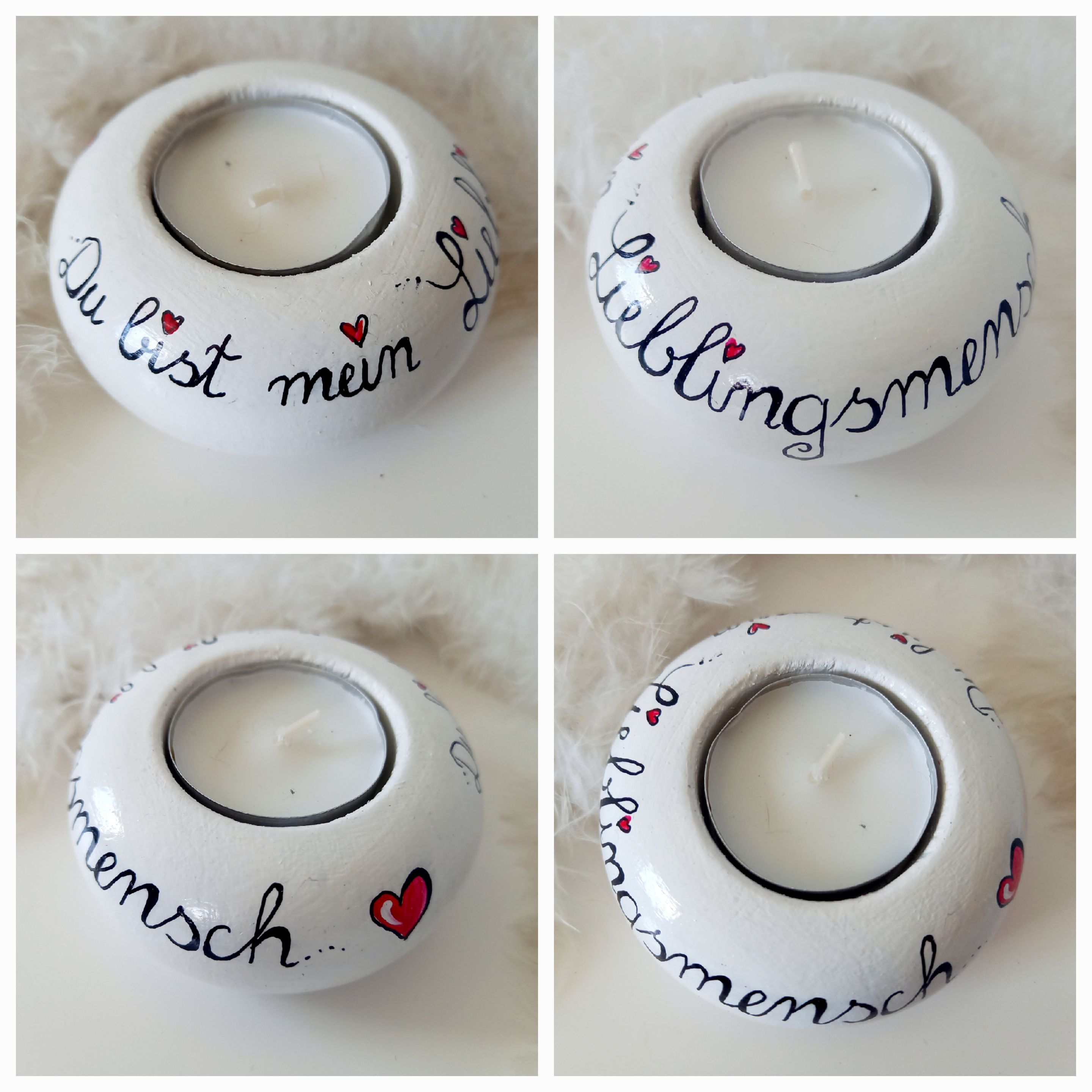 Teelichthalter * Du bist mein Lieblingsmensch * Holz bemalt * 8 x 3,5 cm - Kopie
