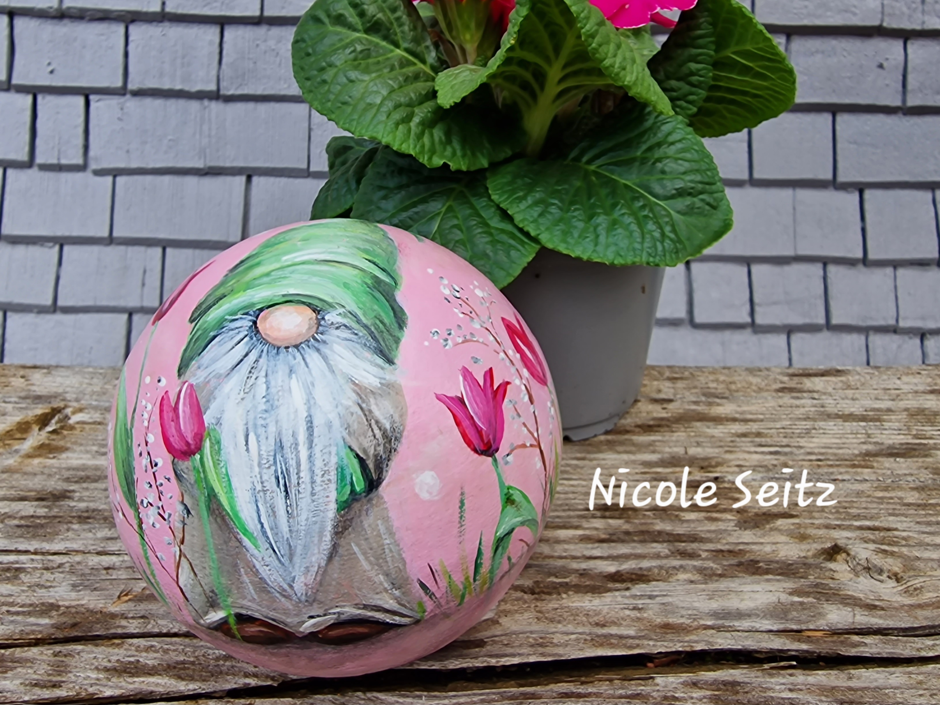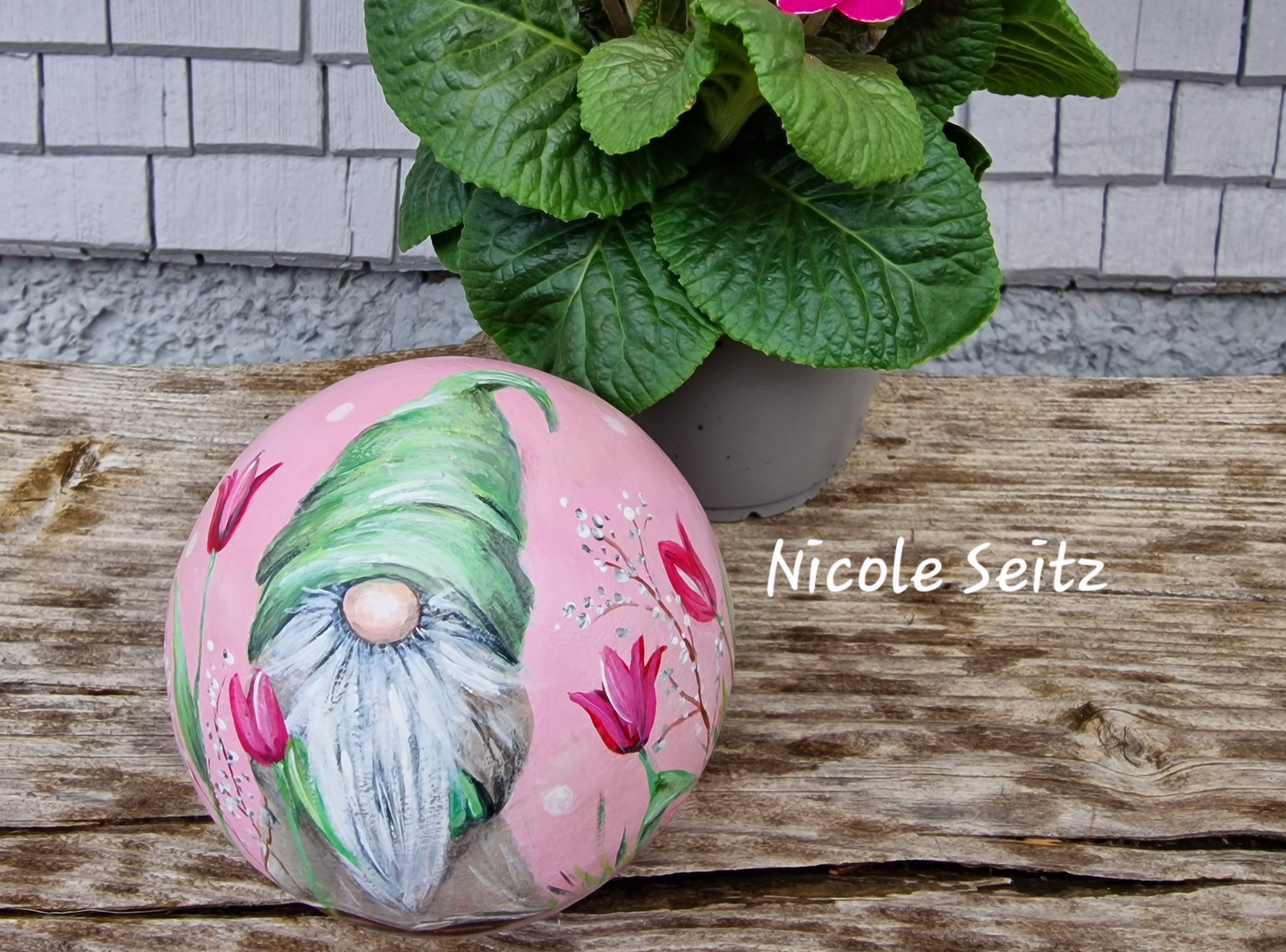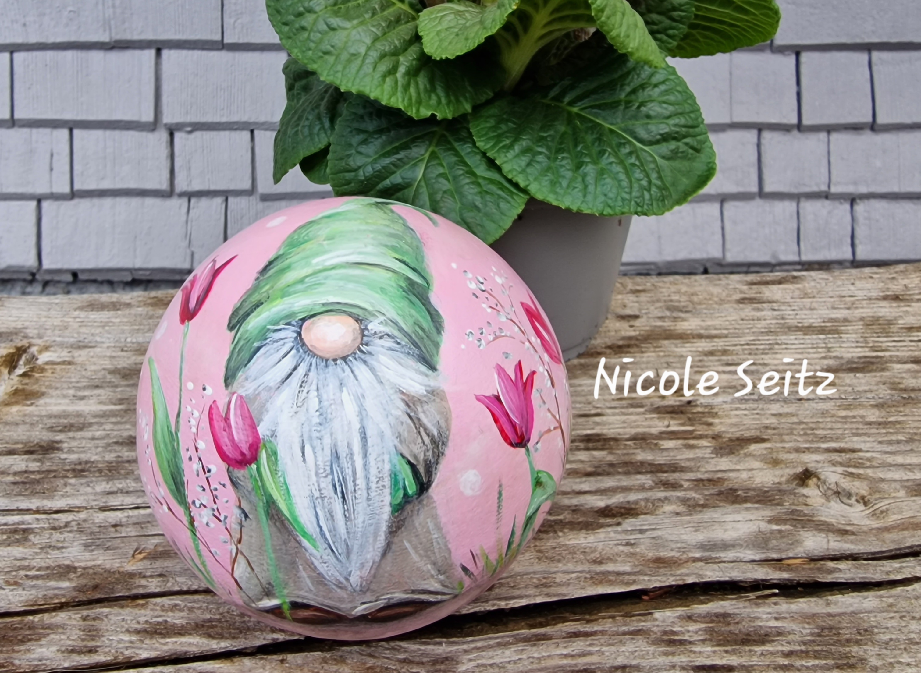 Zweimal mit guten Farben für den Außenbereich bemalt und mit einem glänzenden Acryllack zum noch besseren Schutz überzogen.