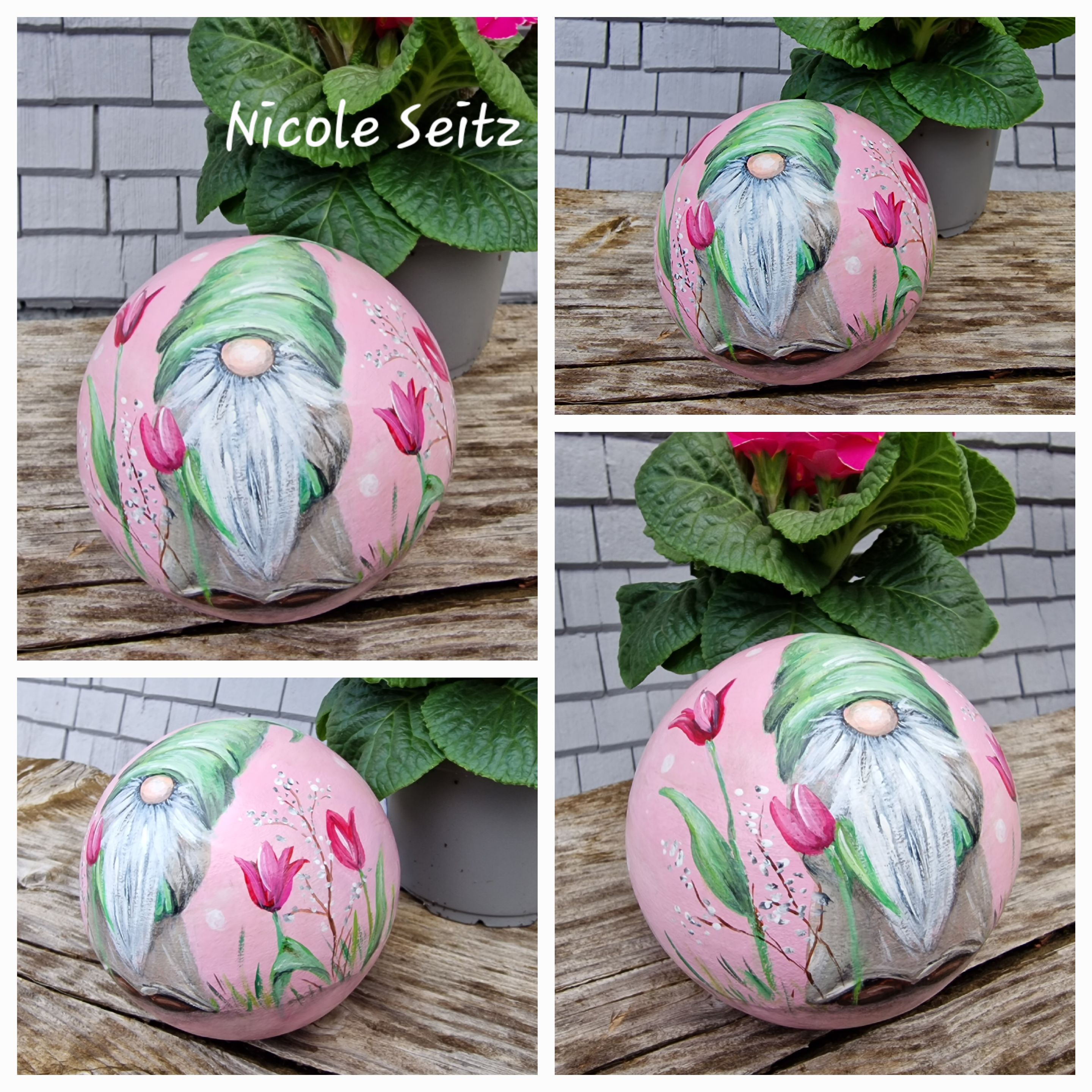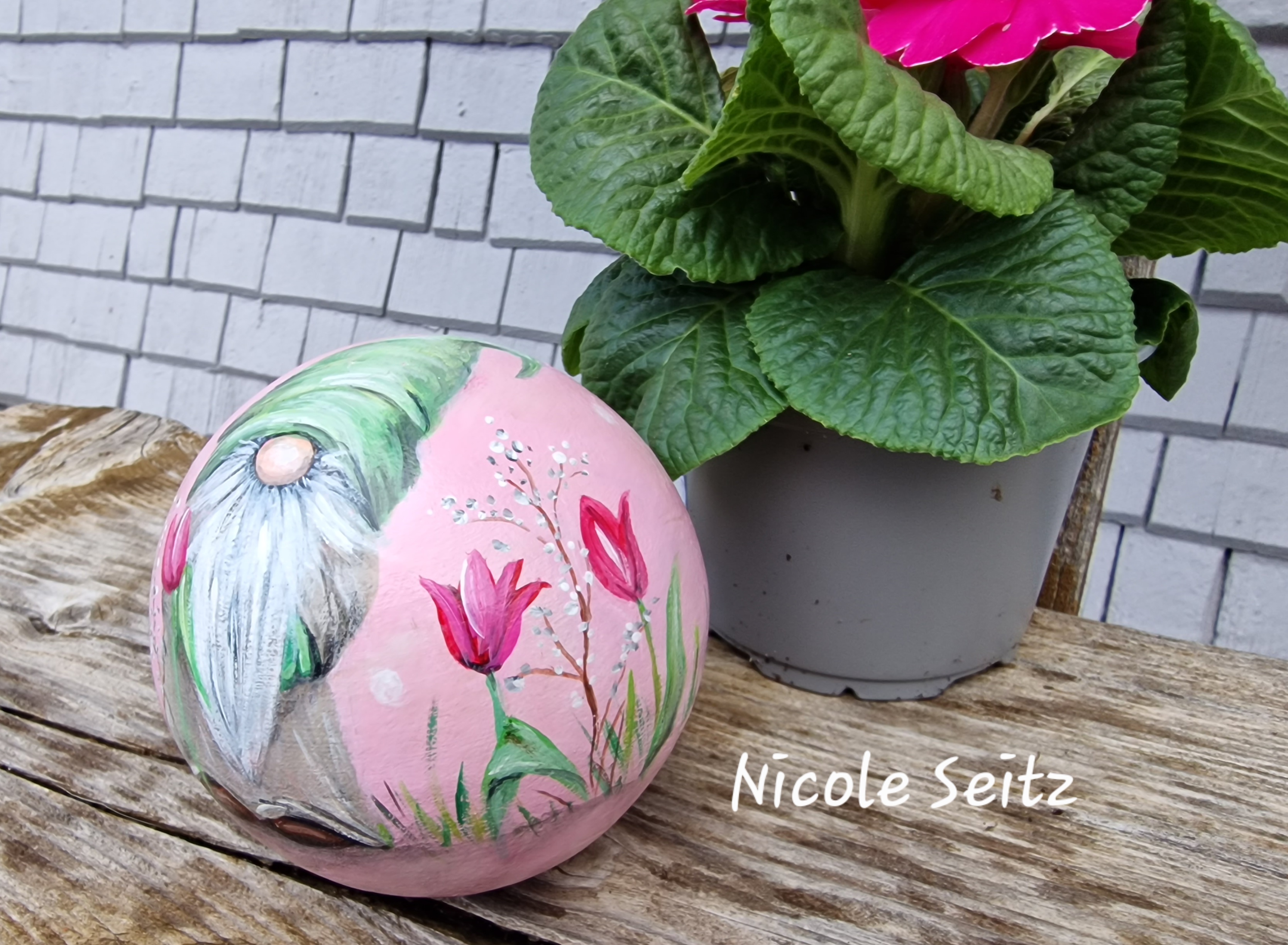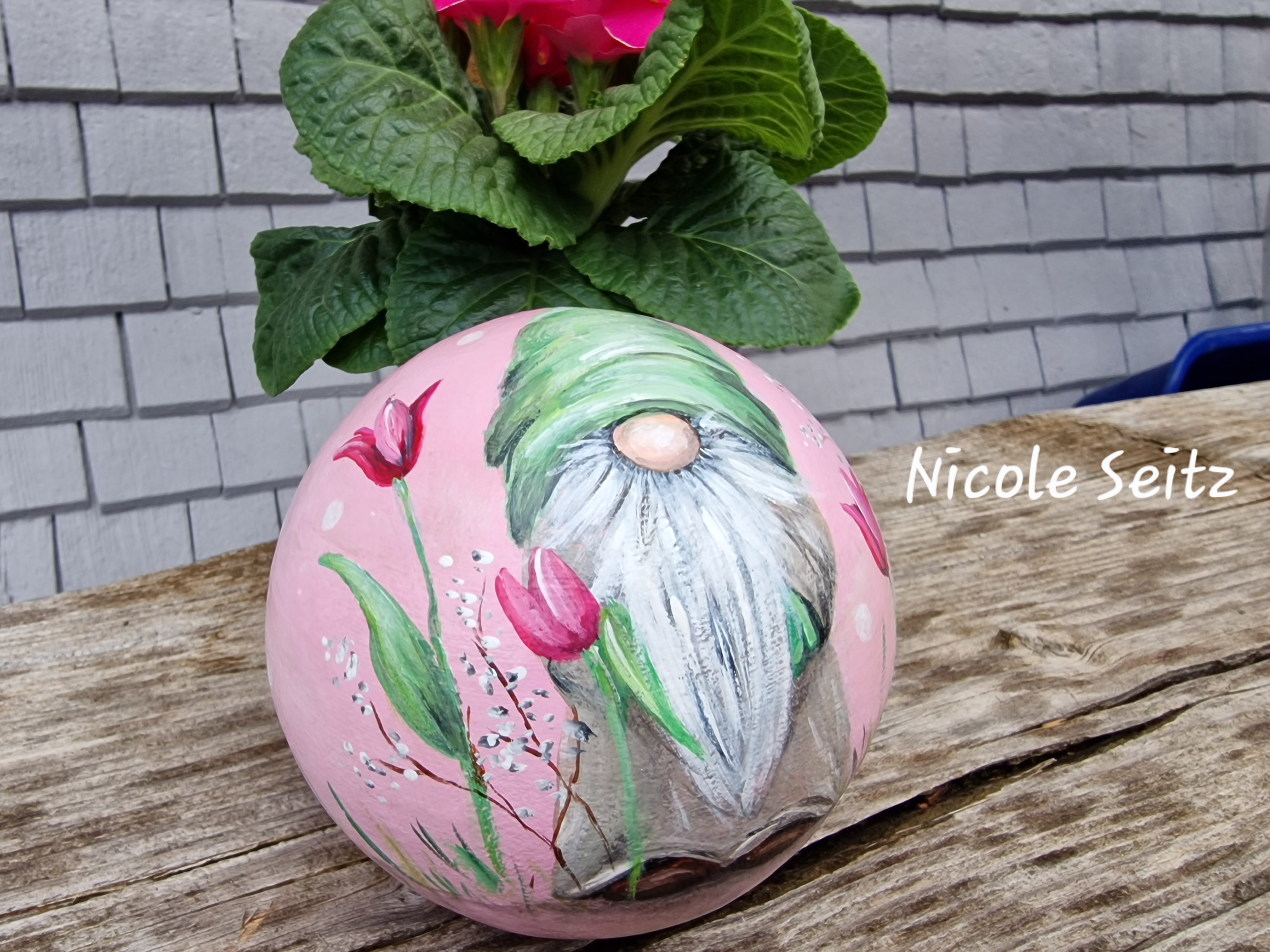 Zweimal mit guten Farben für den Außenbereich bemalt und mit einem glänzenden Acryllack zum noch besseren Schutz überzogen.