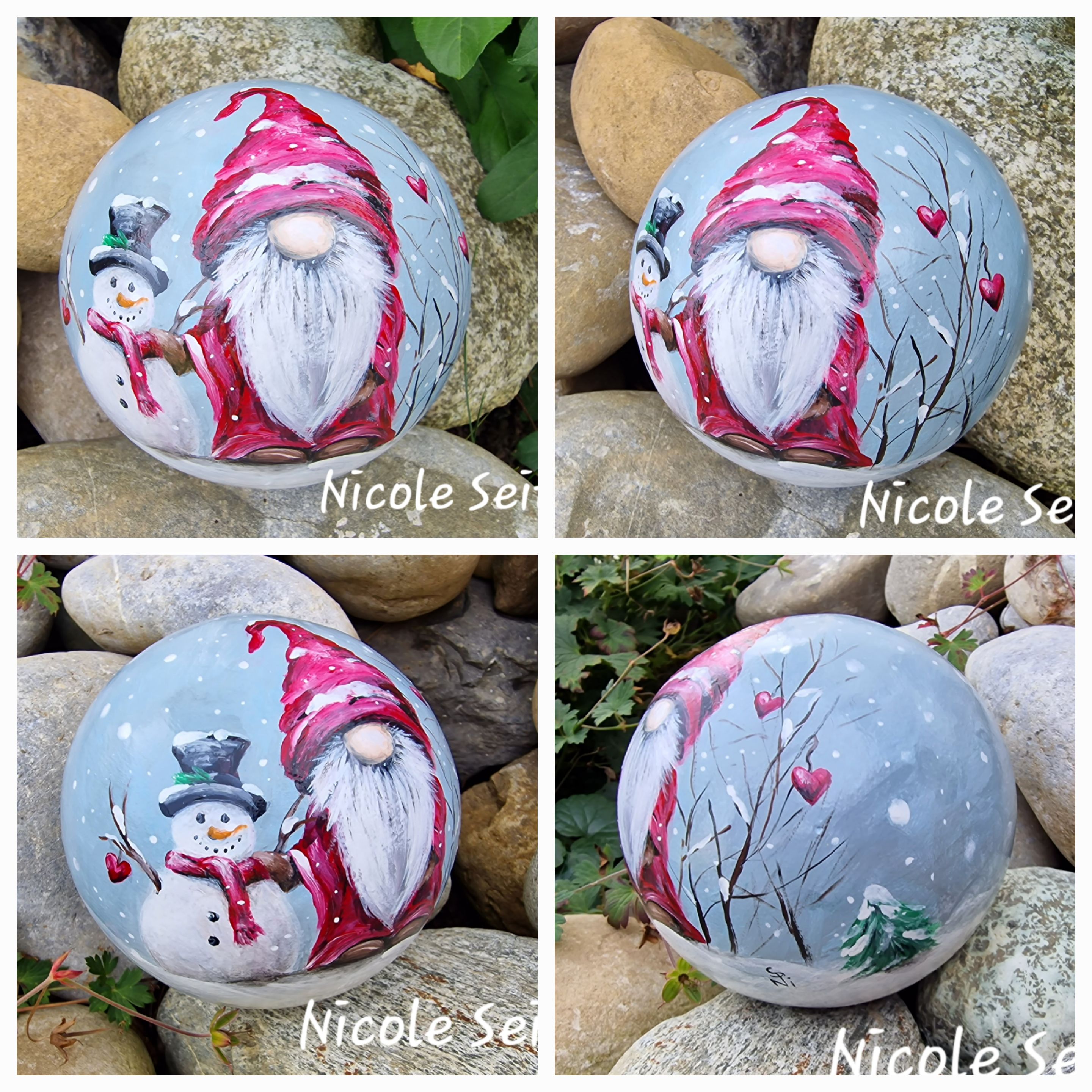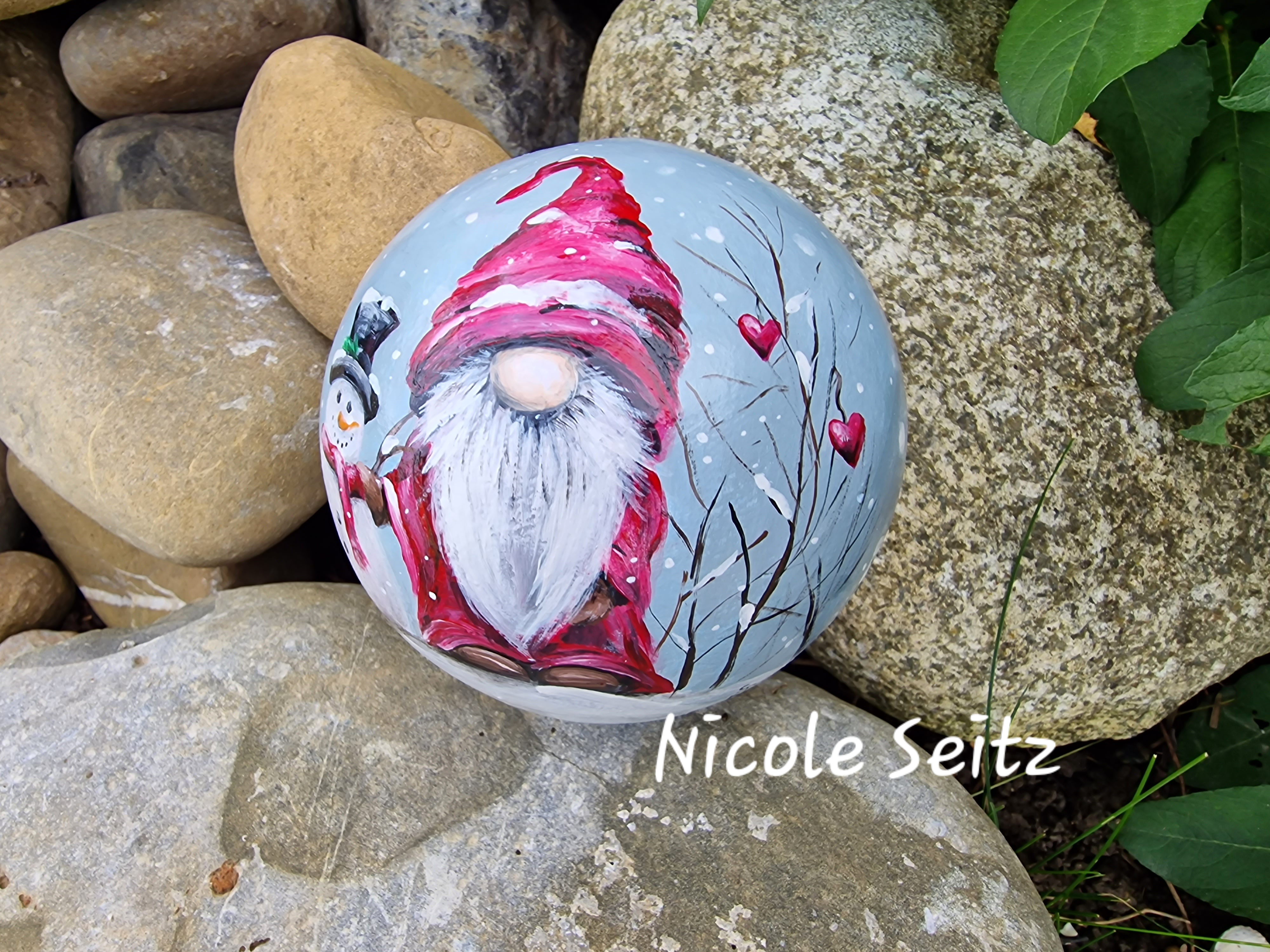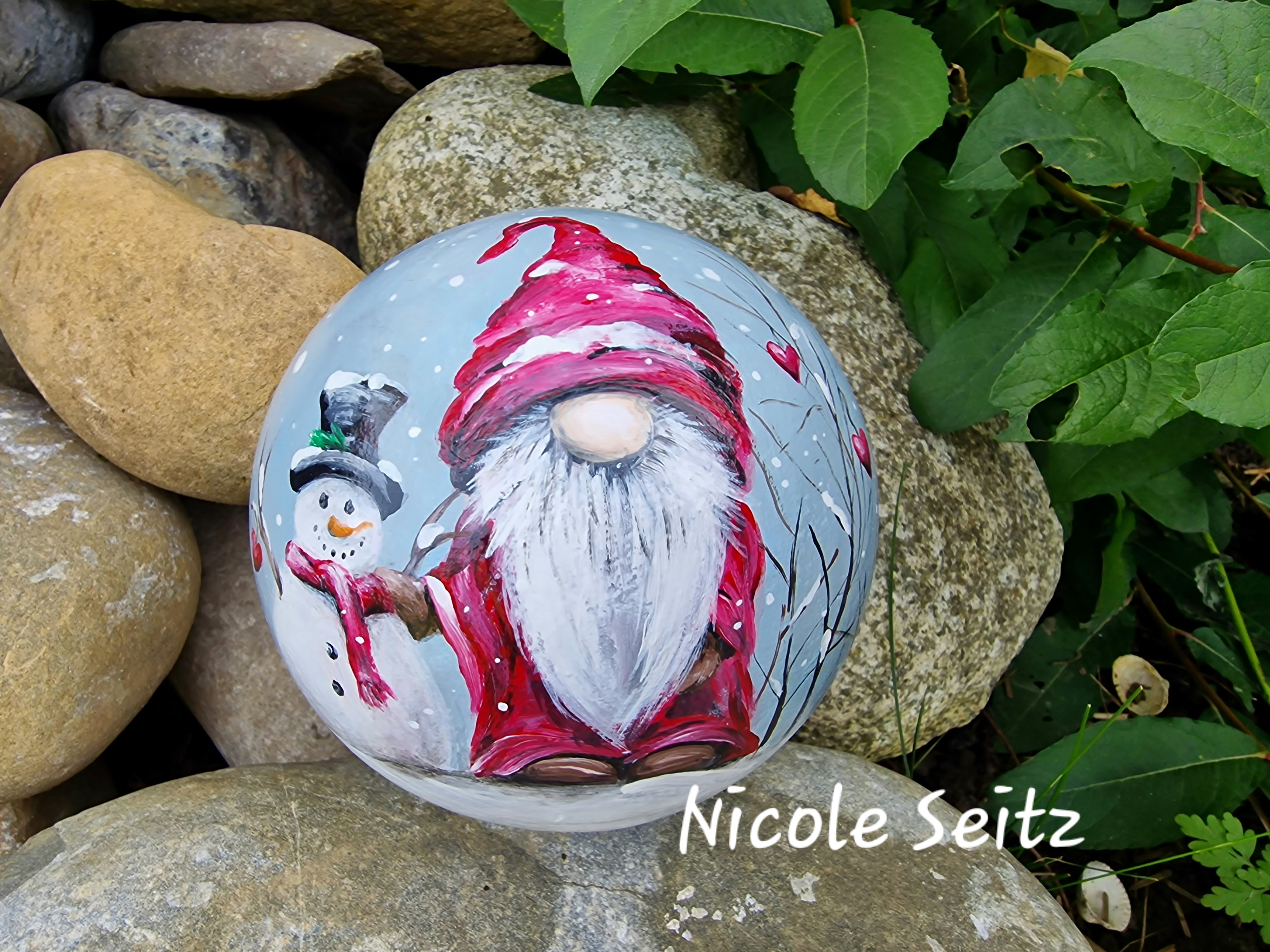 Ich werde manchmal gefragt, ob die Deko für den Außenbereich geeignet sind. Ich kann und will keine Garantie dafür abgeben, jedoch verwende ich wie oben erwähnt qualitativ gute Markenfarben, mit denen ich eben zweimal bemale und das ganze wird ja noch mit einem Acryllack überzogen. Die Haltbarkeit ist natürlich auch voll und ganz davon abhängig, ob die Unikate im geschützten oder ungeschützten Außenbreich verwendet werden. DIESE KUGEL BITTE NICHT DORT DEKORIEREN, WO SIE FROST ABBEKOMMT!!!
