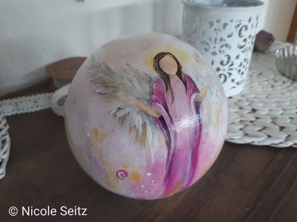 Zweimal mit guten Farben für den Außenbereich bemalt und mit einem glänzenden Acryllack zum Schutz überzogen.