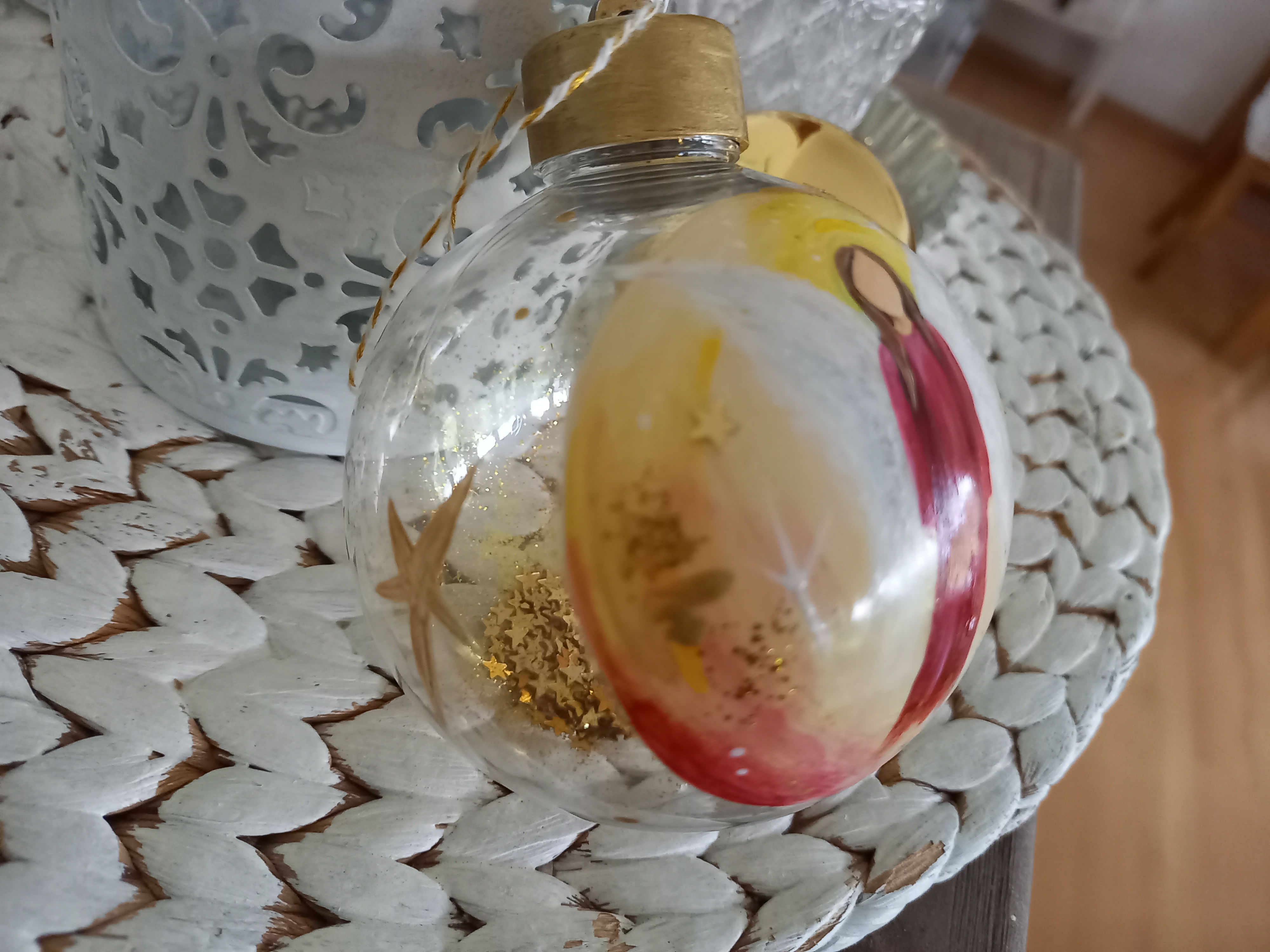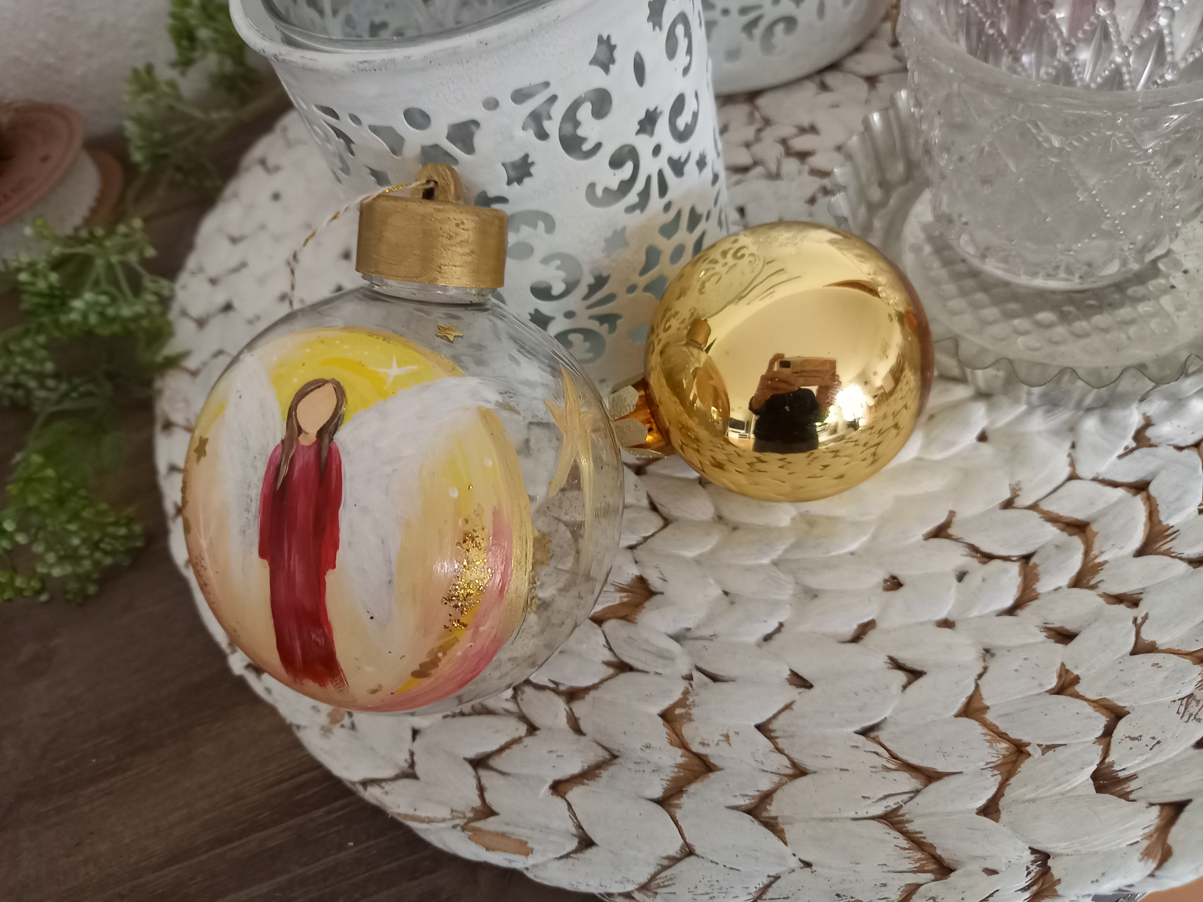 Mobile Preview: Weihnachtskugel handbemalt * Engel * Kunststoff * ca. 8 cm