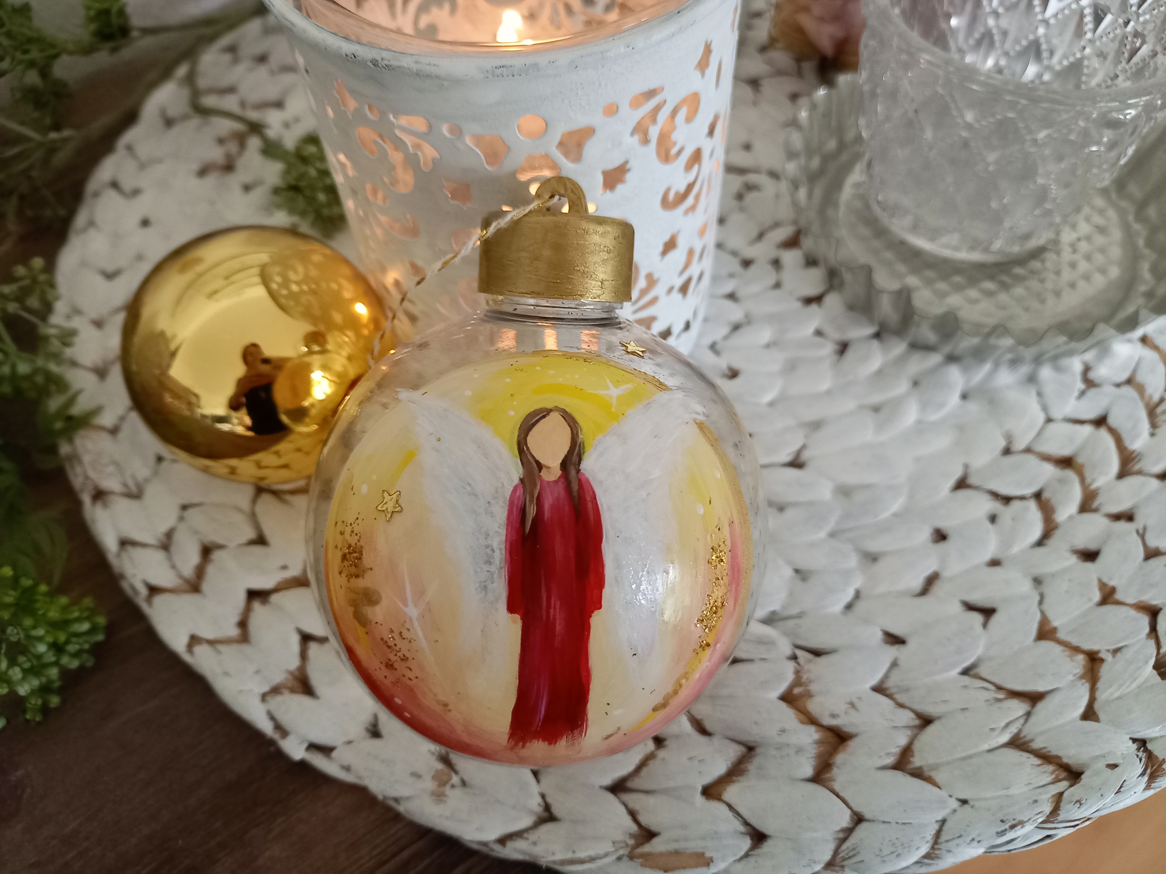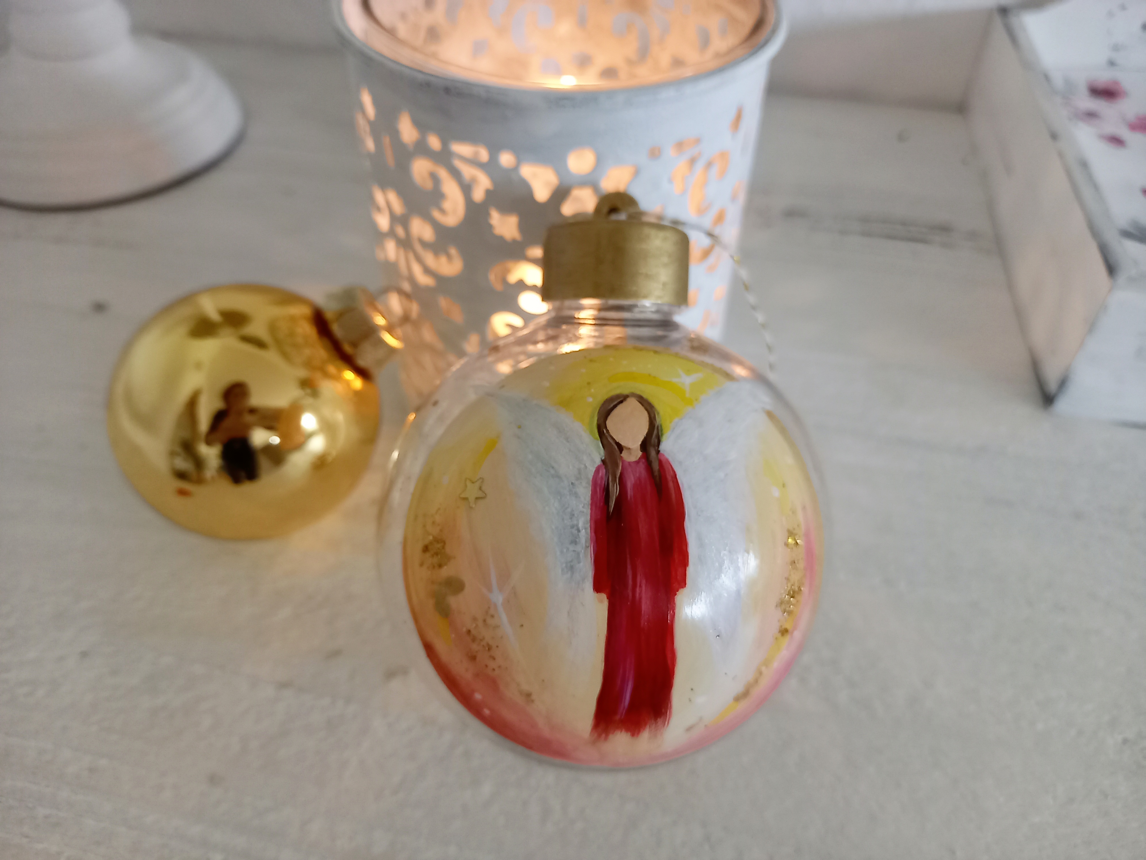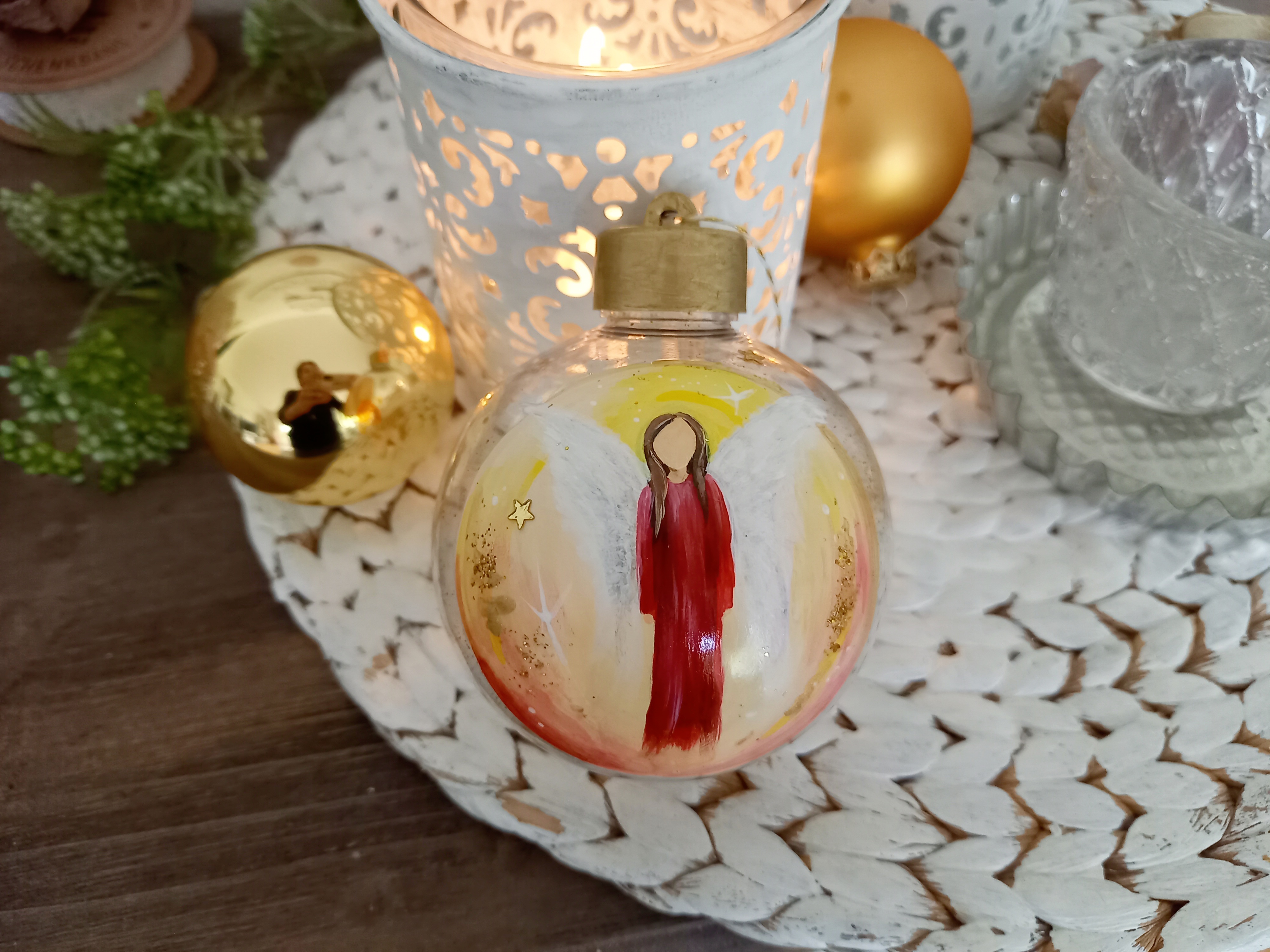 Weihnachtskugel handbemalt * Engel * Kunststoff * ca. 8 cm